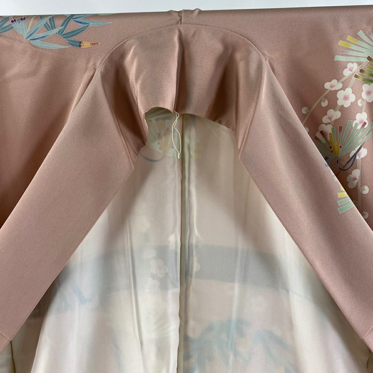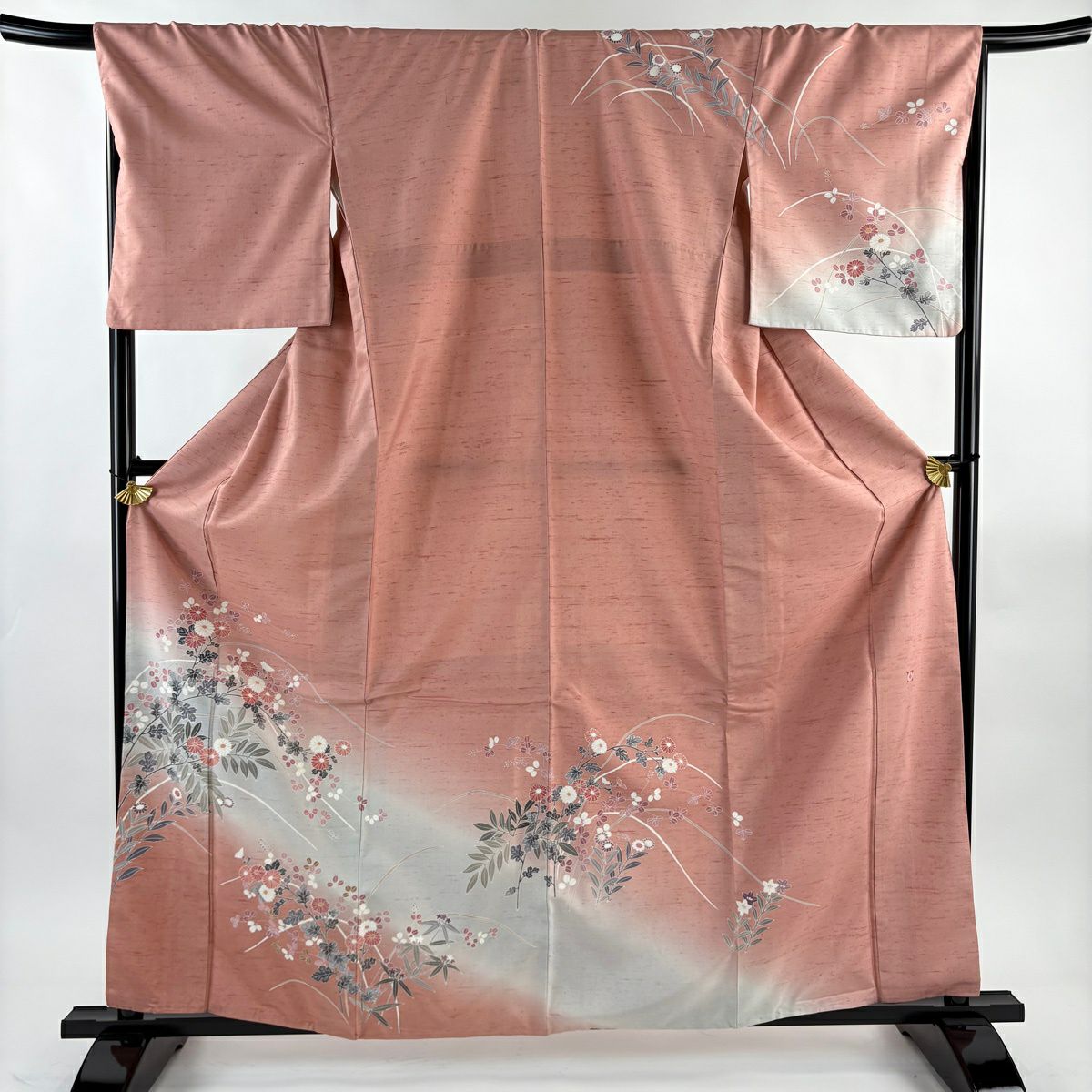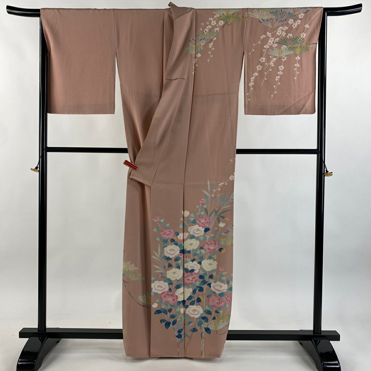【在庫一掃】 訪問着 身丈160.5cm 裄丈67cm M 袷 落款あり 枝花 若松 ピンク 正絹 逸品
