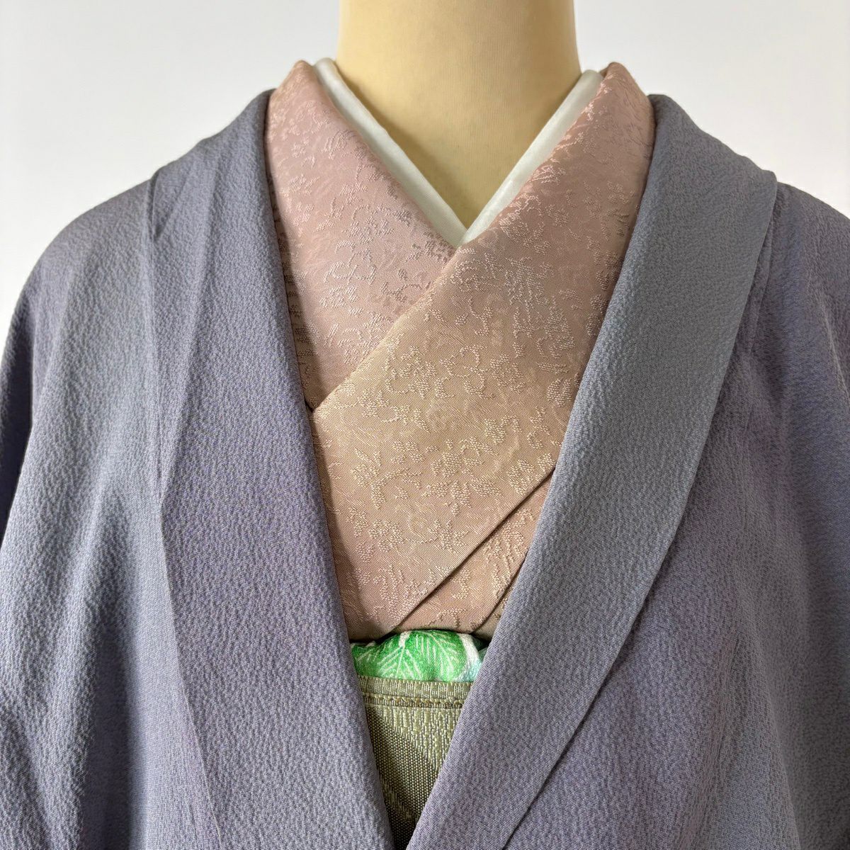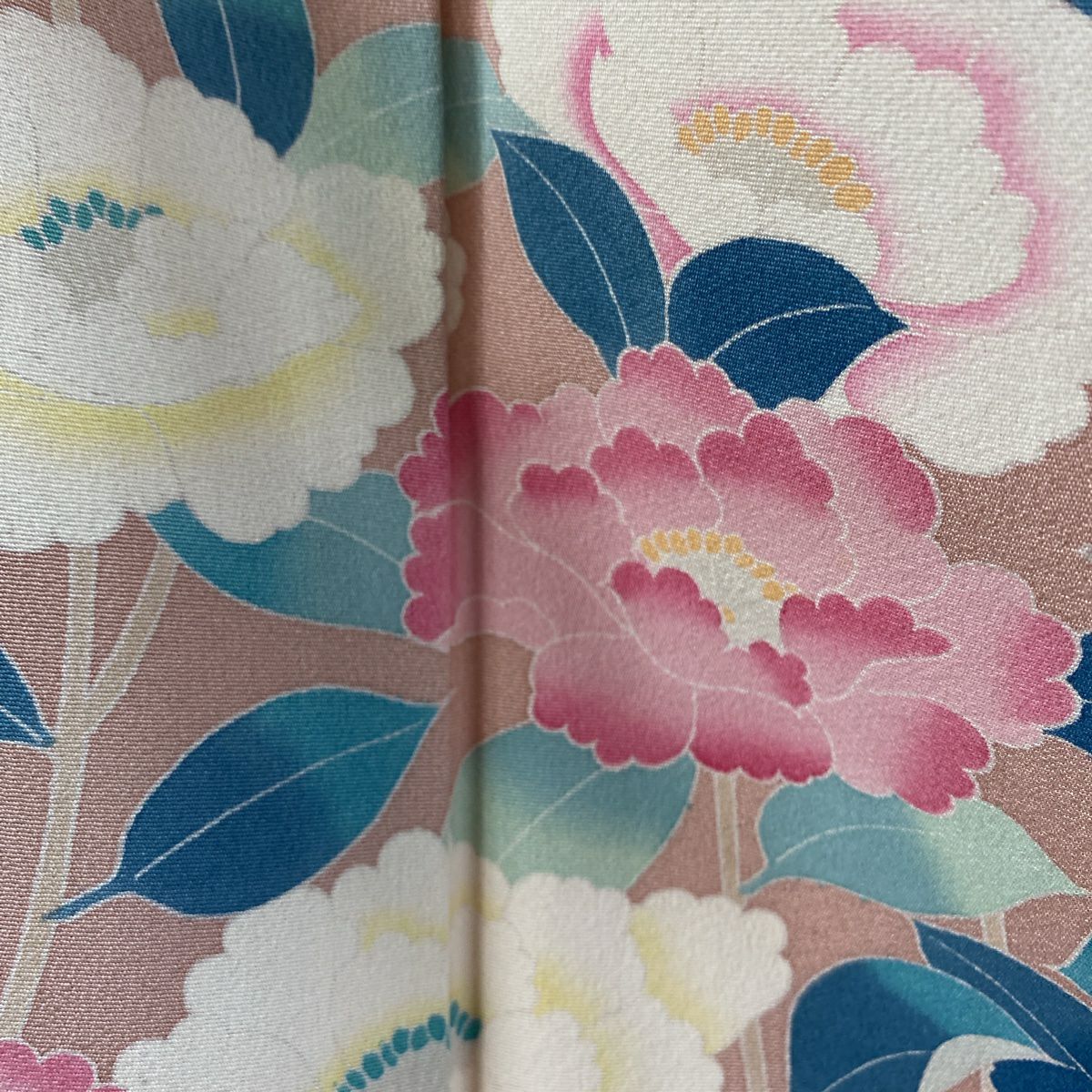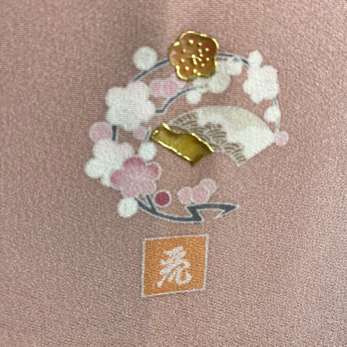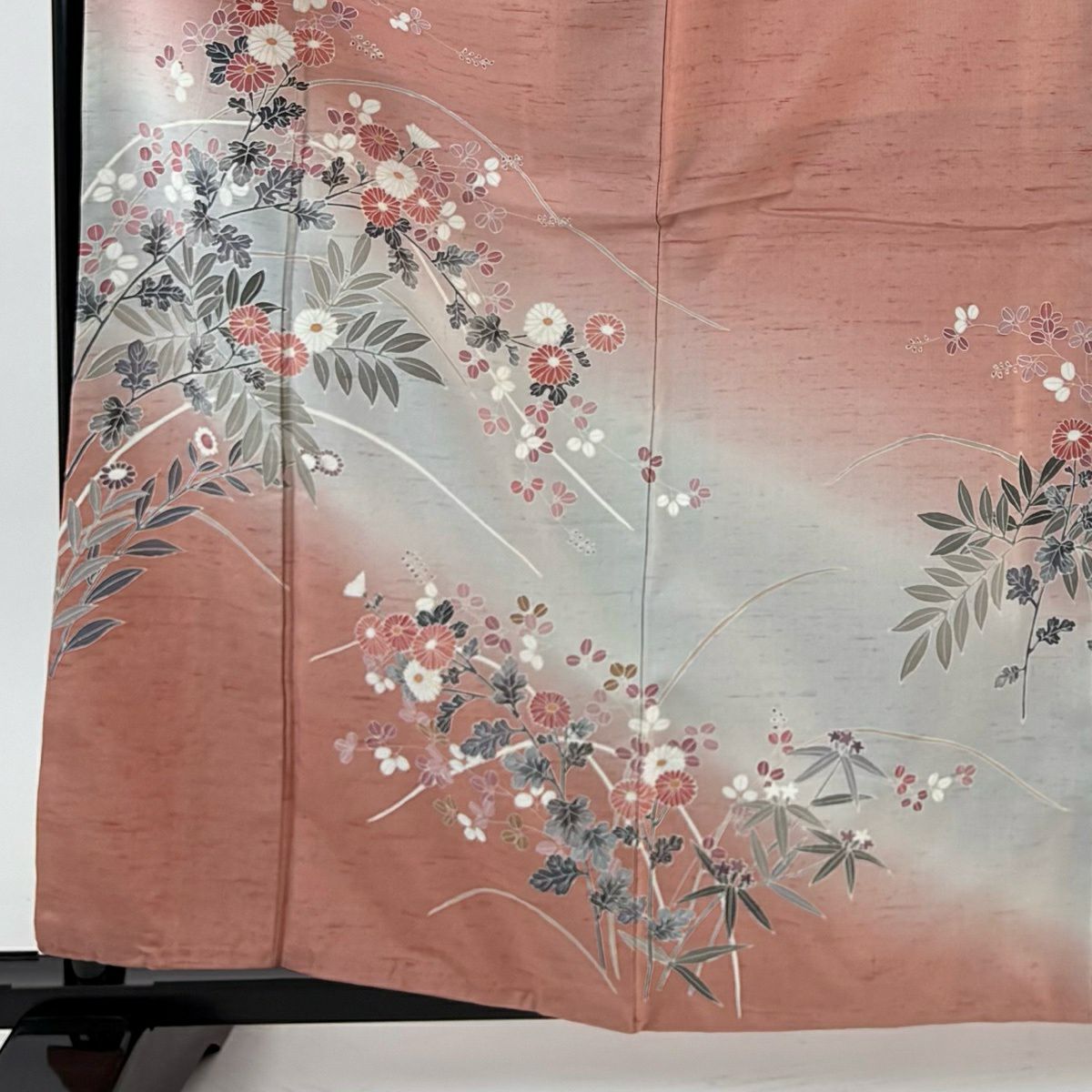 【在庫一掃】 訪問着 身丈160.5cm 裄丈67cm M 袷 落款あり 枝花 若松 ピンク 正絹 逸品