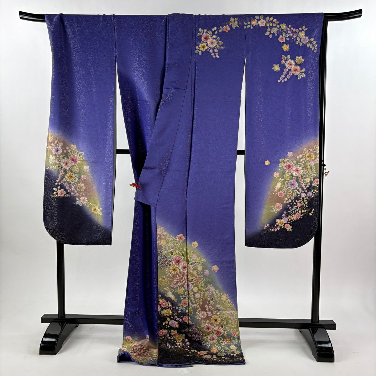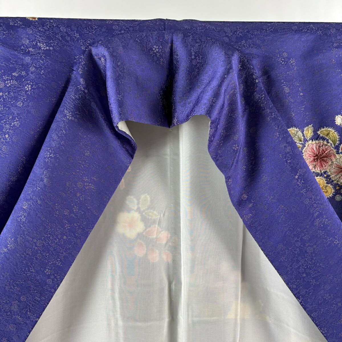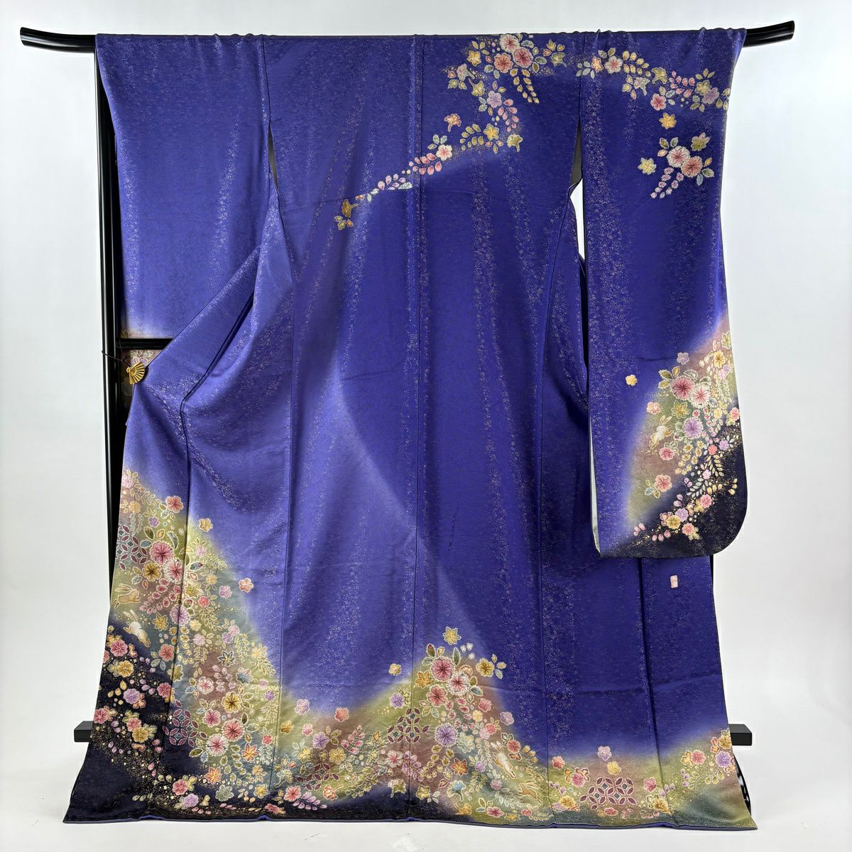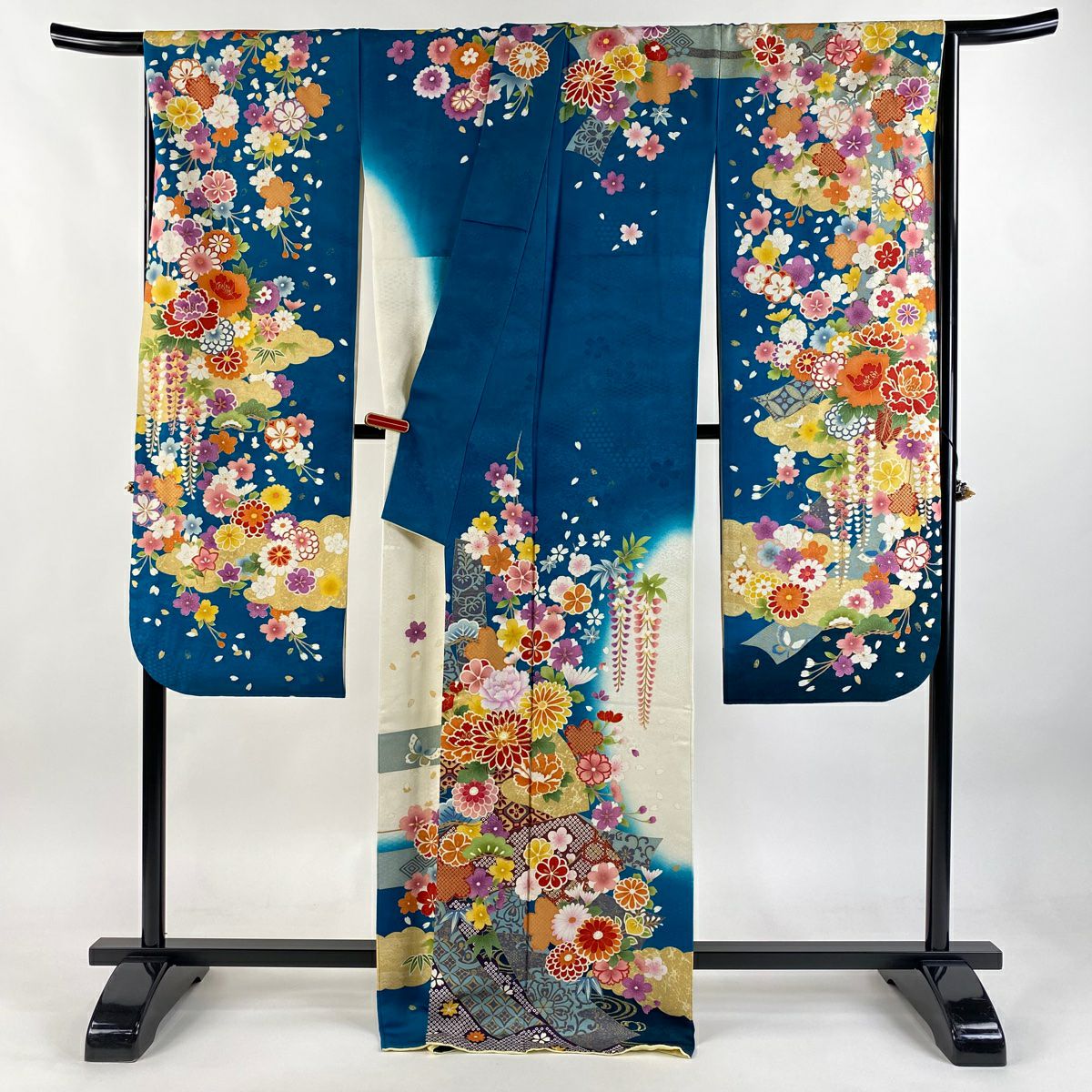 【在庫一掃】 【美品】 振袖 身丈160cm 裄丈68cm L 袷 牡丹 松 金通し 刺繍 濃紺 正絹 逸品