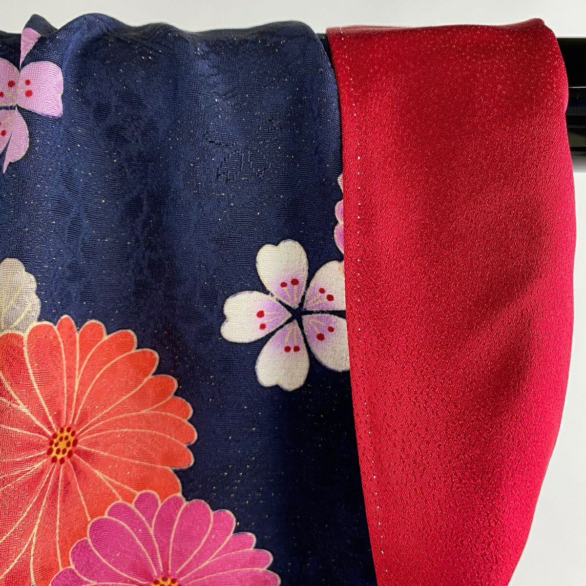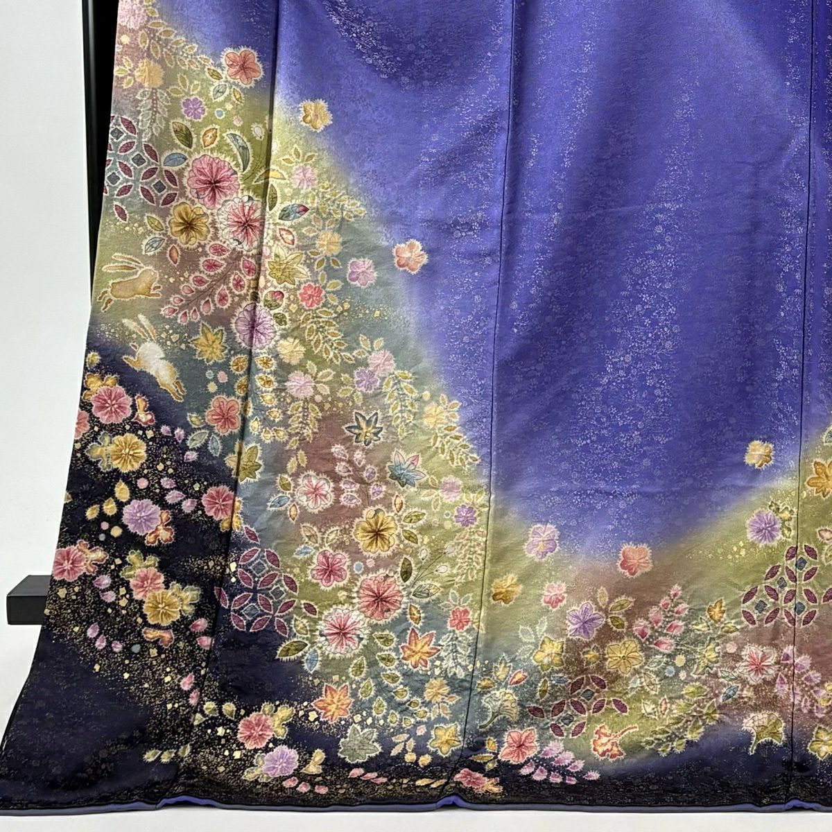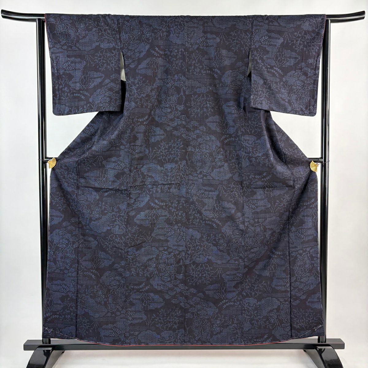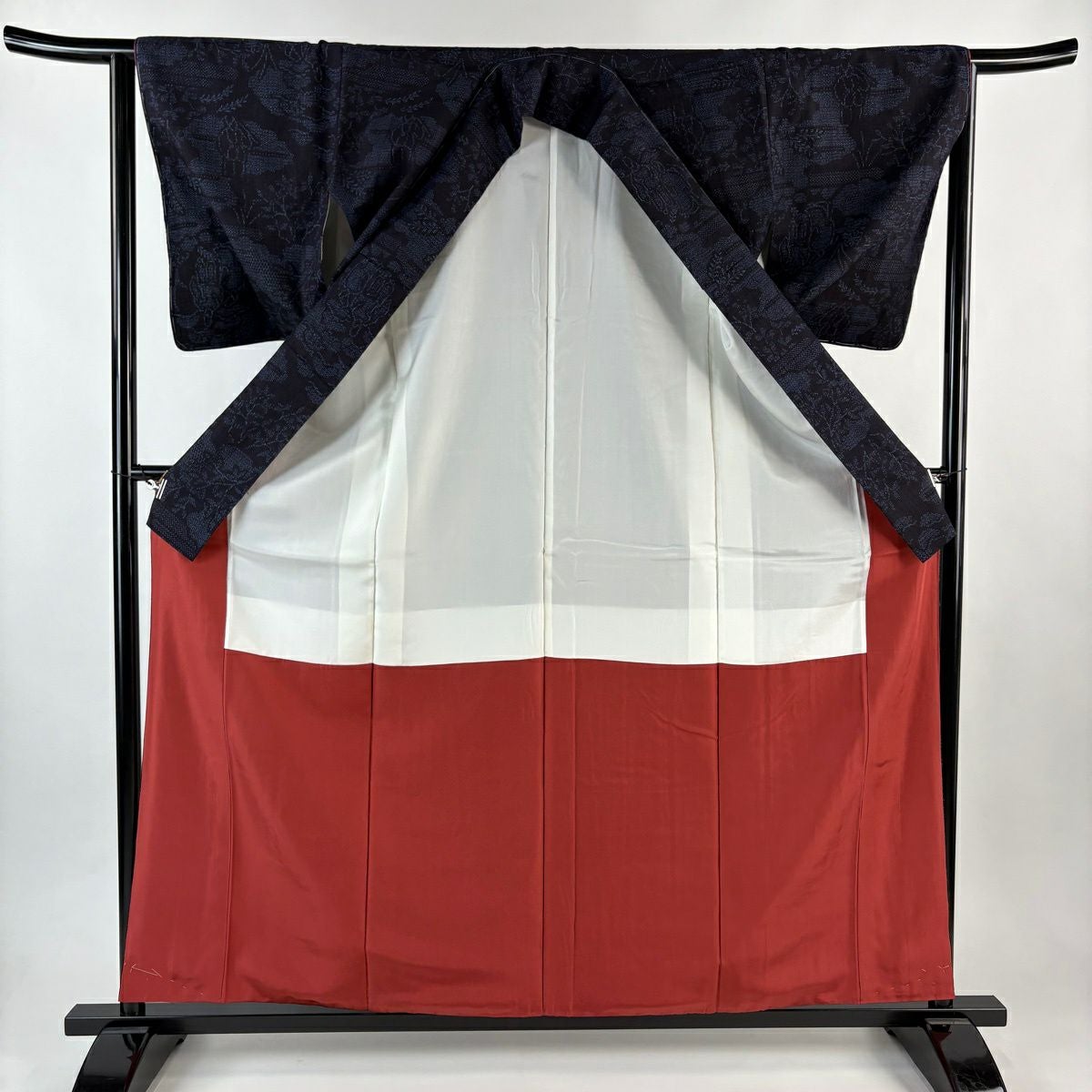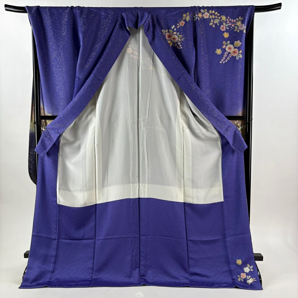 【在庫一掃】 【美品】 振袖 身丈160cm 裄丈68cm L 袷 牡丹 松 金通し 刺繍 濃紺 正絹 逸品