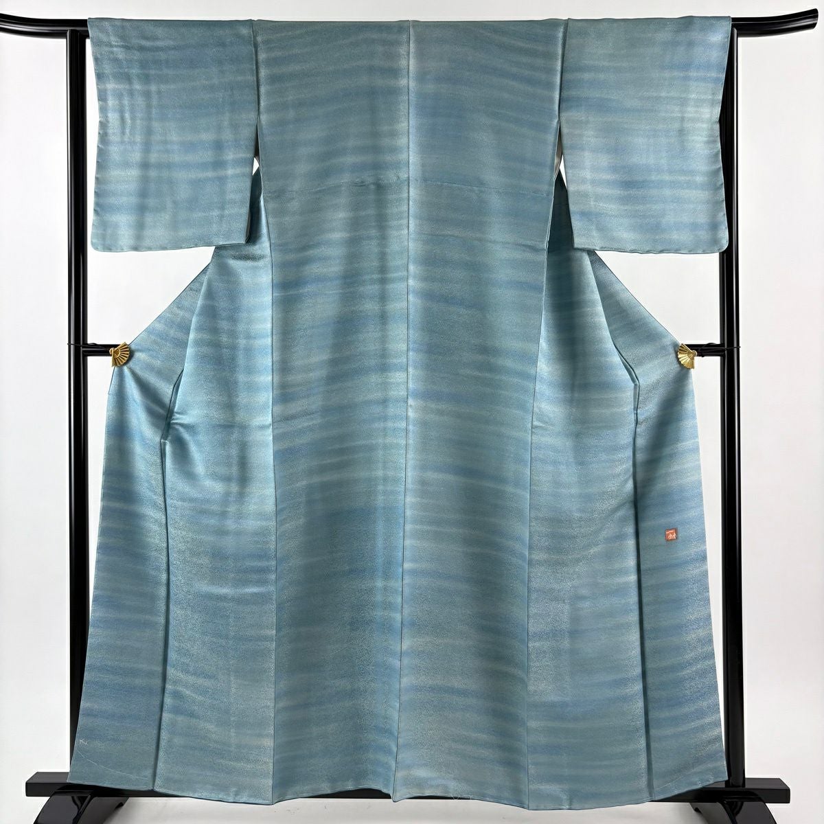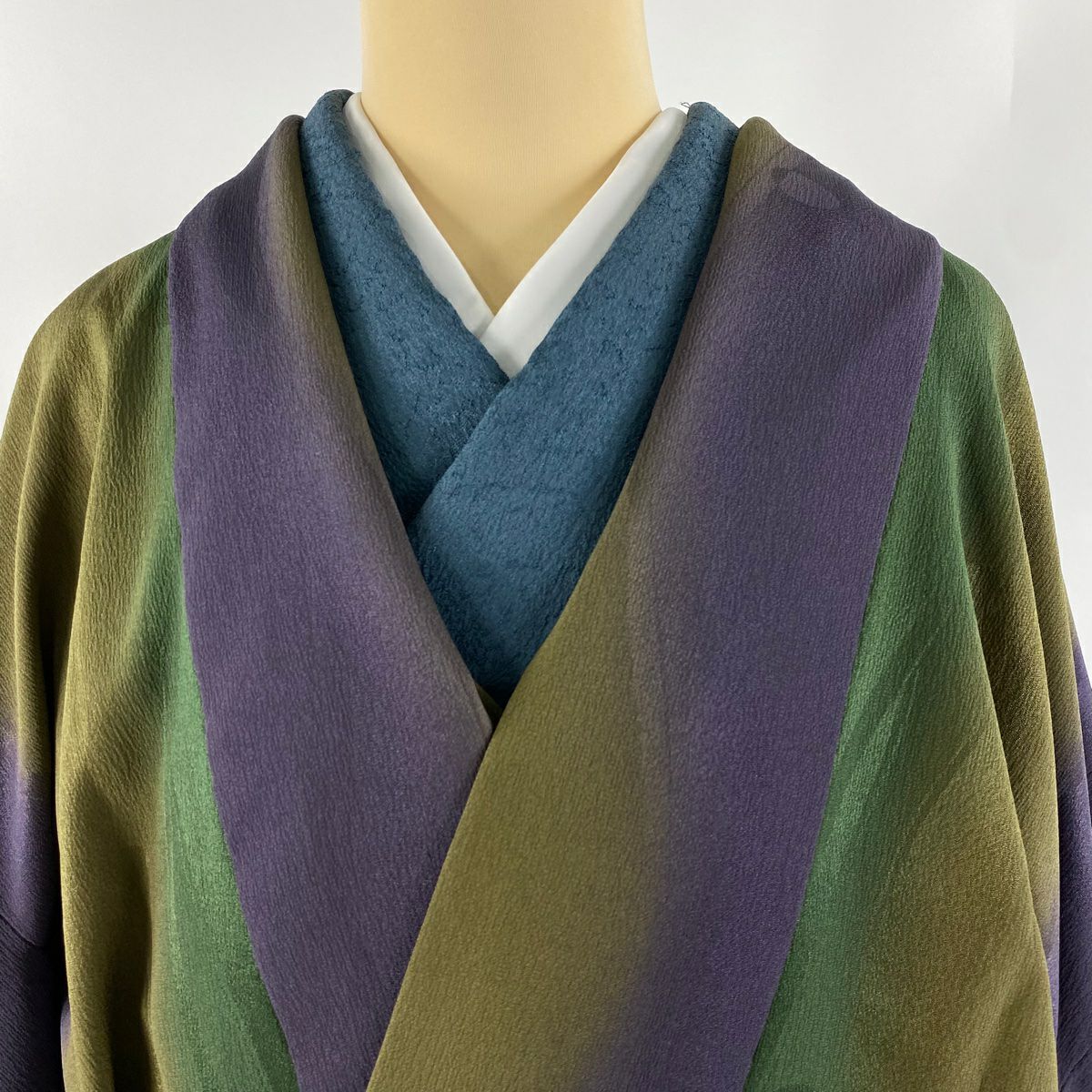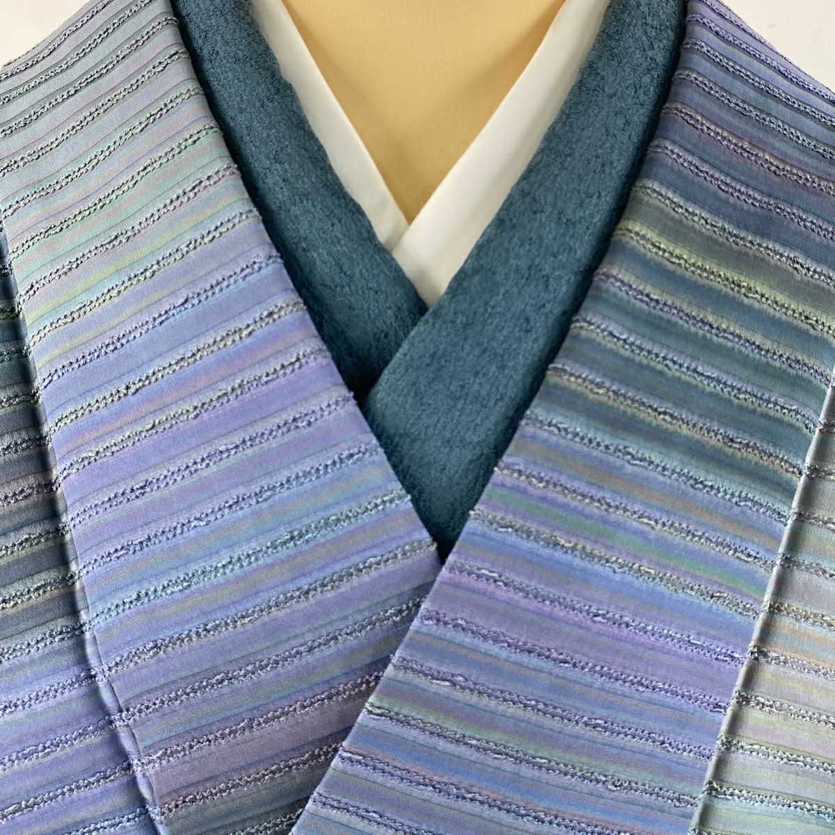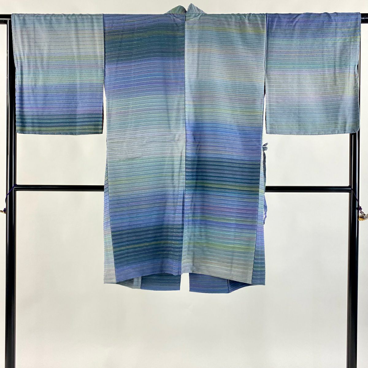 【在庫一掃】 【美品】 道中着 身丈109cm 裄丈66cm M 和装コート 横縞 ぼかし 青紫 正絹 逸品