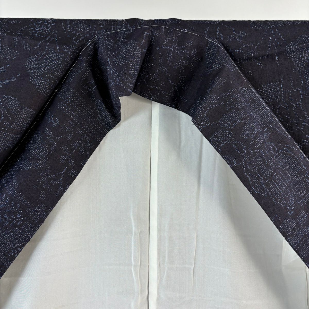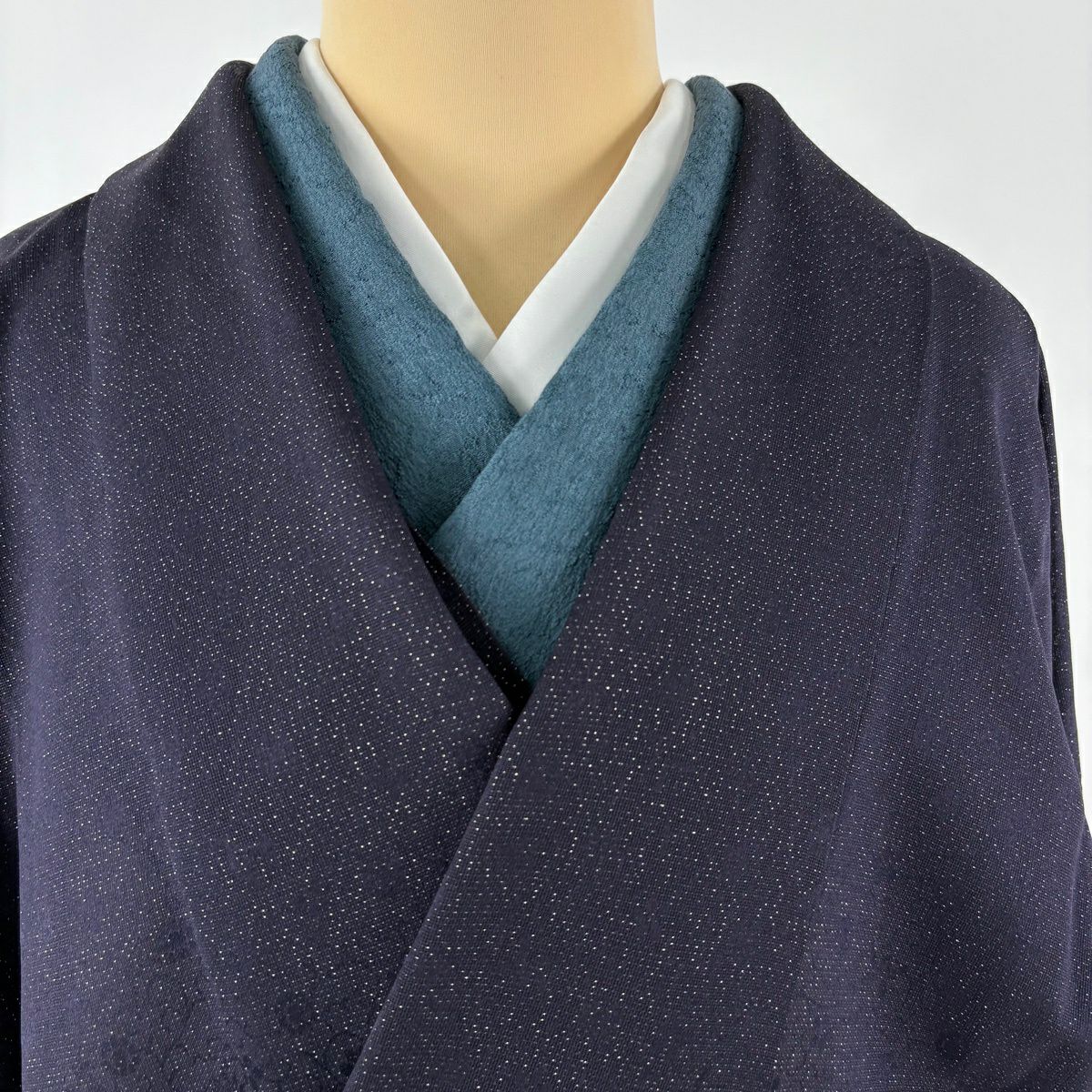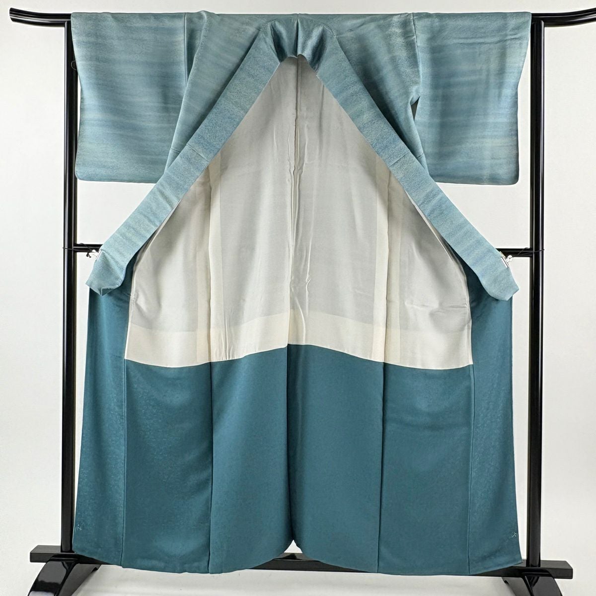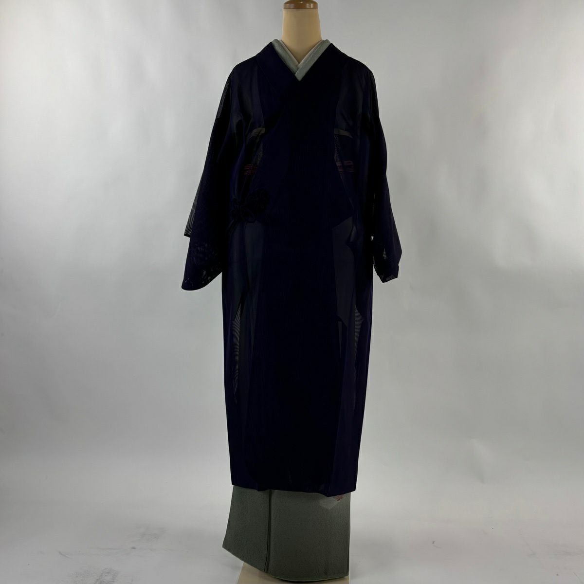 【在庫一掃】 【美品】 道中着 身丈109cm 裄丈66cm M 和装コート 横縞 ぼかし 青紫 正絹 逸品