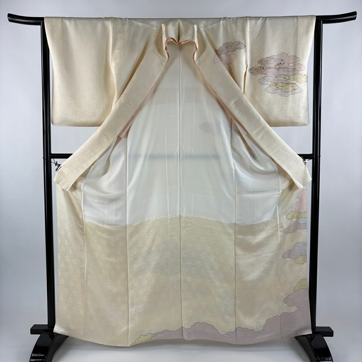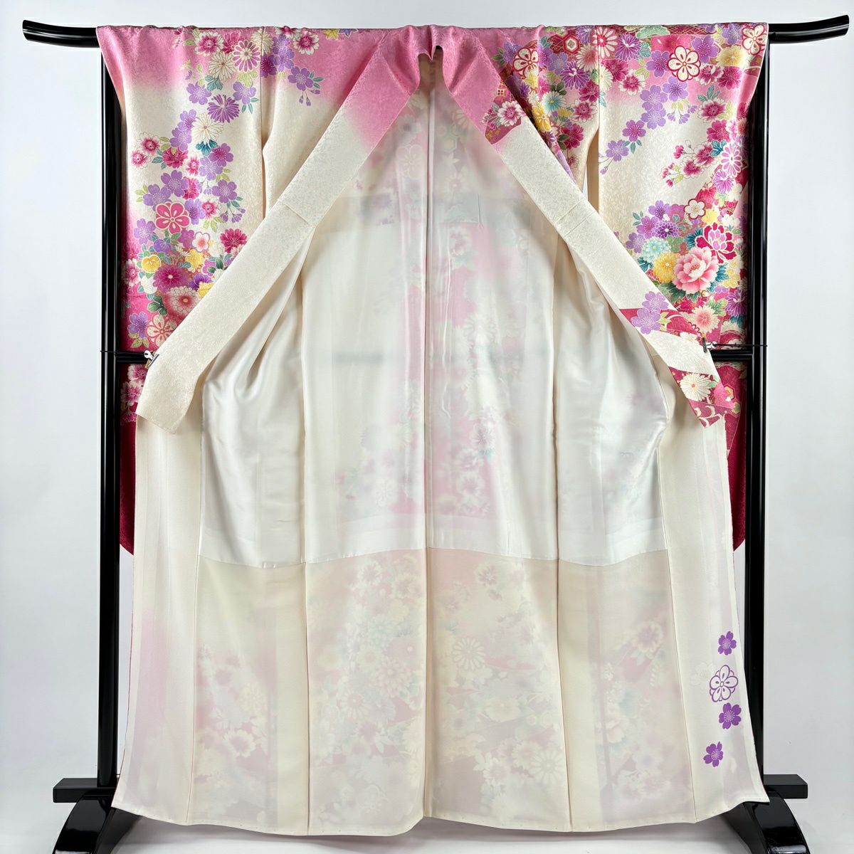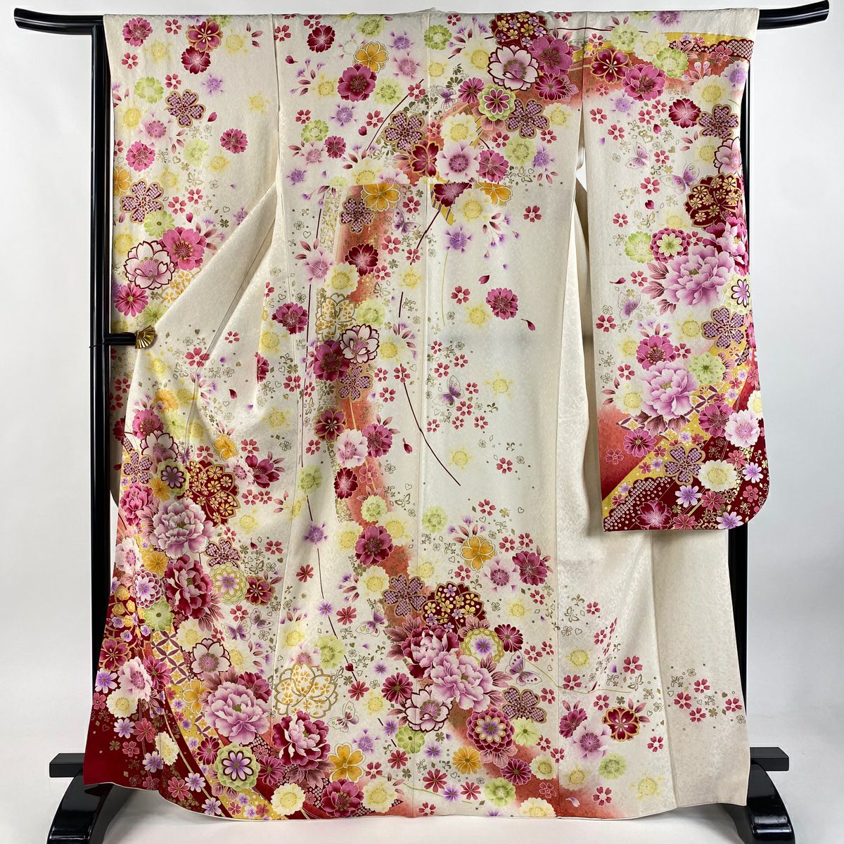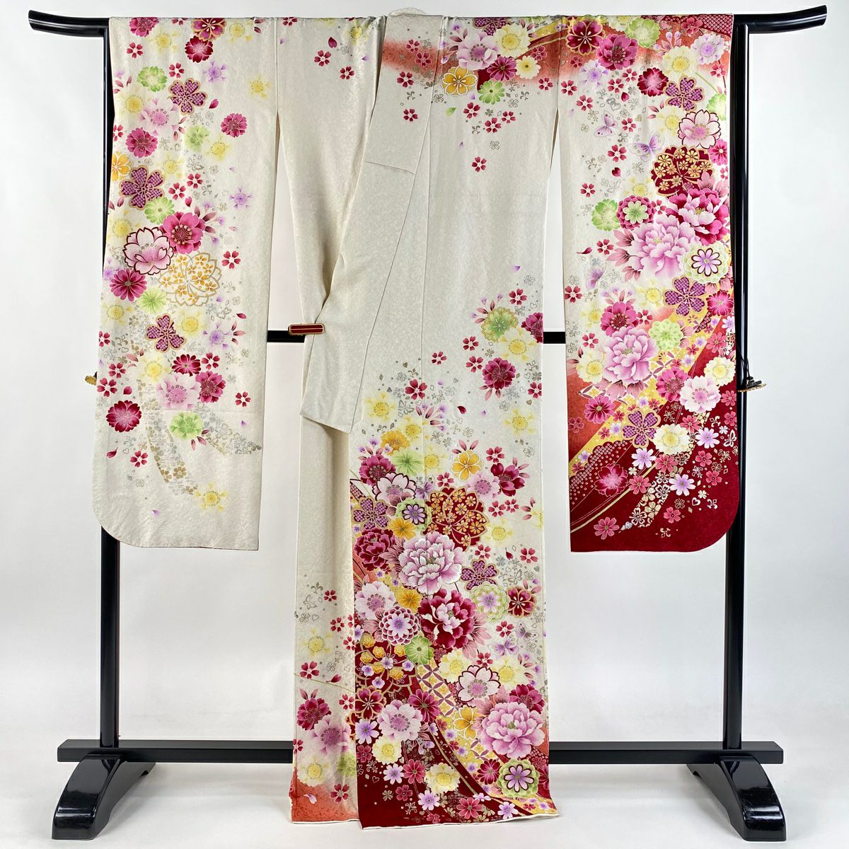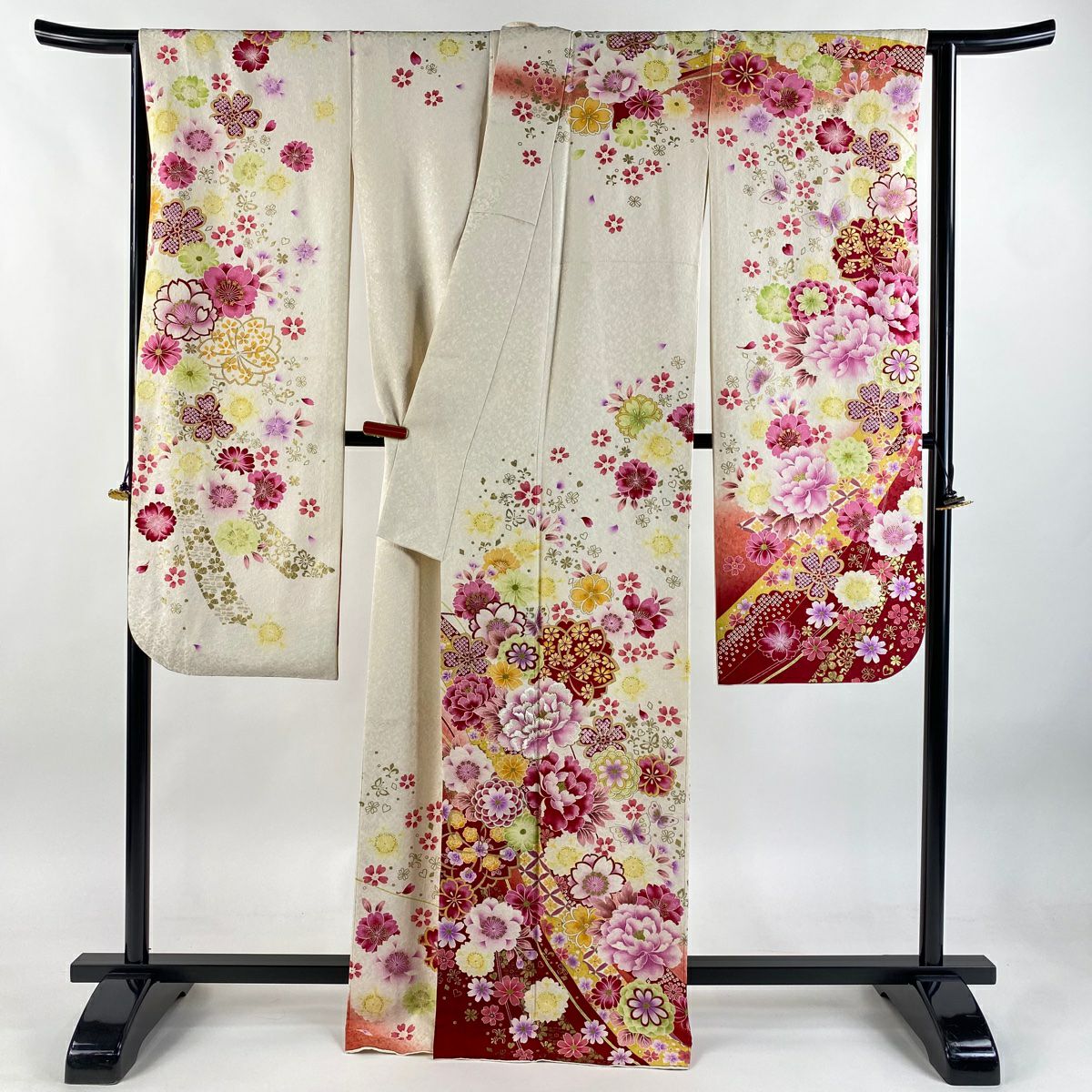 【在庫一掃】 振袖 身丈164.5cm 裄丈67cm M 袷 牡丹 桜 刺繍 銀通し クリーム 正絹 逸品
