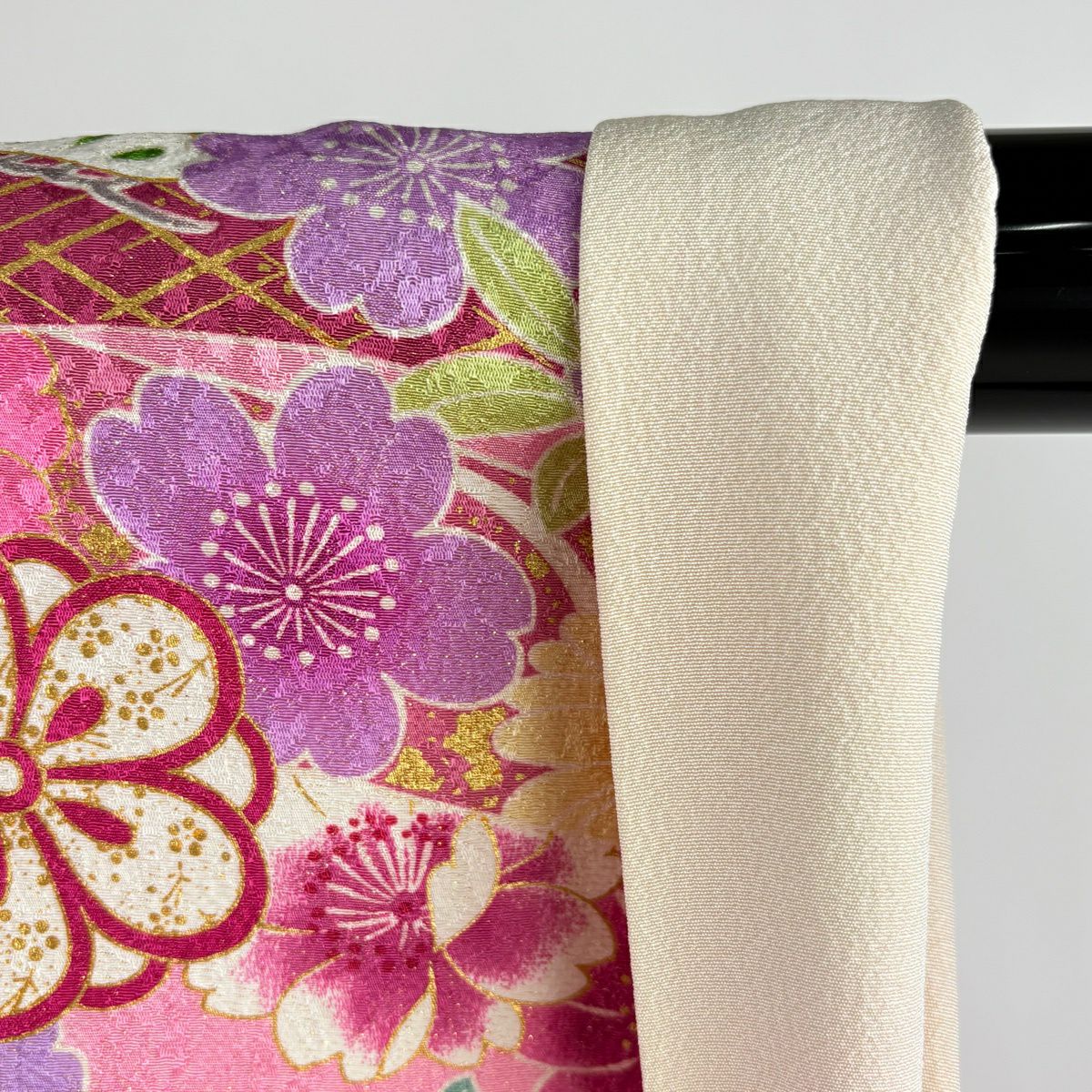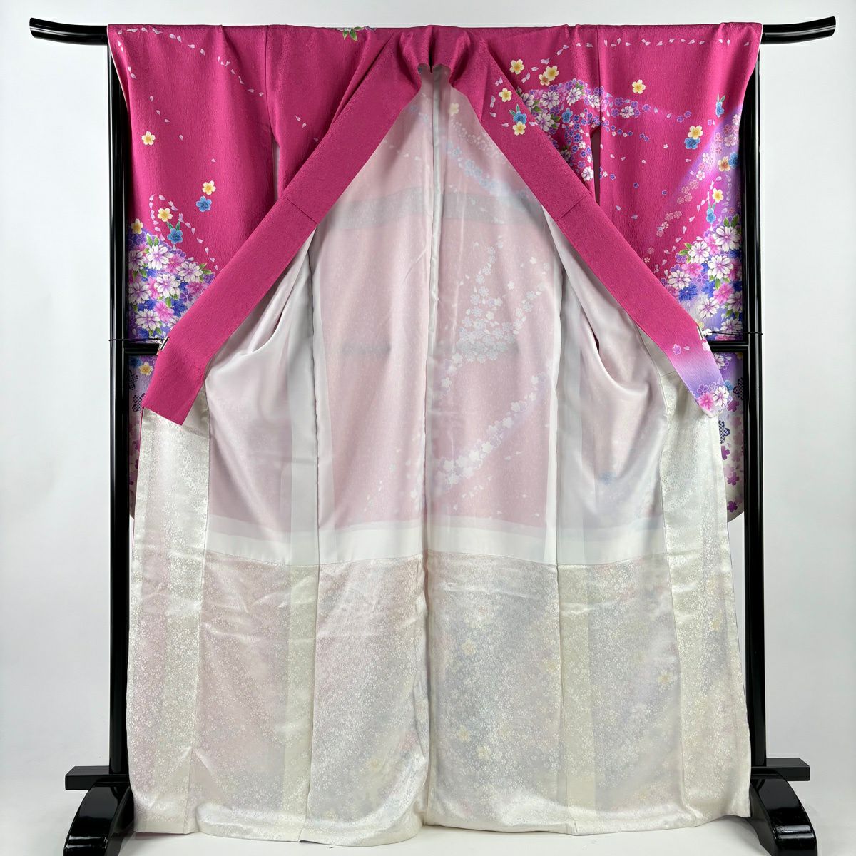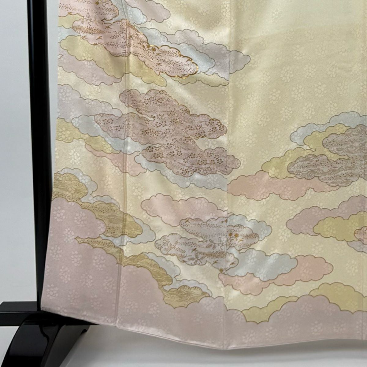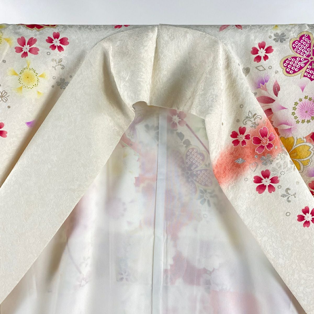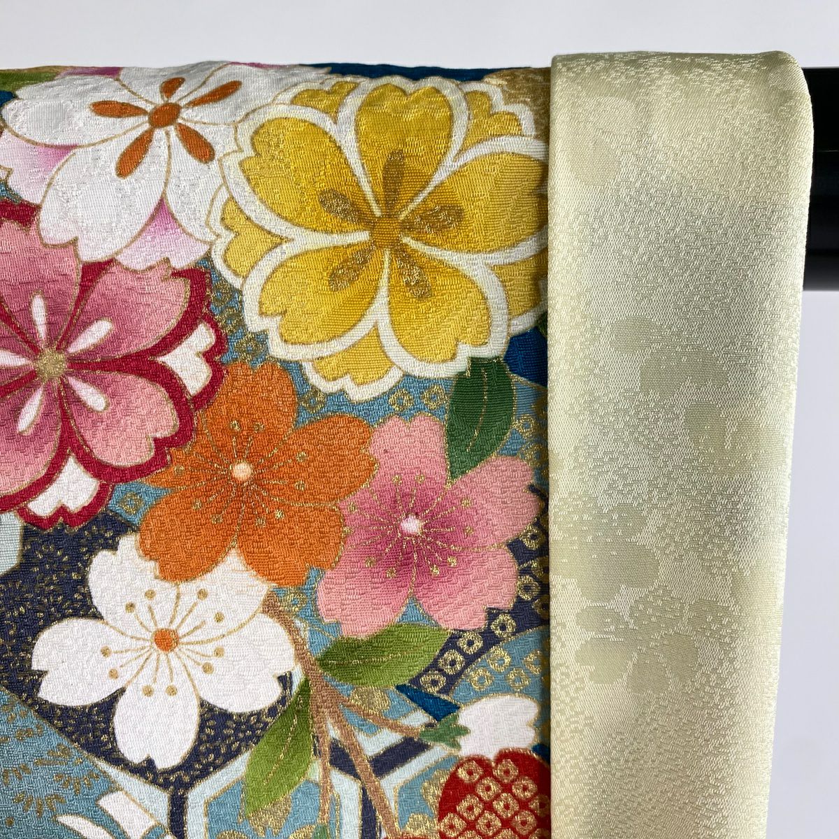 【在庫一掃】 振袖 身丈164.5cm 裄丈67cm M 袷 牡丹 桜 刺繍 銀通し クリーム 正絹 逸品