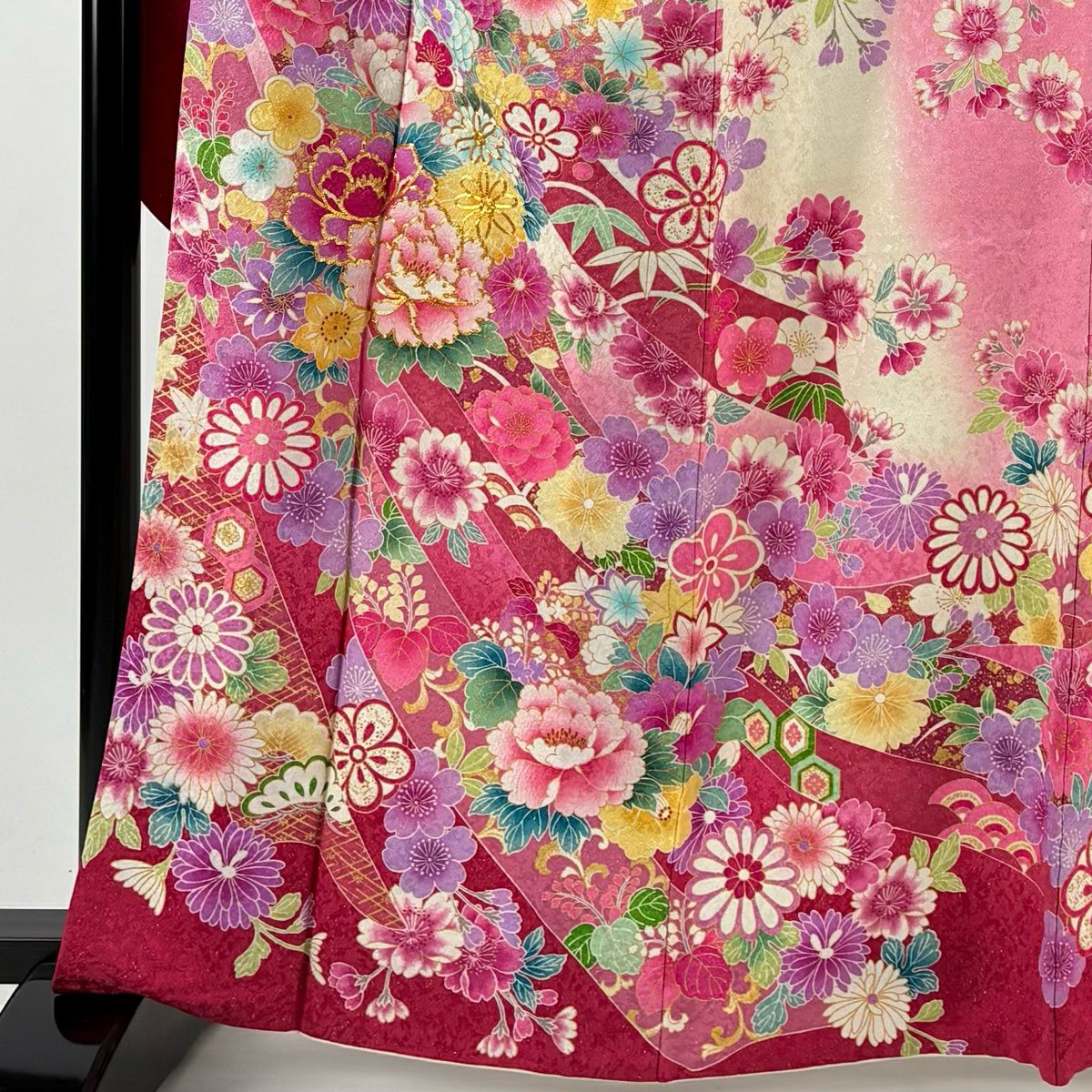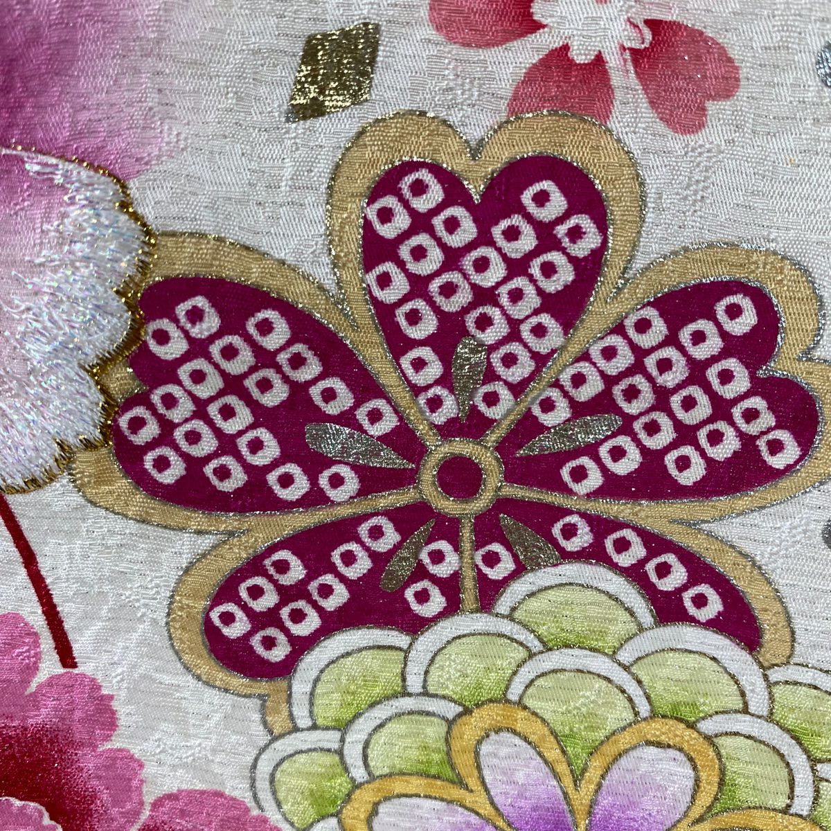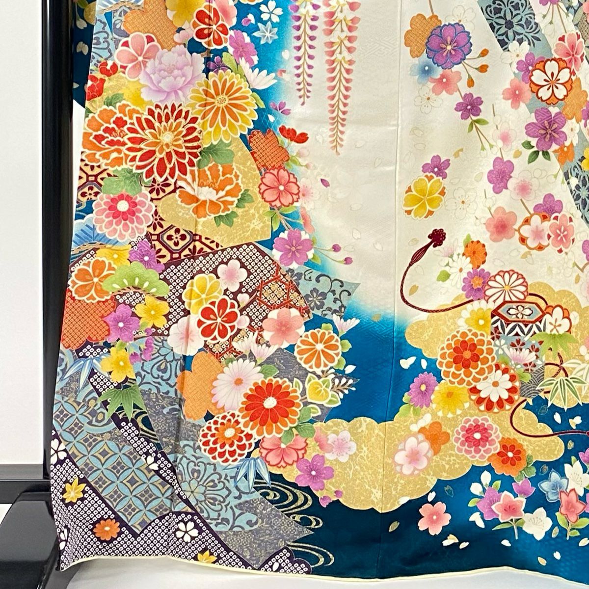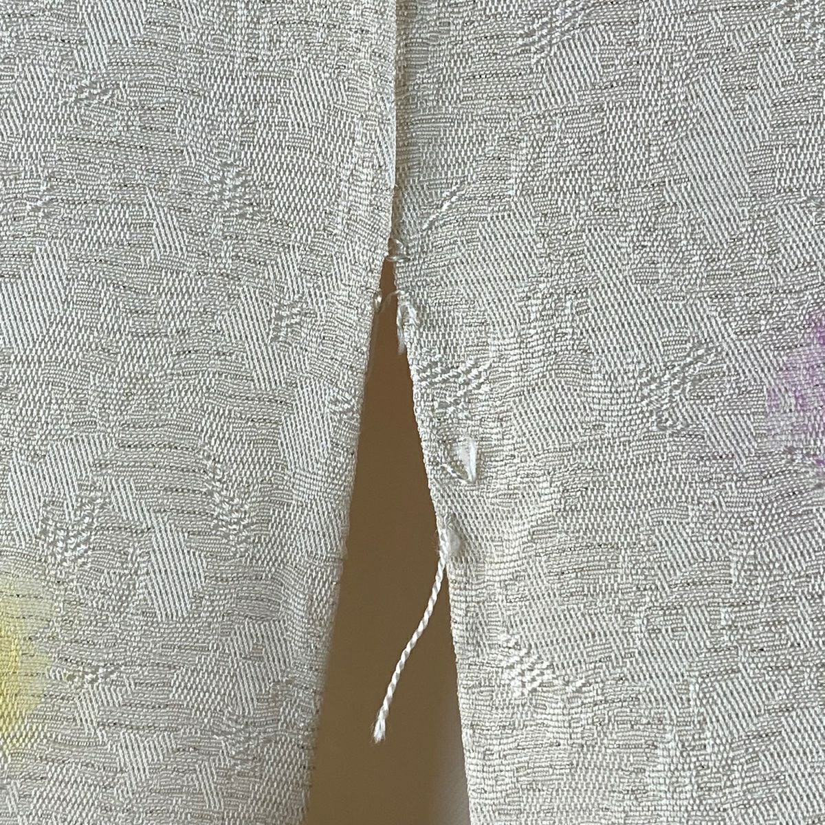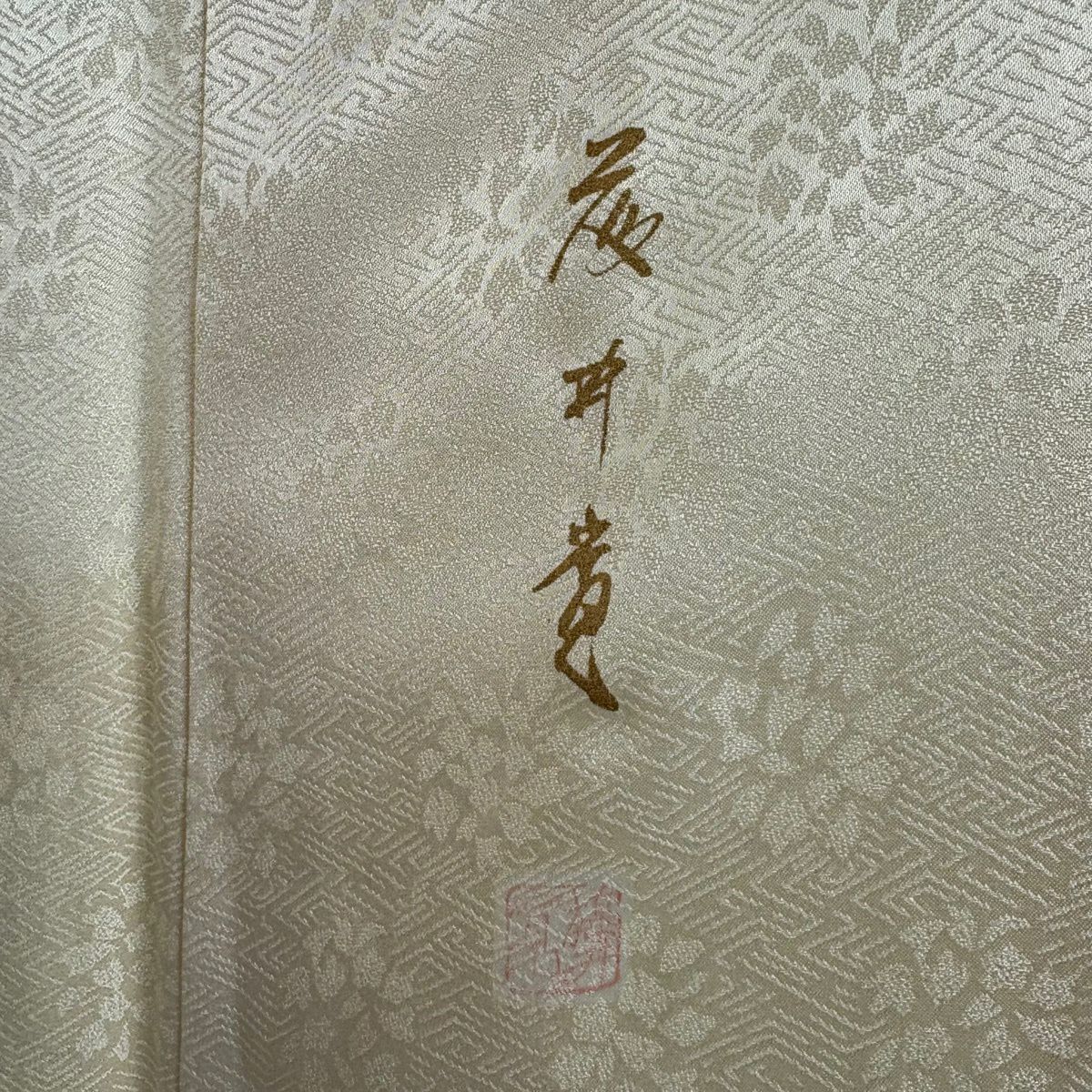 【在庫一掃】 振袖 身丈164.5cm 裄丈67cm M 袷 牡丹 桜 刺繍 銀通し クリーム 正絹 逸品