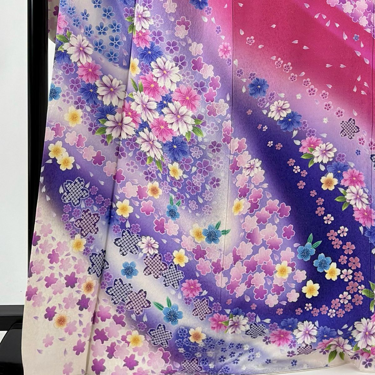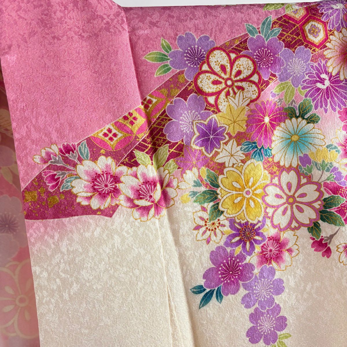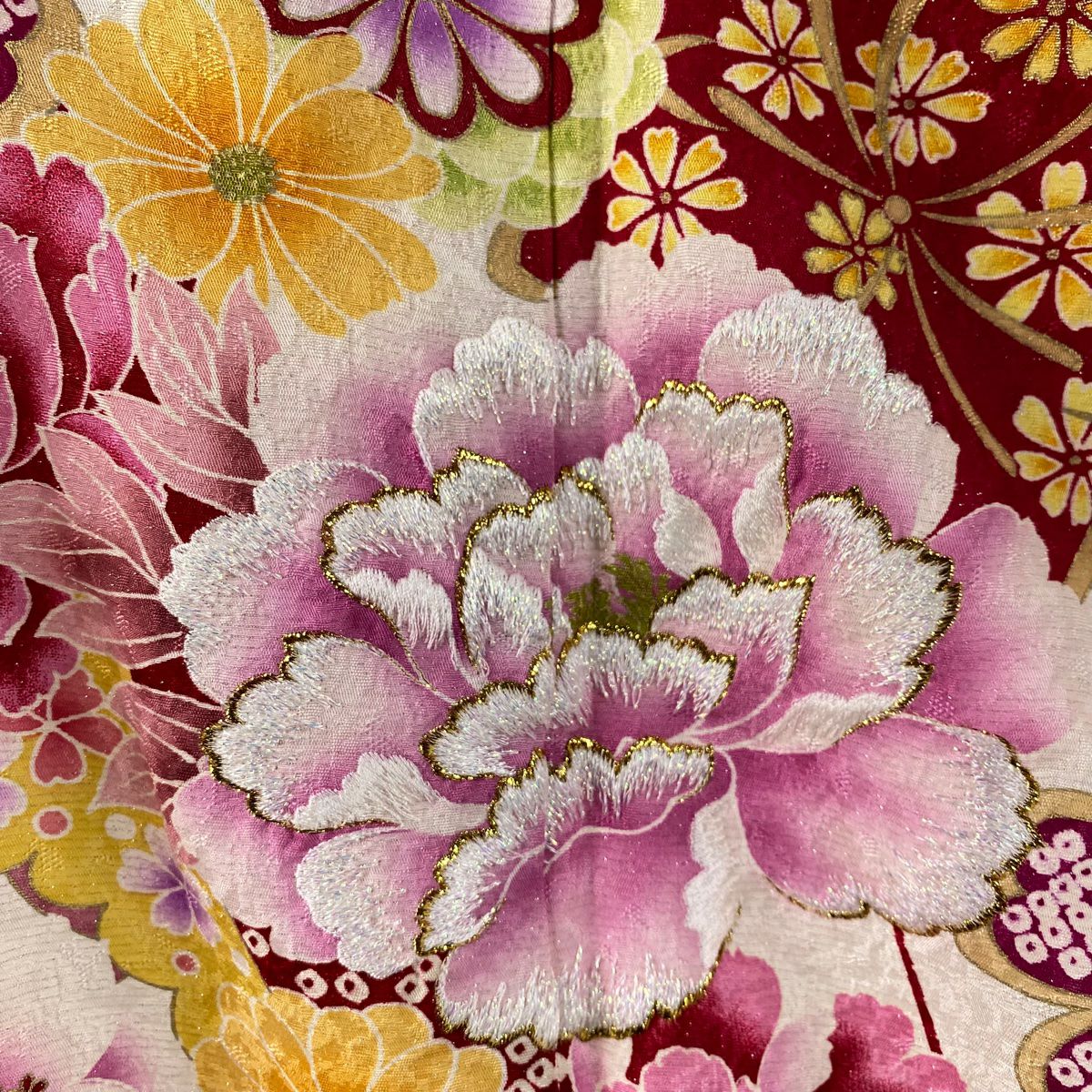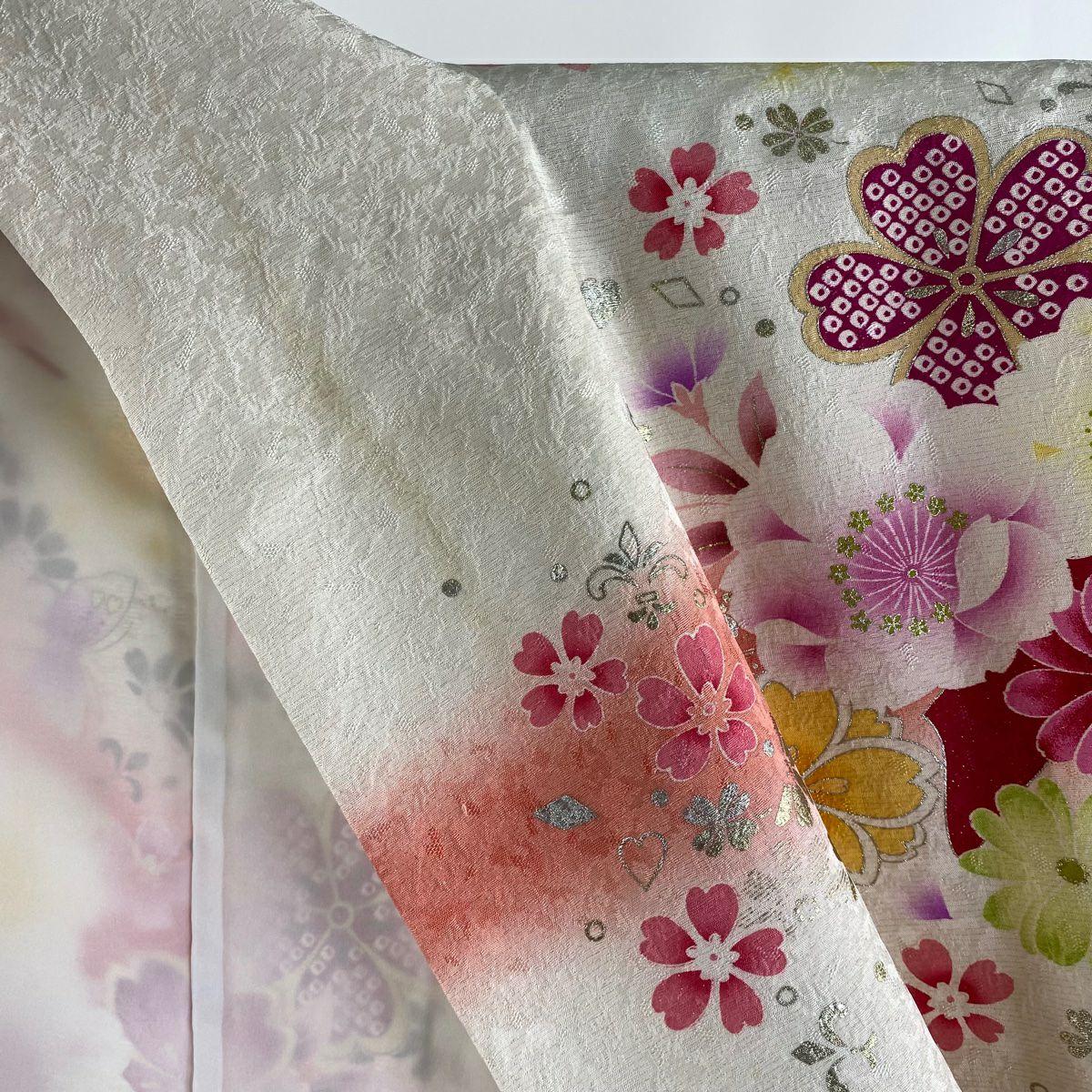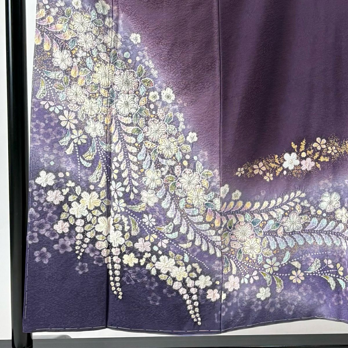 【在庫一掃】 振袖 身丈164.5cm 裄丈67cm M 袷 牡丹 桜 刺繍 銀通し クリーム 正絹 逸品