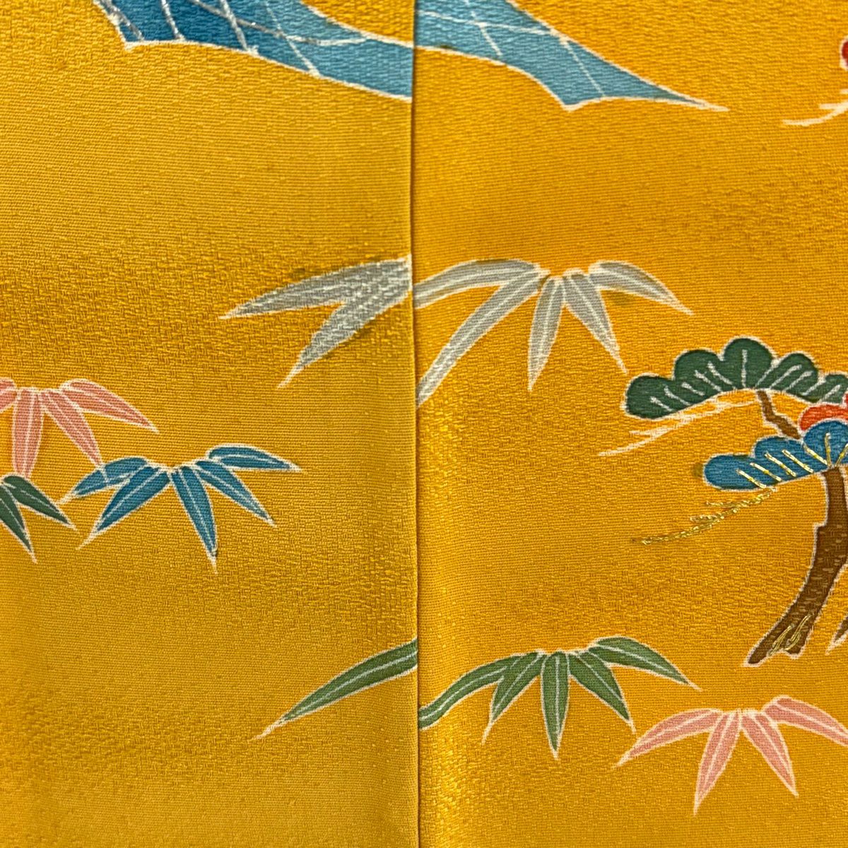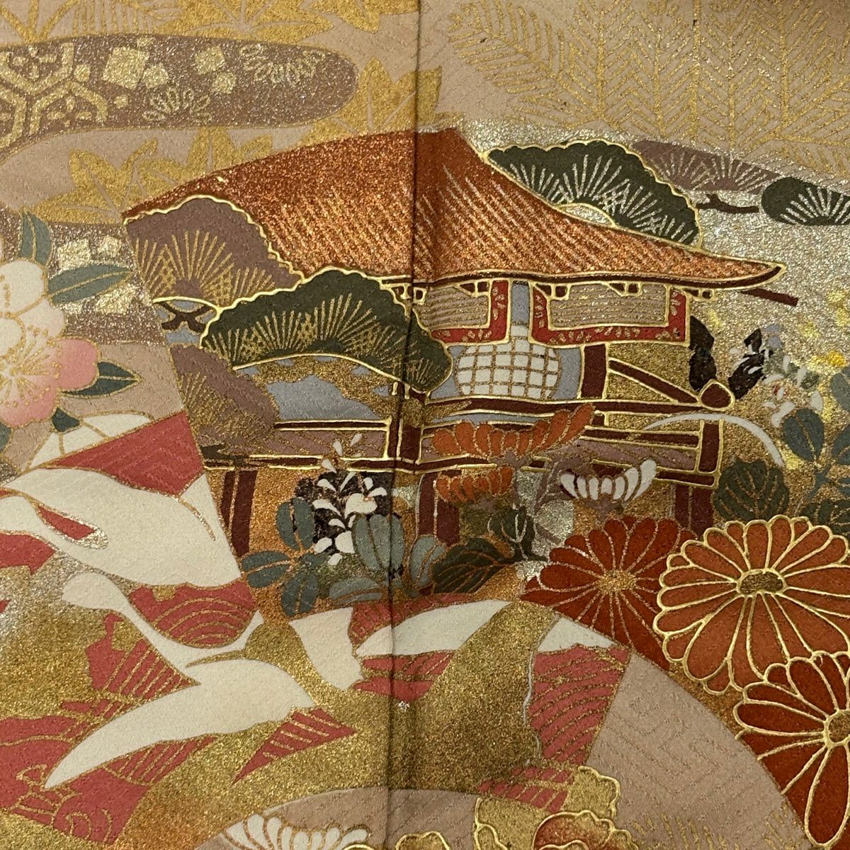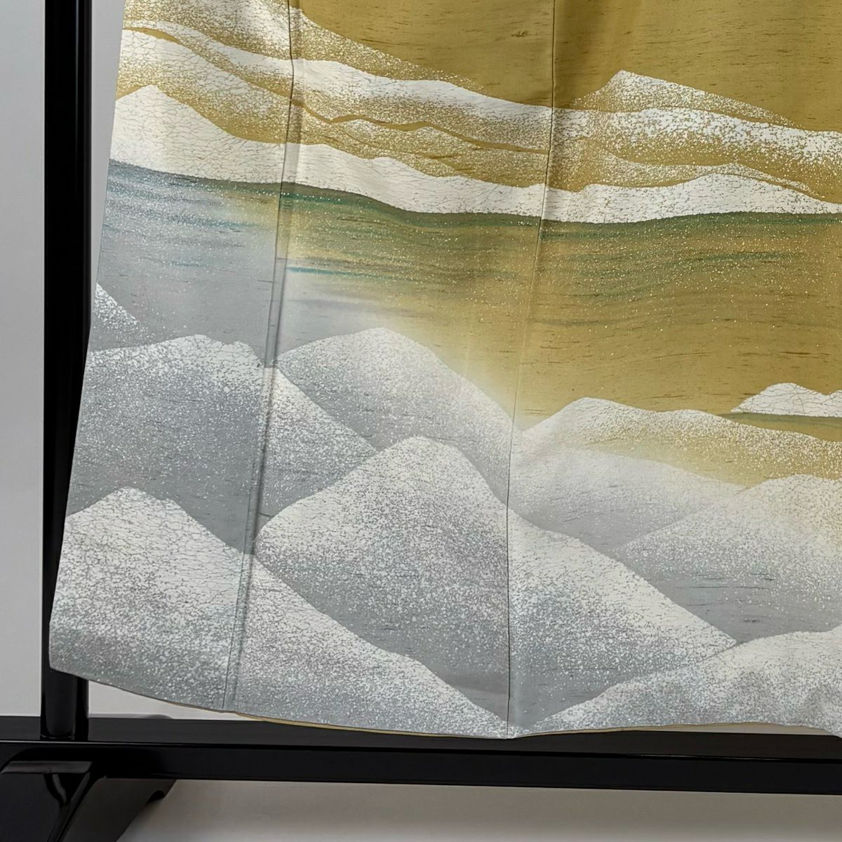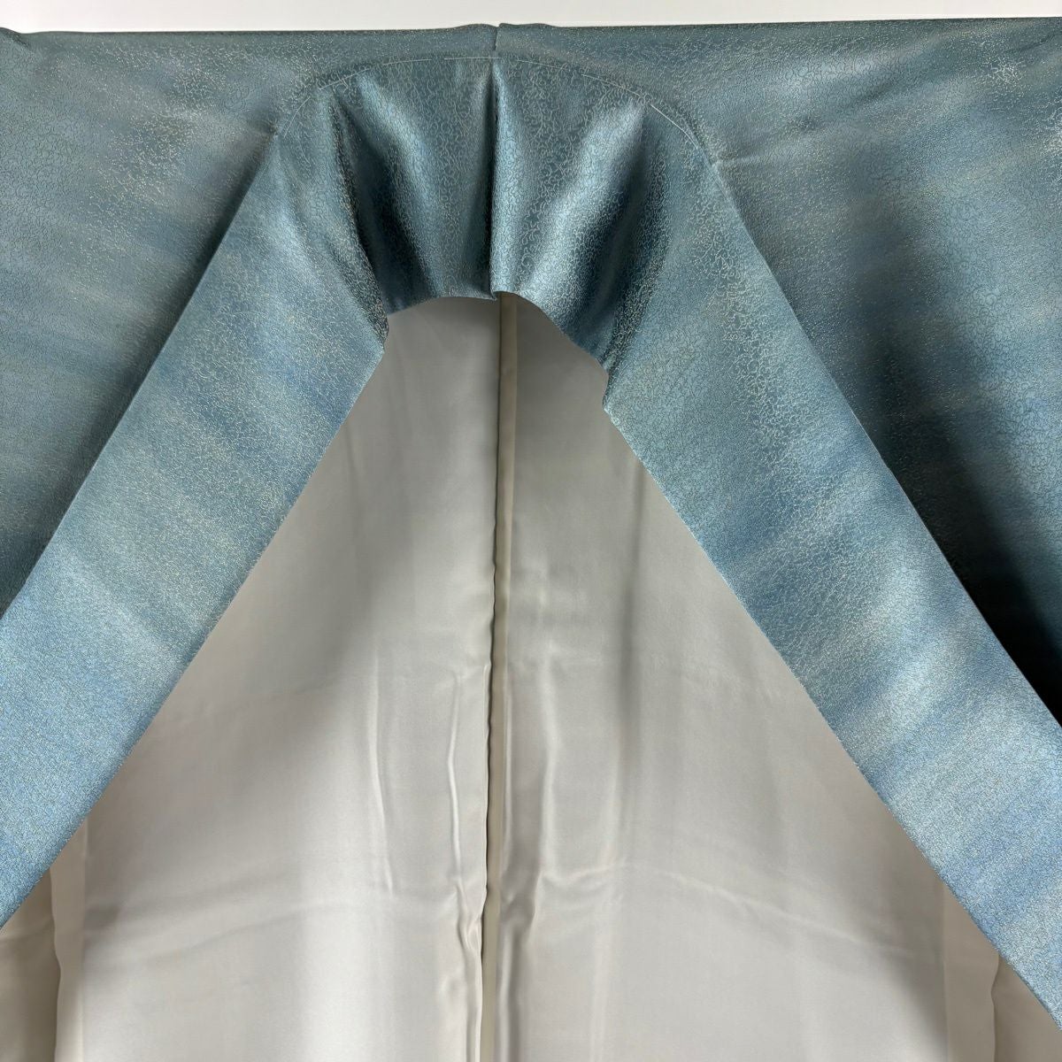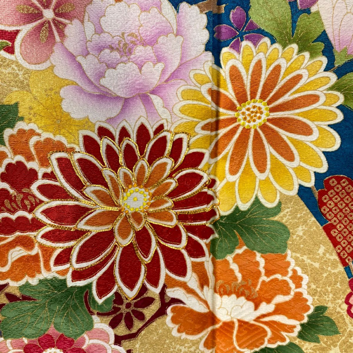 【在庫一掃】 【美品】 振袖 身丈171cm 裄丈67cm M 袷 菊 扇面 銀通し 金糸 青緑 正絹 逸品
