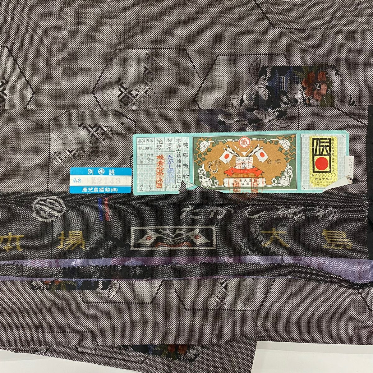 【在庫一掃】 大島紬 身丈163.5cm 裄丈64cm M 袷 たかし織物 亀甲 草花 焦茶色 正絹 逸品