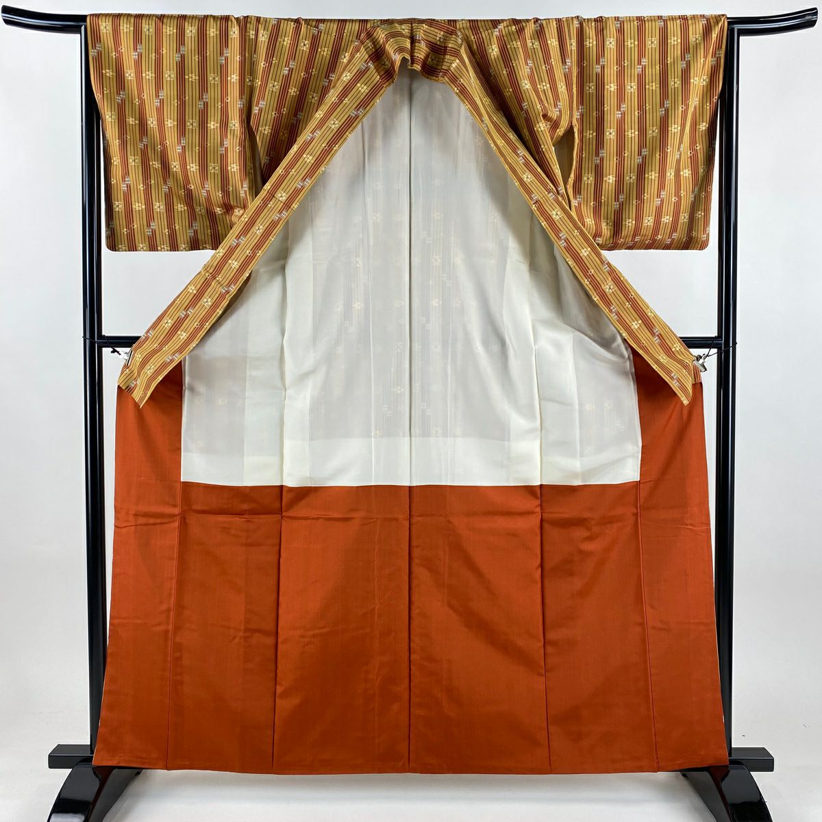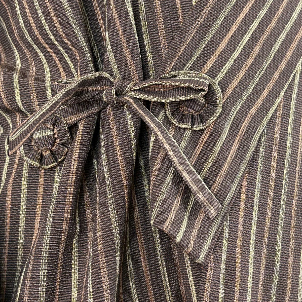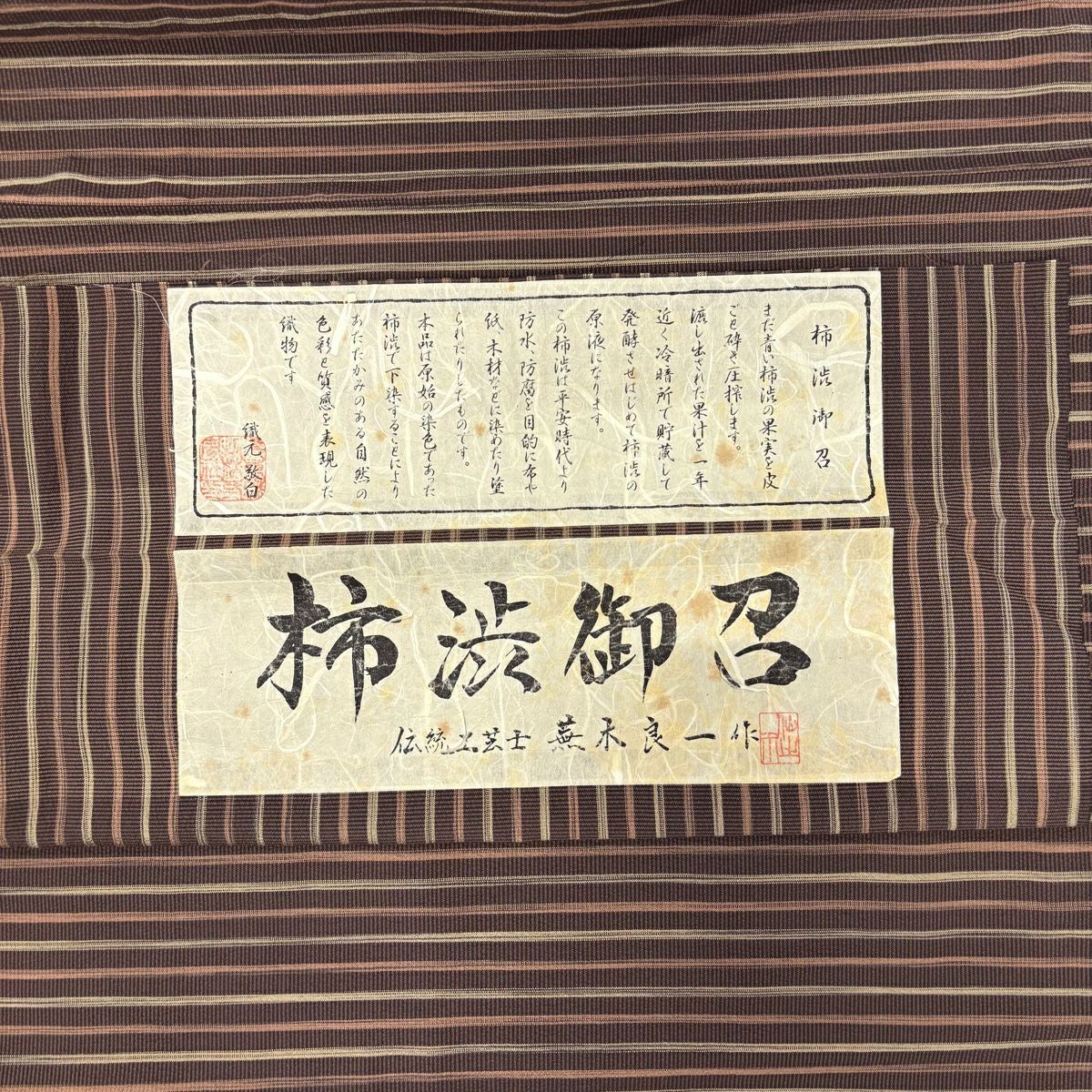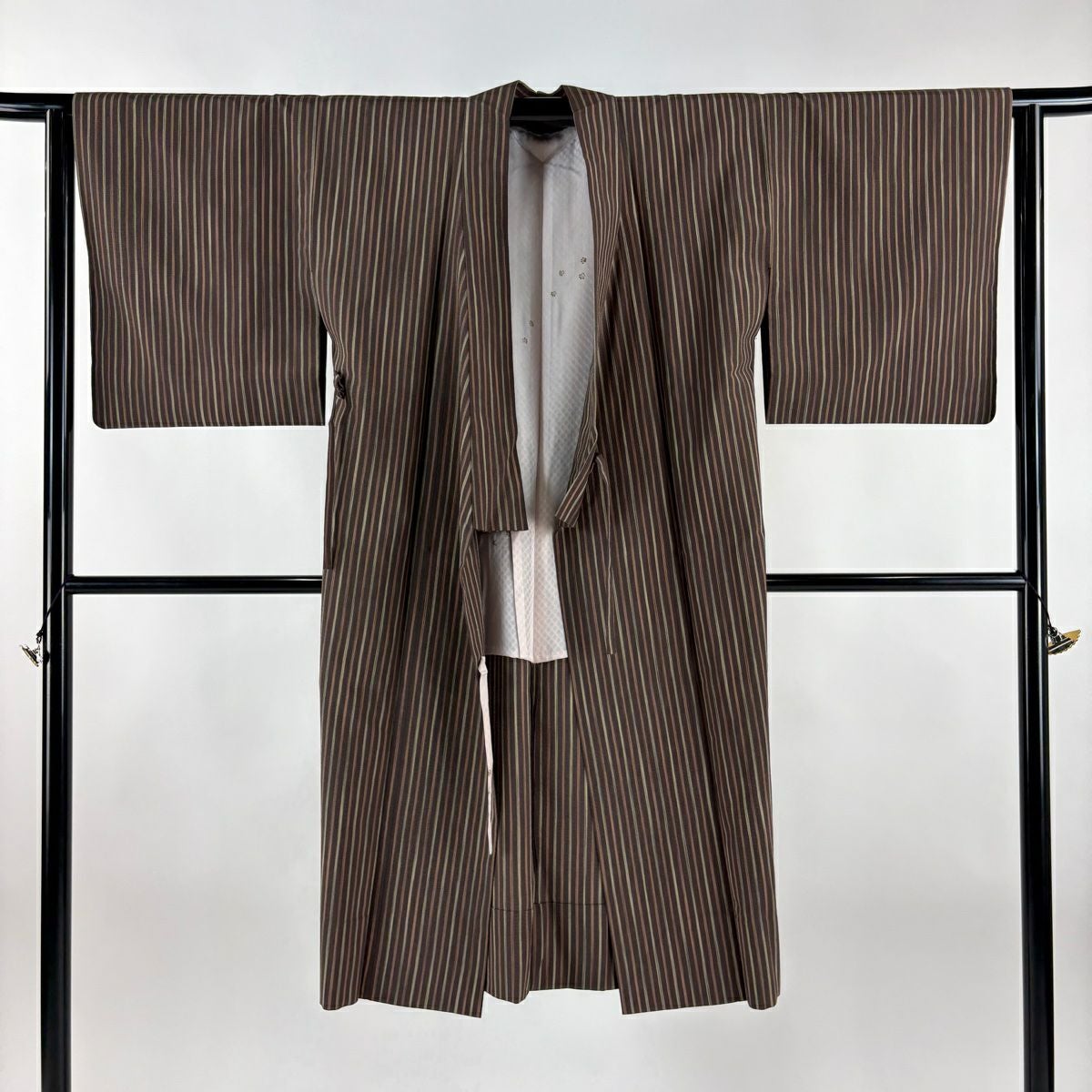 【在庫一掃】 道中着 身丈119cm 裄丈63cm S 柿渋御召 和装コート 着物衿 縞 茶色 正絹 逸品