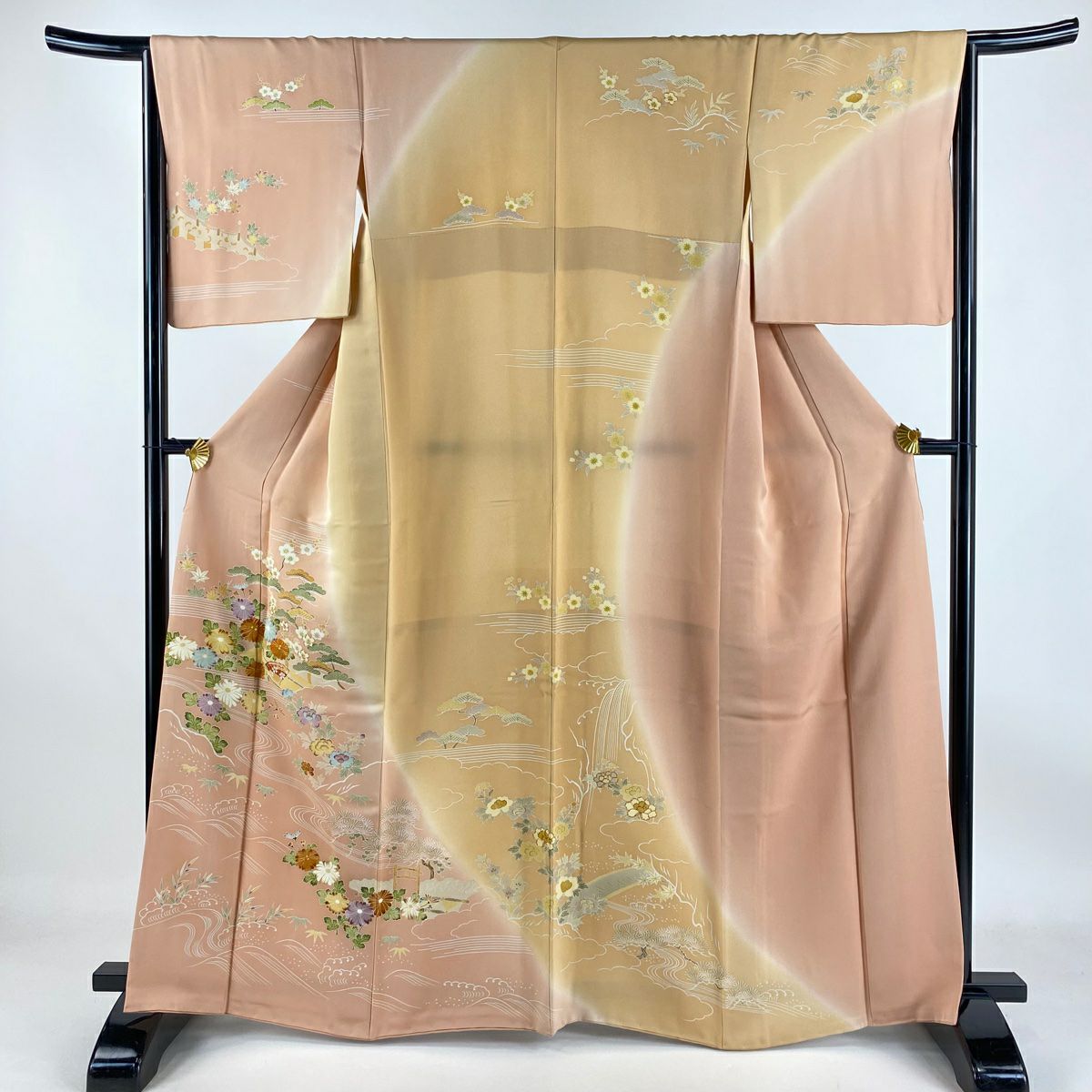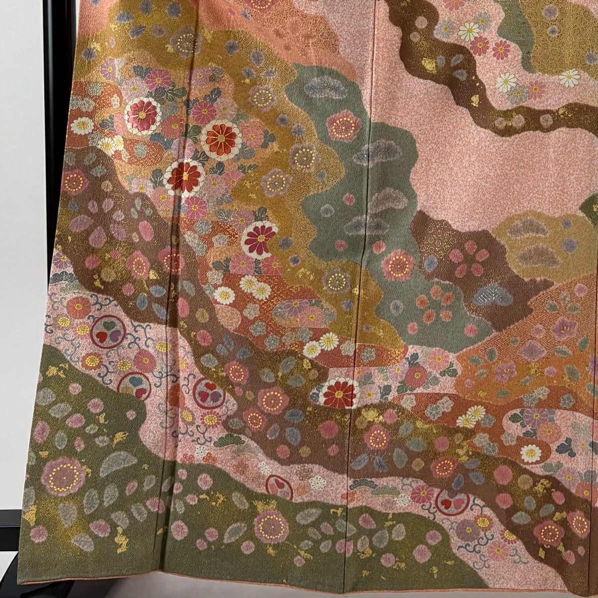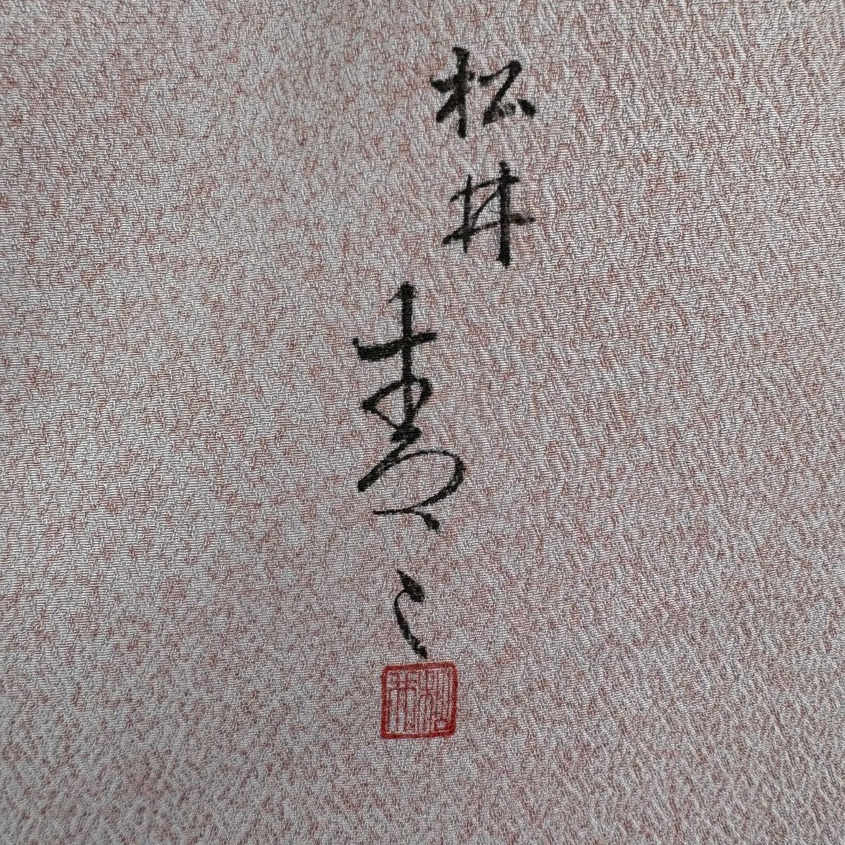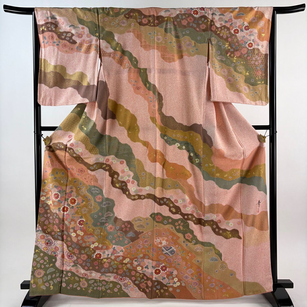 訪問着 身丈166.5cm 裄丈65cm M 袷 松井青々 落款あり 霞 草花 金糸 金彩 ピンク 正絹 逸品