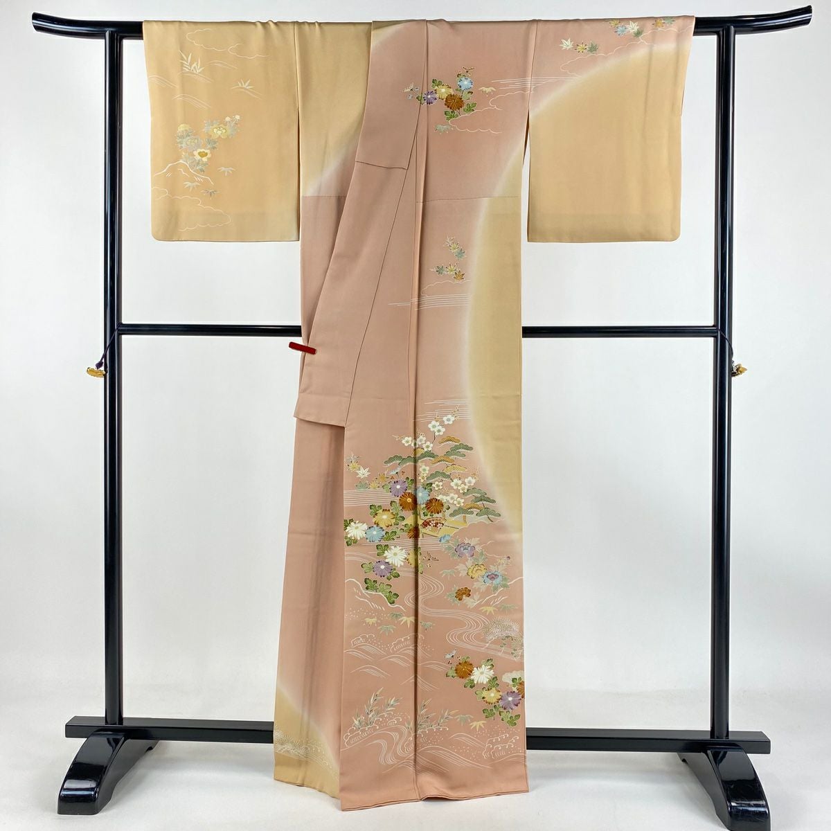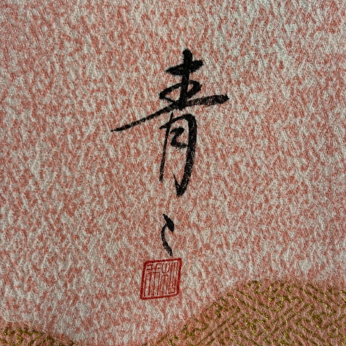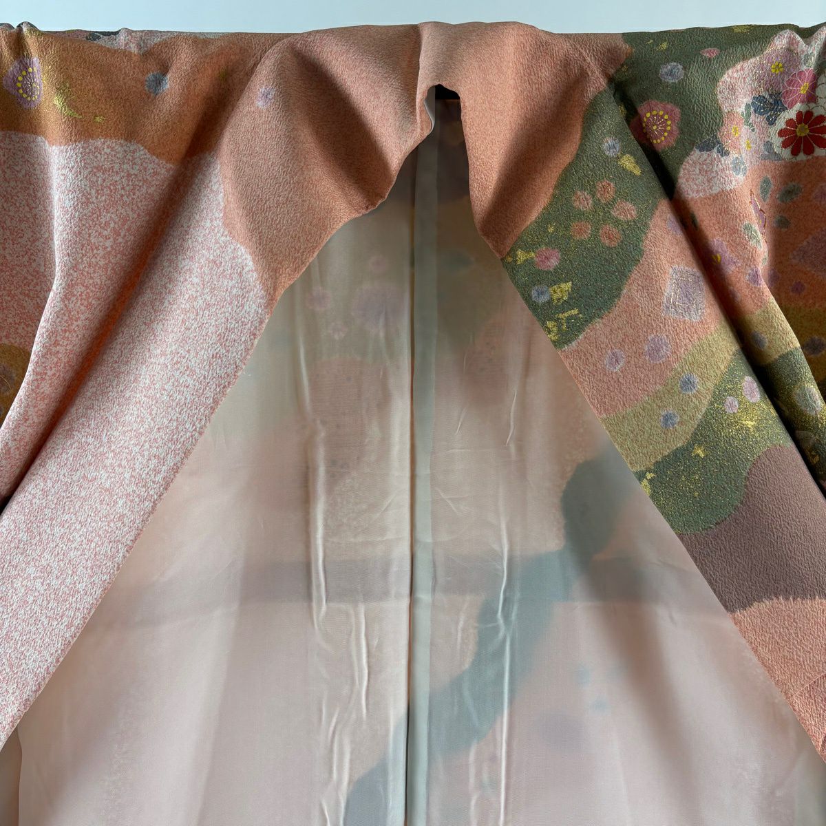 訪問着 身丈166.5cm 裄丈65cm M 袷 松井青々 落款あり 霞 草花 金糸 金彩 ピンク 正絹 逸品