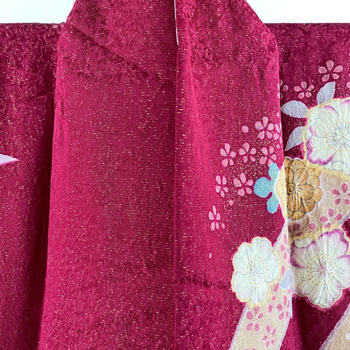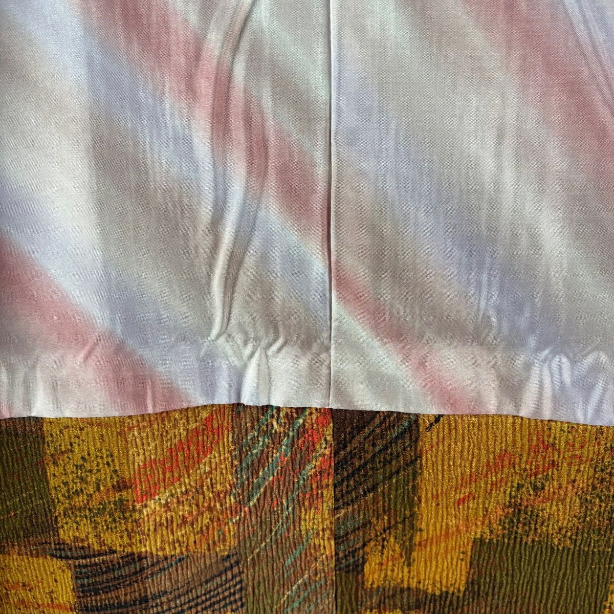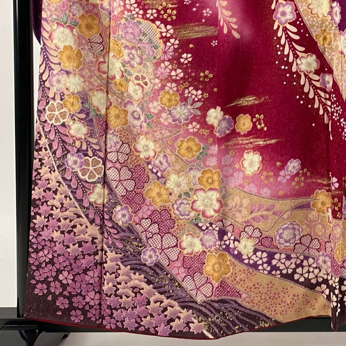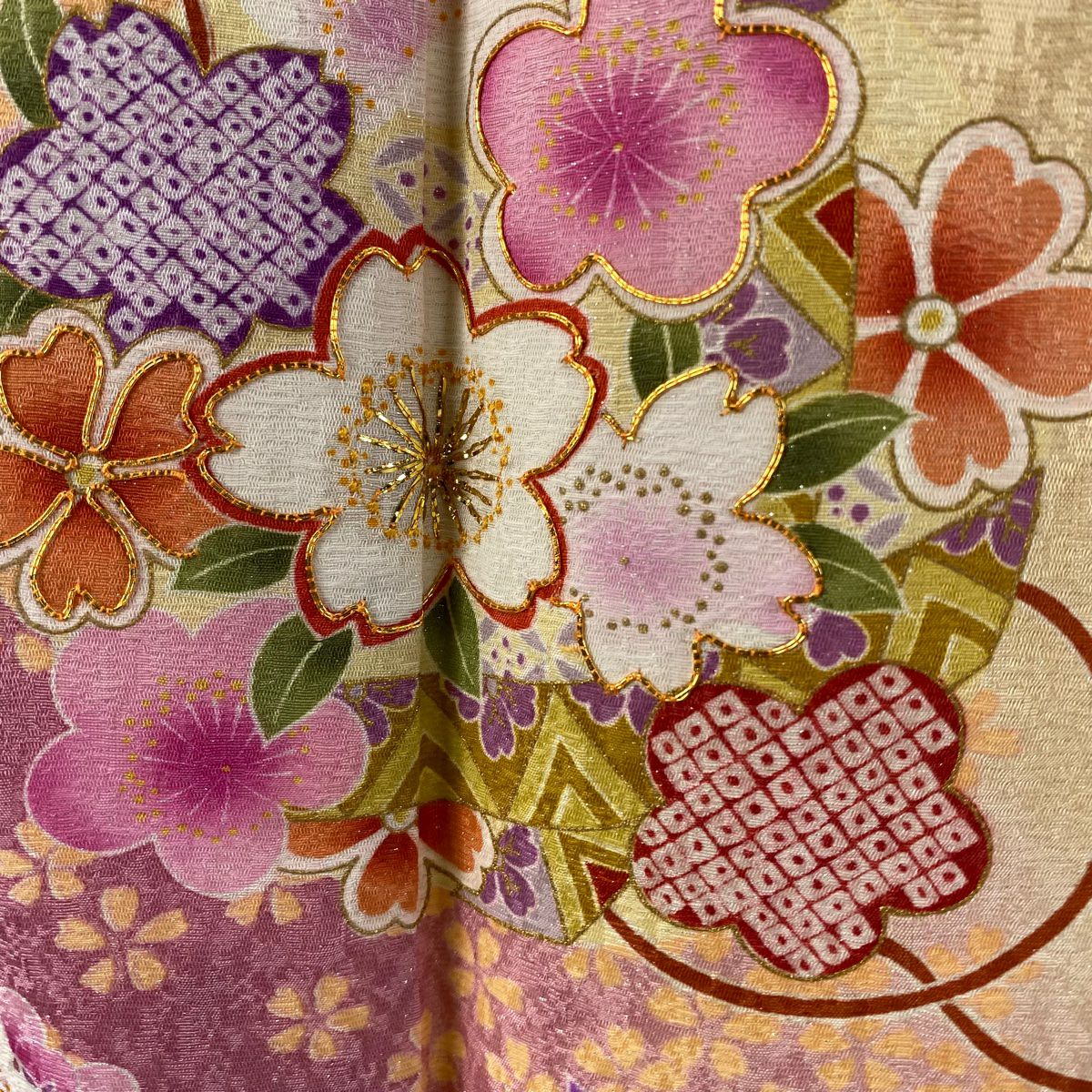 訪問着 身丈166.5cm 裄丈65cm M 袷 松井青々 落款あり 霞 草花 金糸 金彩 ピンク 正絹 逸品