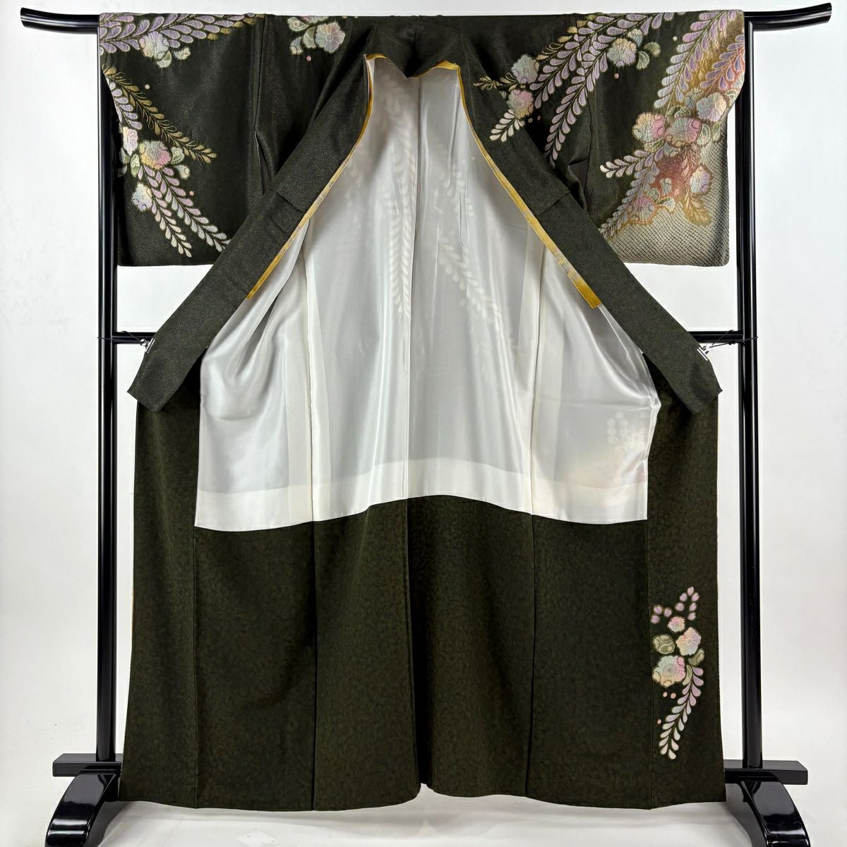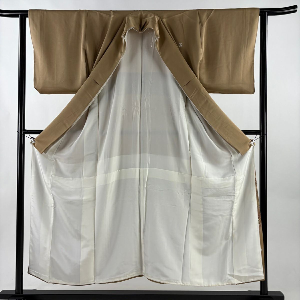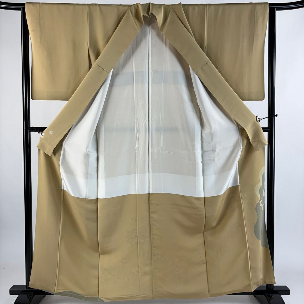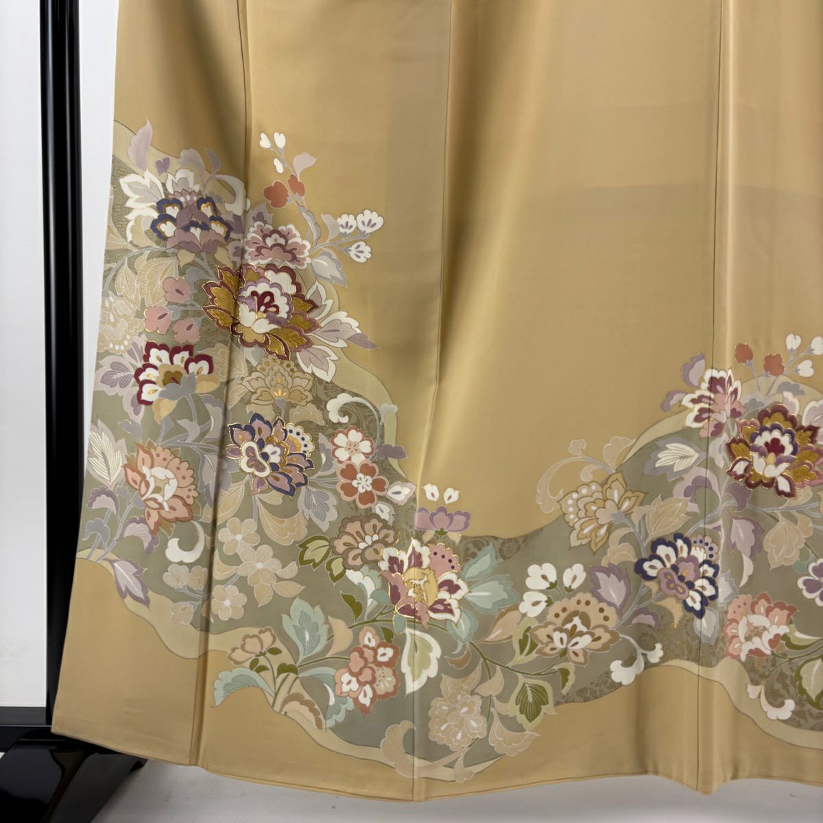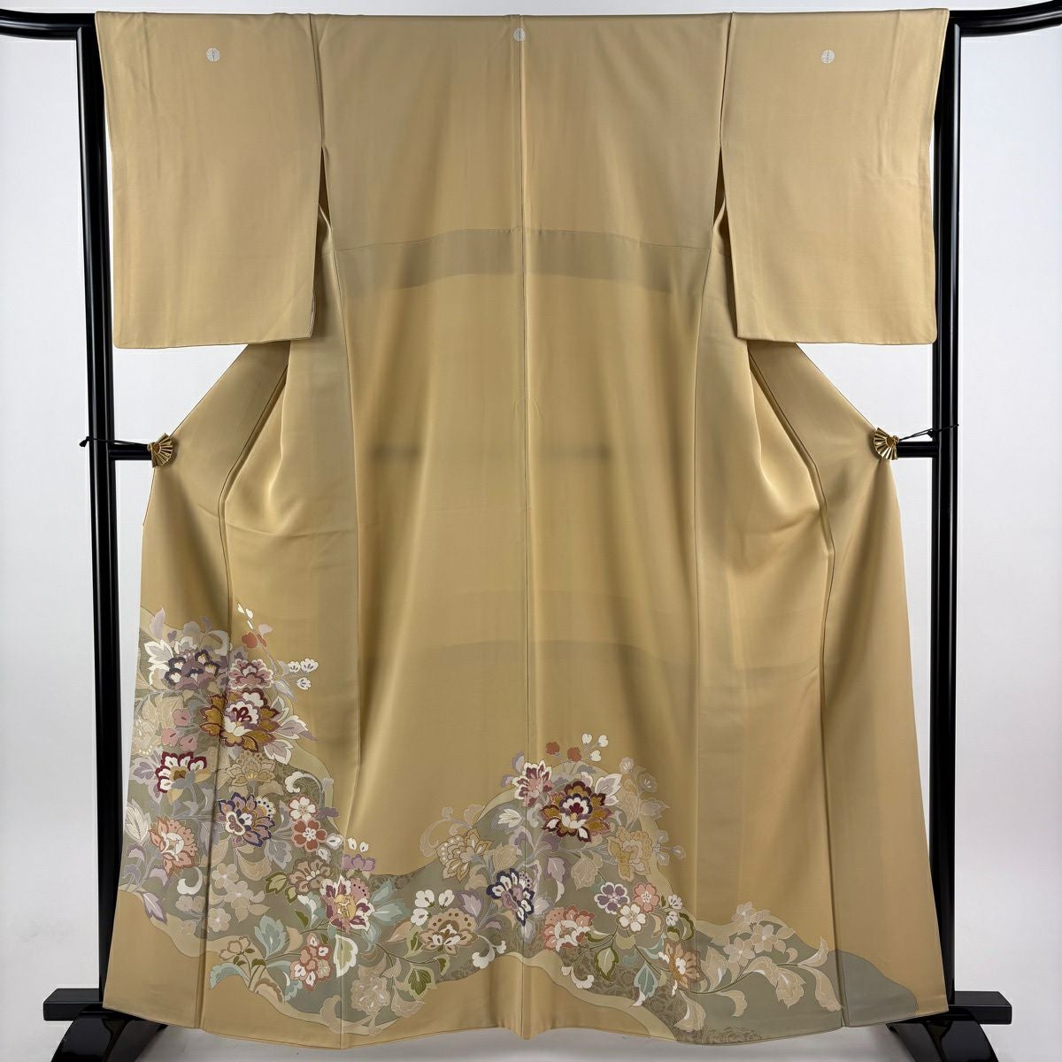色留袖 身丈159cm 裄丈63cm S 袷 千總 落款あり 草花 刺繍 金糸 薄黄土色 正絹 逸品 三つ紋