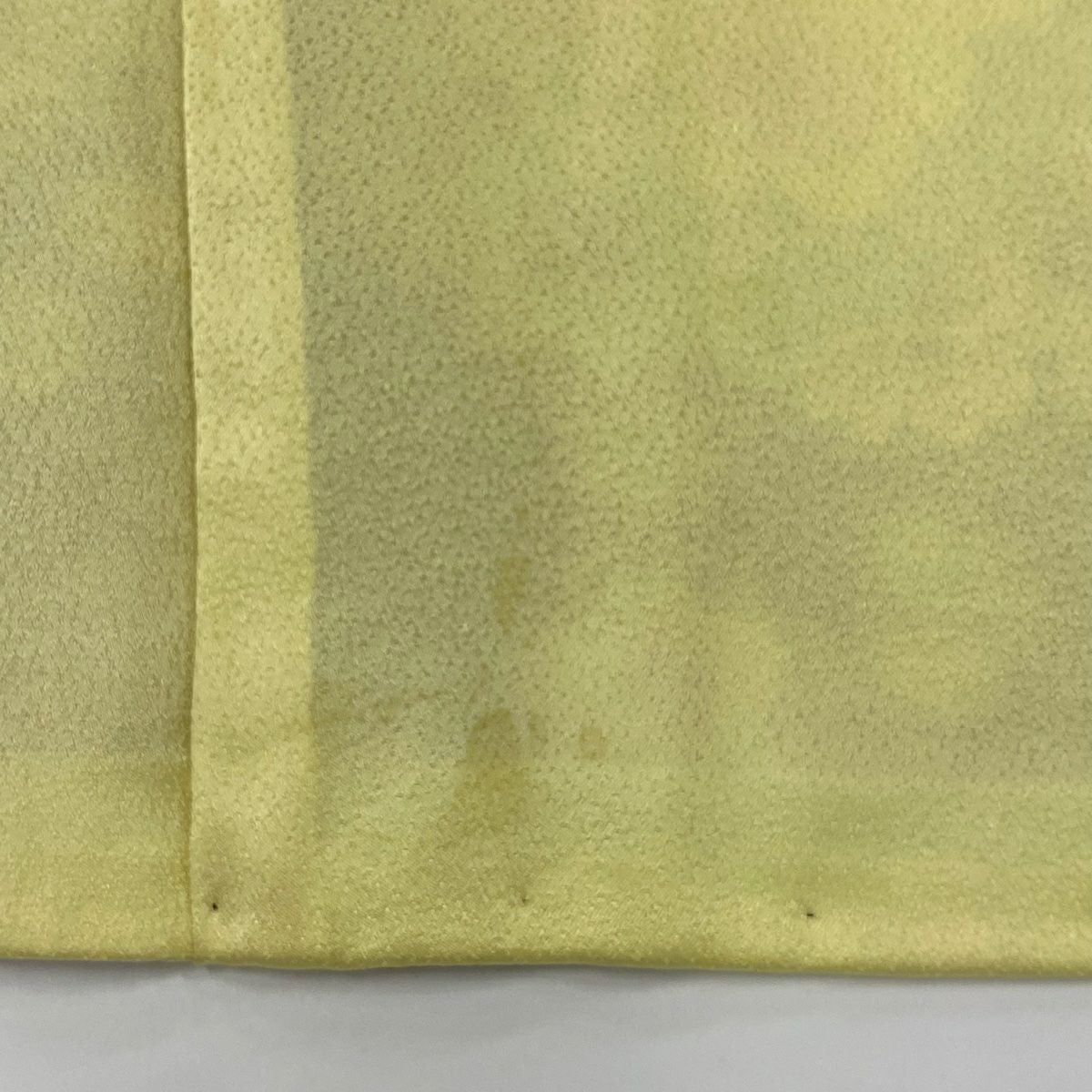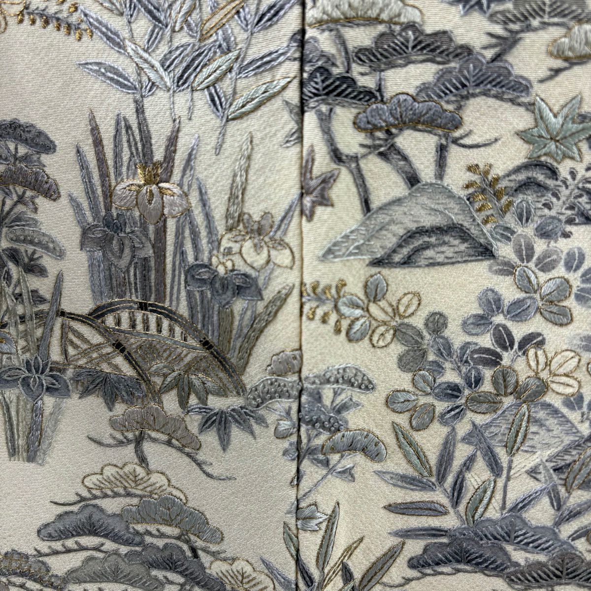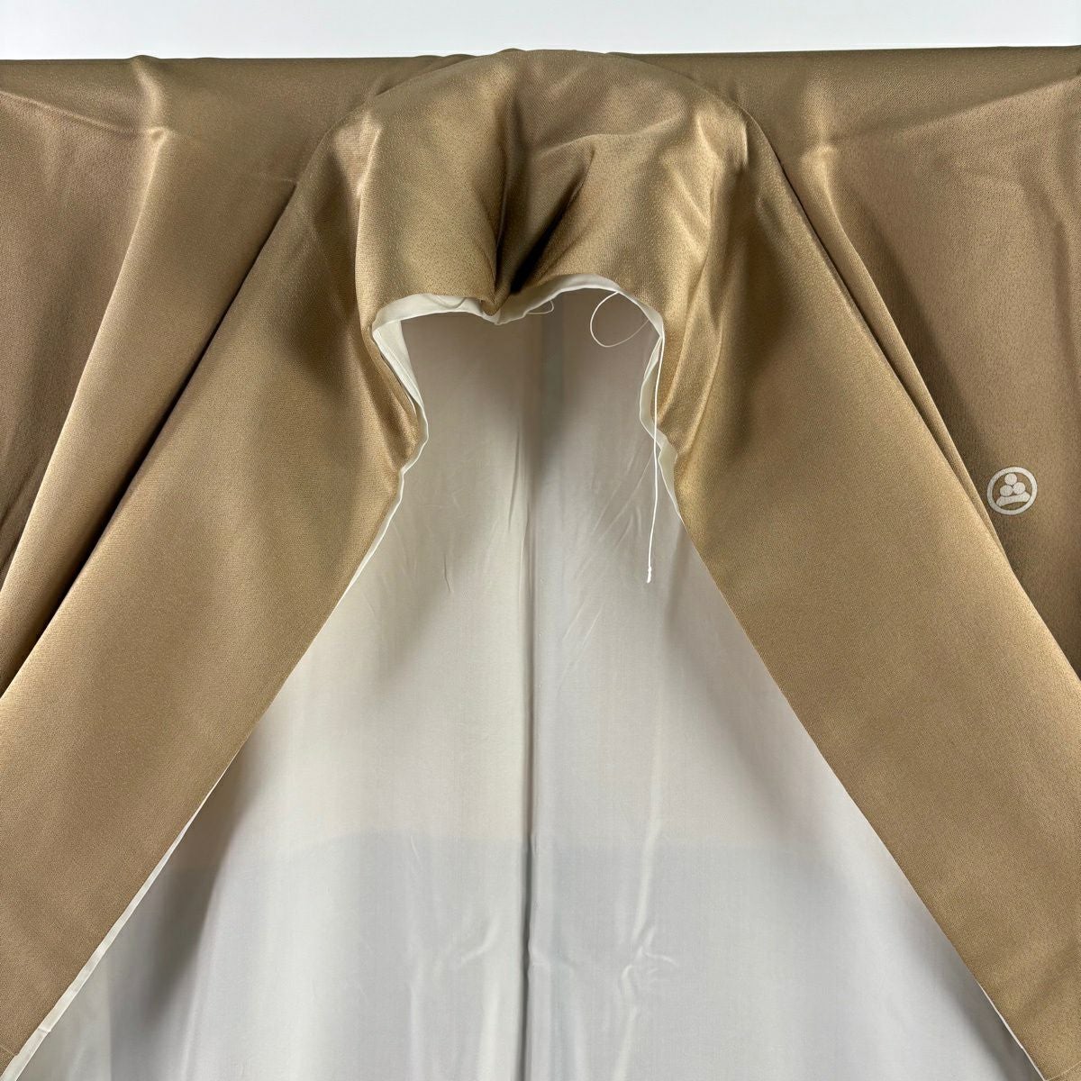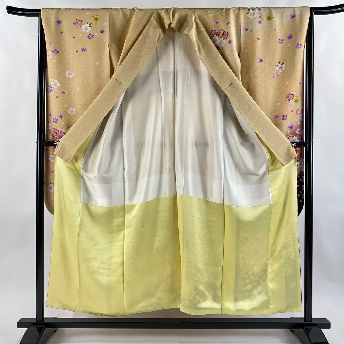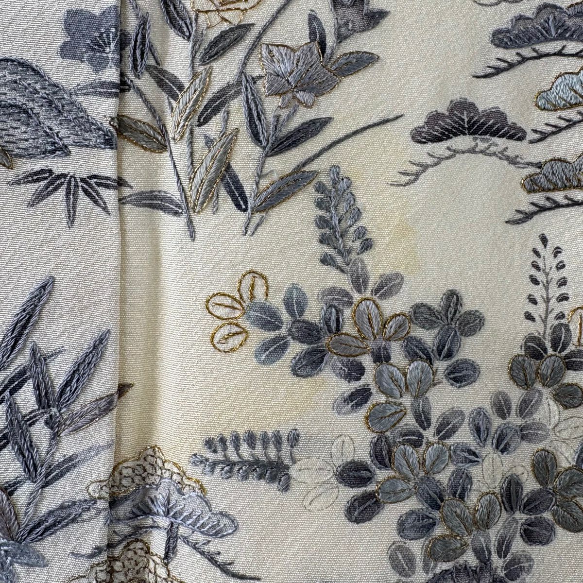色留袖 身丈159cm 裄丈63cm S 袷 千總 落款あり 草花 刺繍 金糸 薄黄土色 正絹 逸品 三つ紋