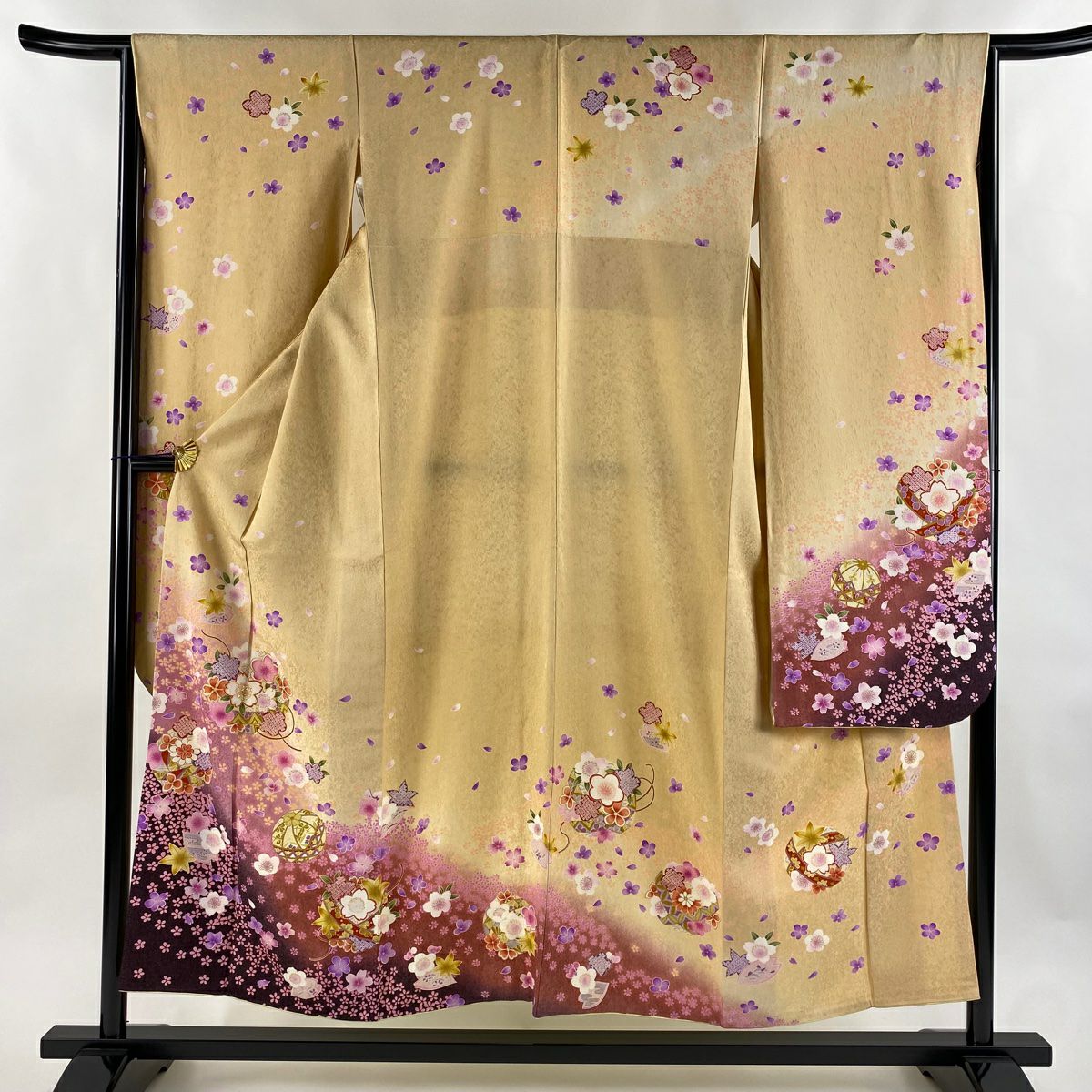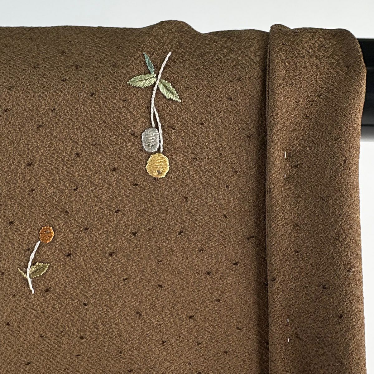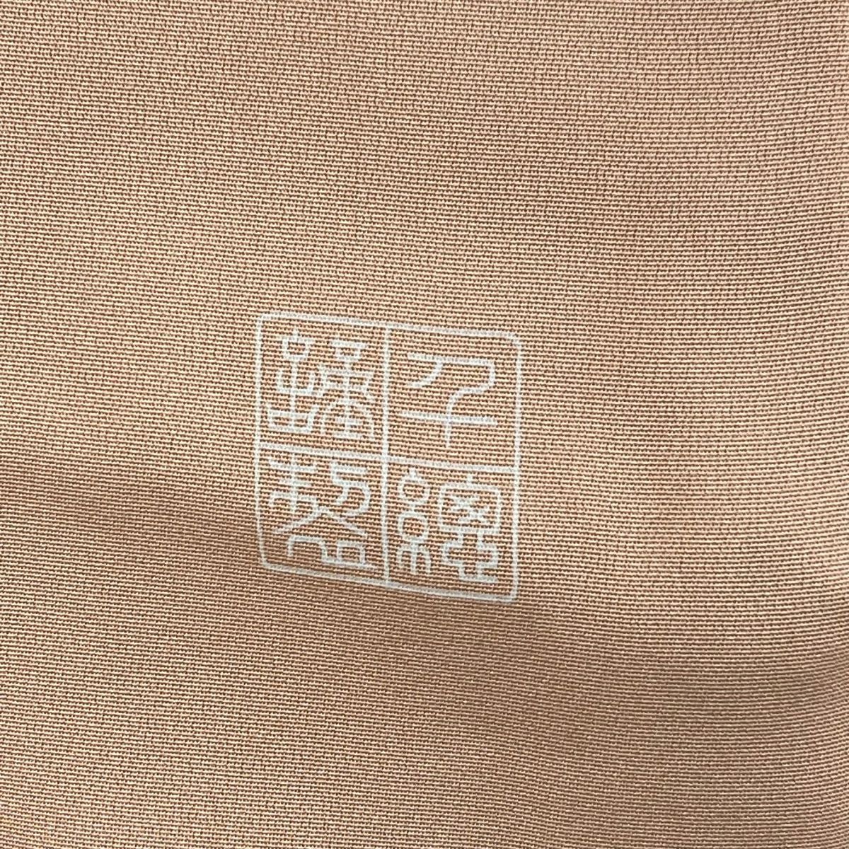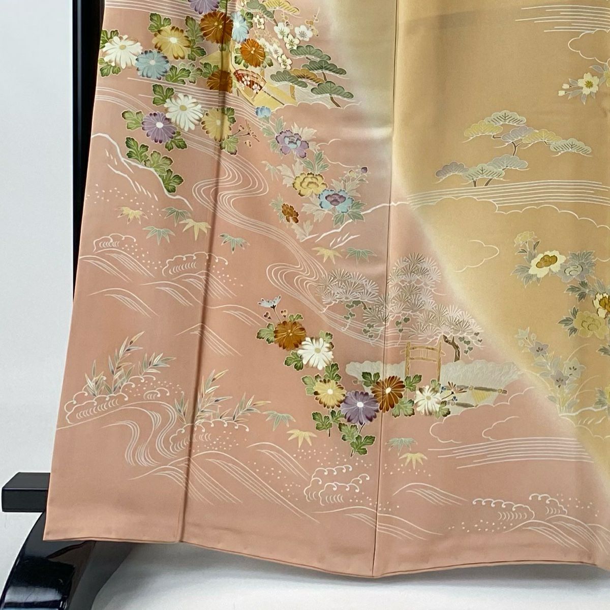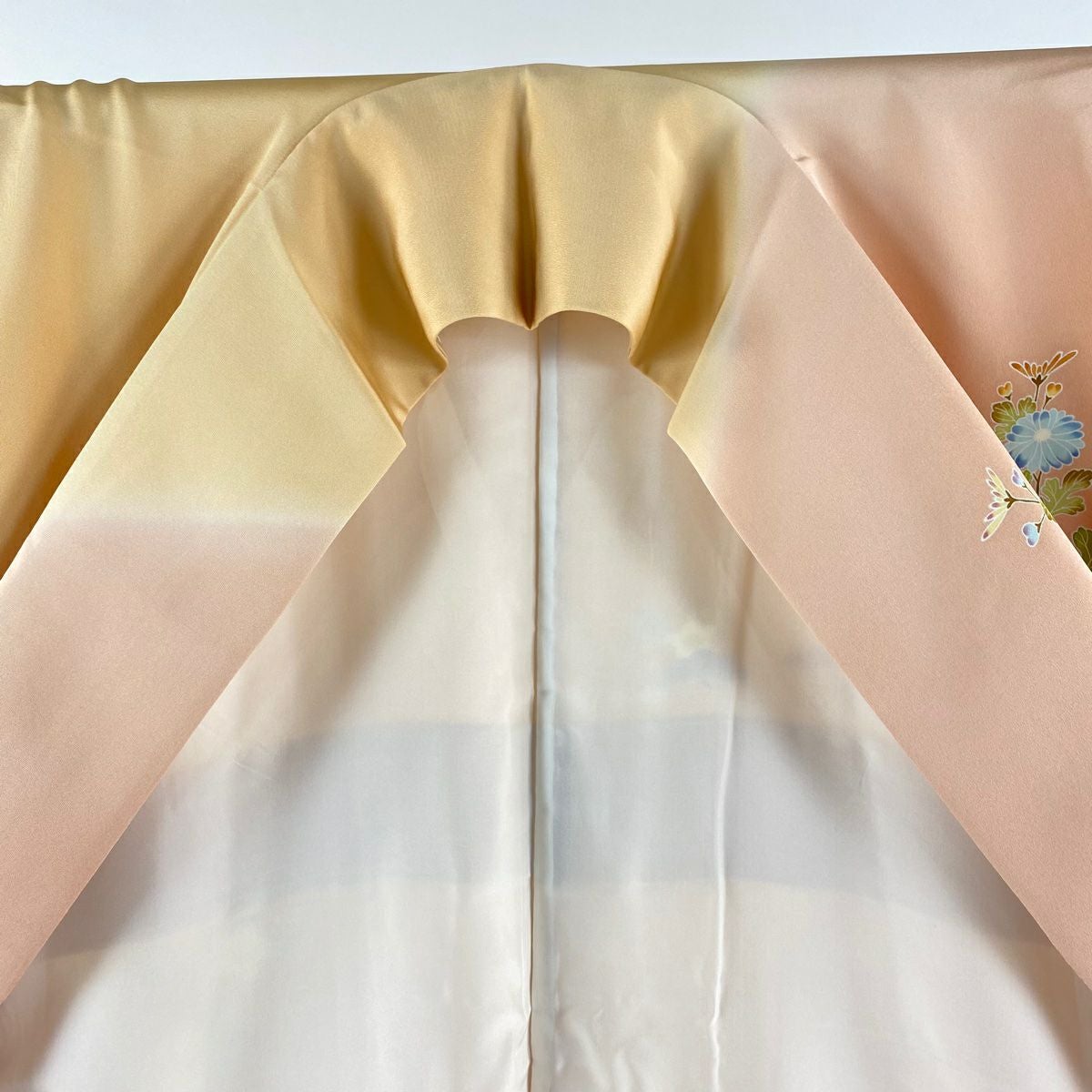 色留袖 身丈159cm 裄丈63cm S 袷 千總 落款あり 草花 刺繍 金糸 薄黄土色 正絹 逸品 三つ紋