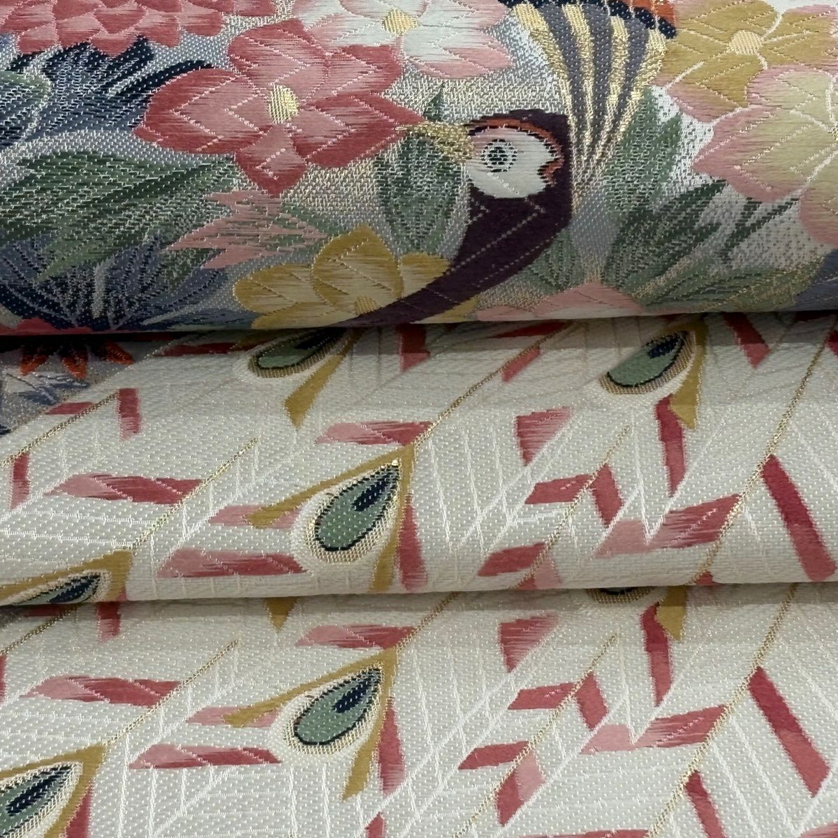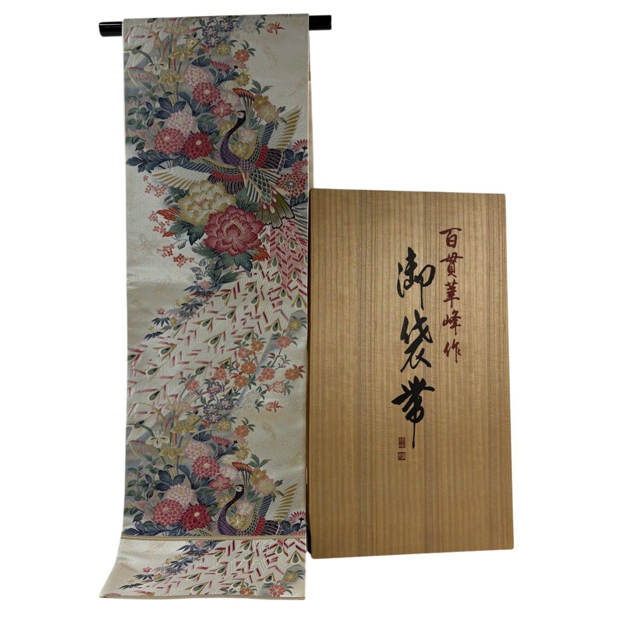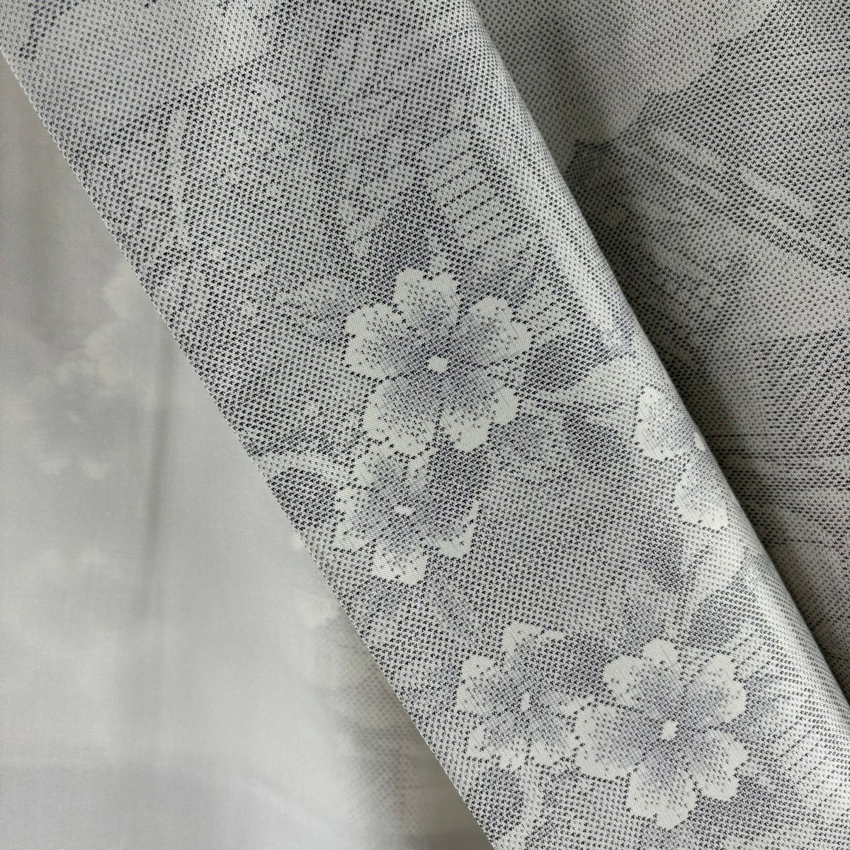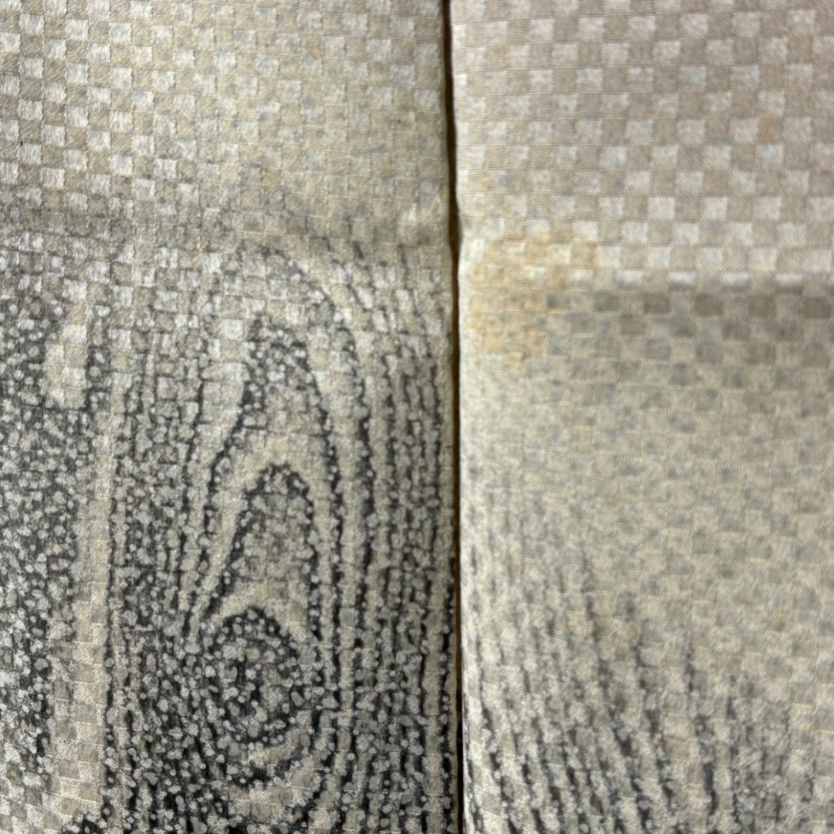 大島紬 身丈154cm 裄丈63.5cm S 袷 桑原啓之介 落款あり 証紙あり 雲文 草花 灰白 正絹 逸品