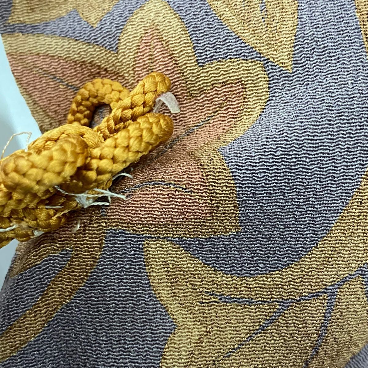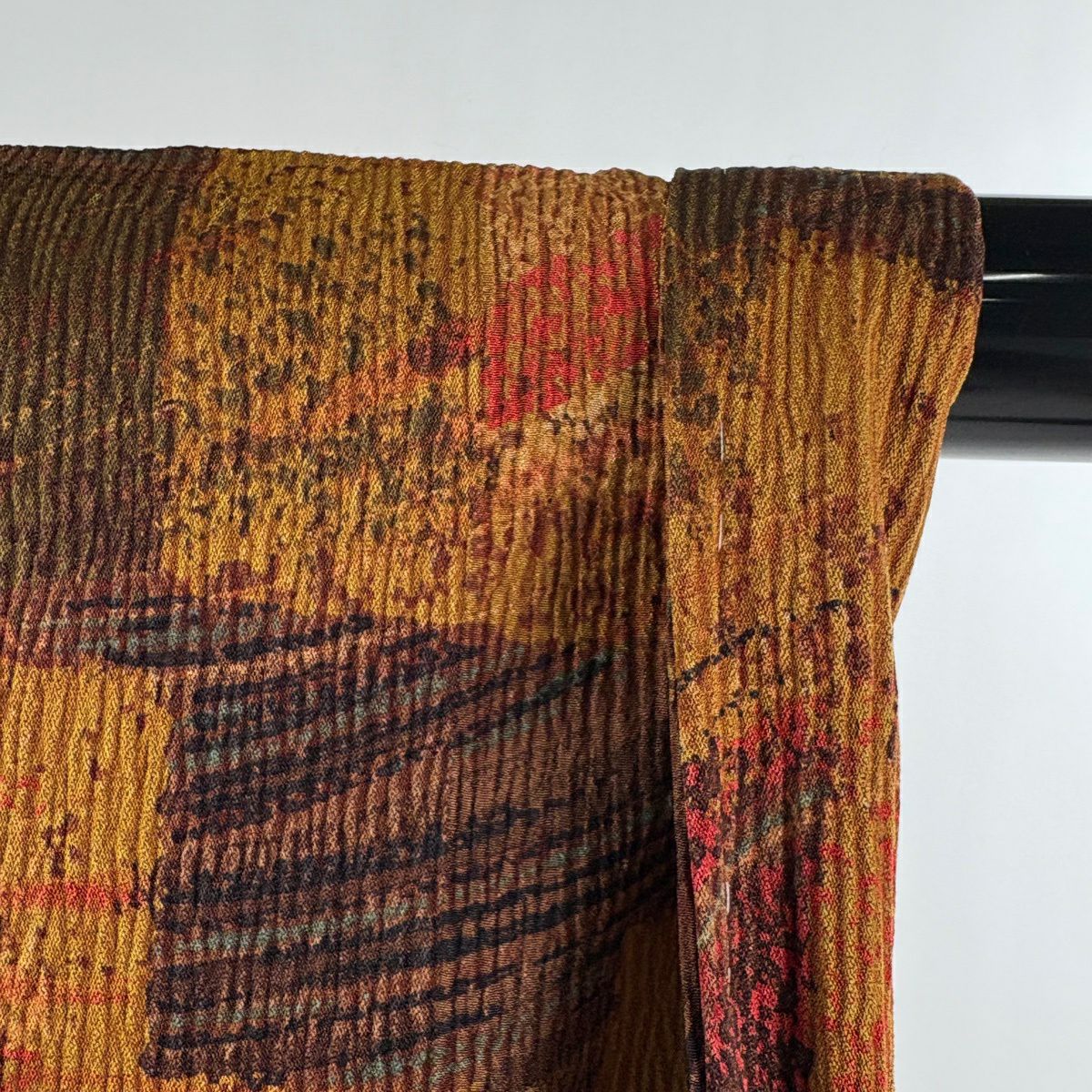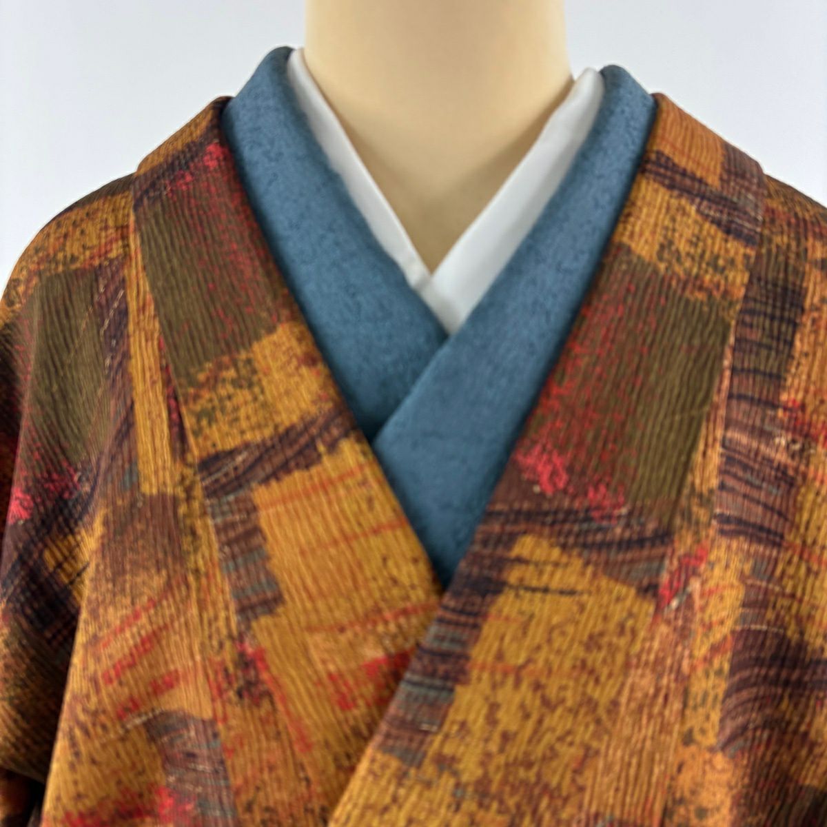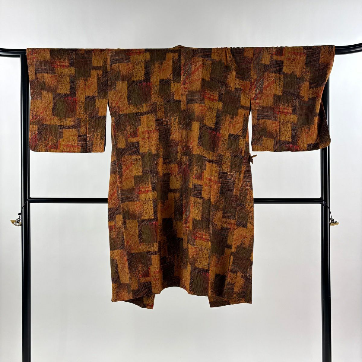 【美品】 道中着 身丈109.5cm 裄丈66.5cm M 和装コート 着物衿 幾何学模様 山吹茶色 正絹 逸品