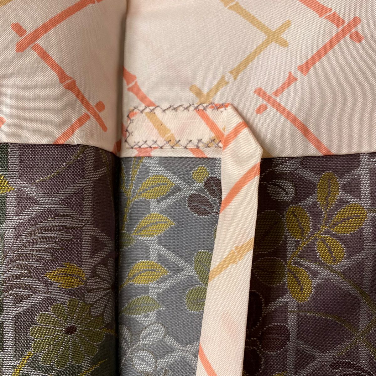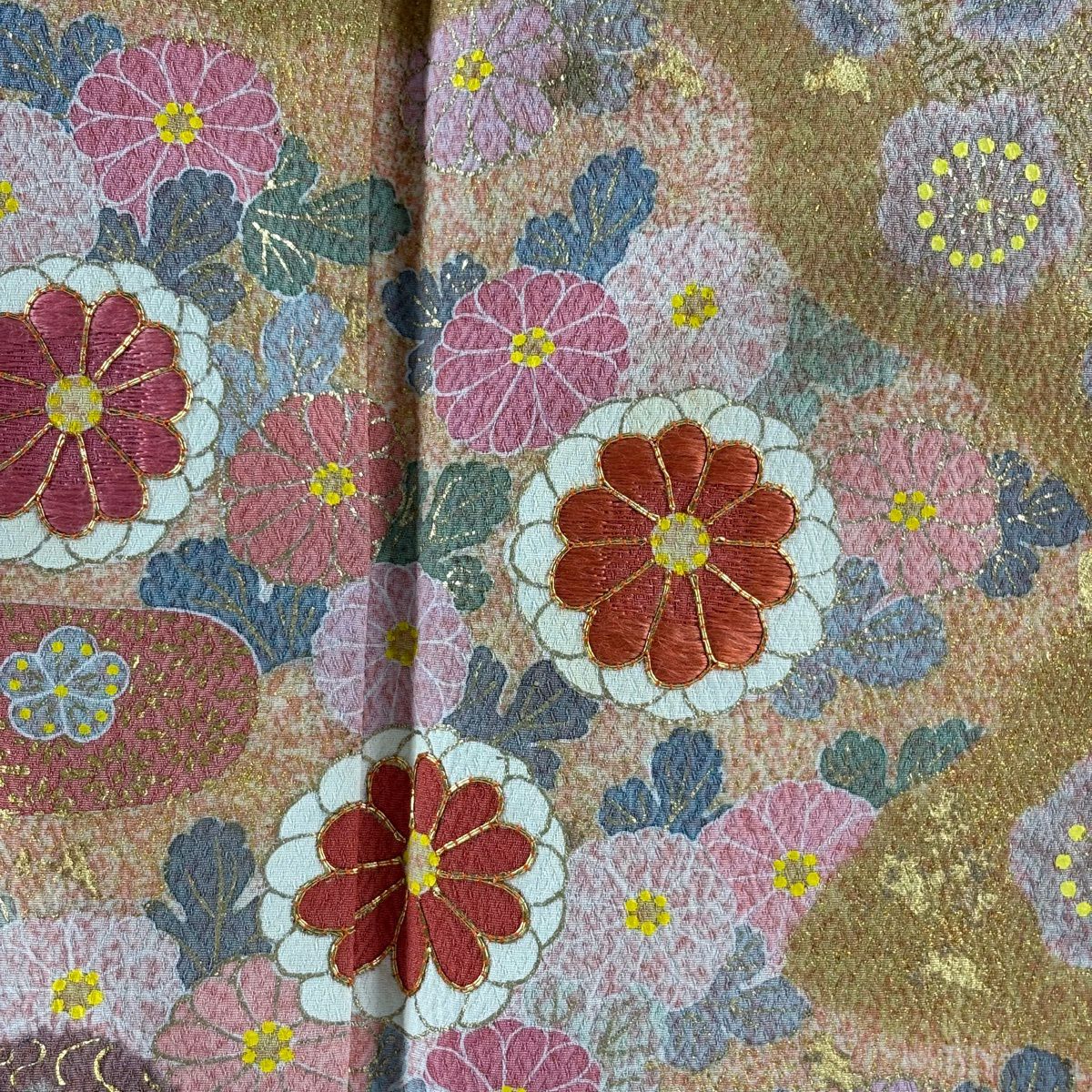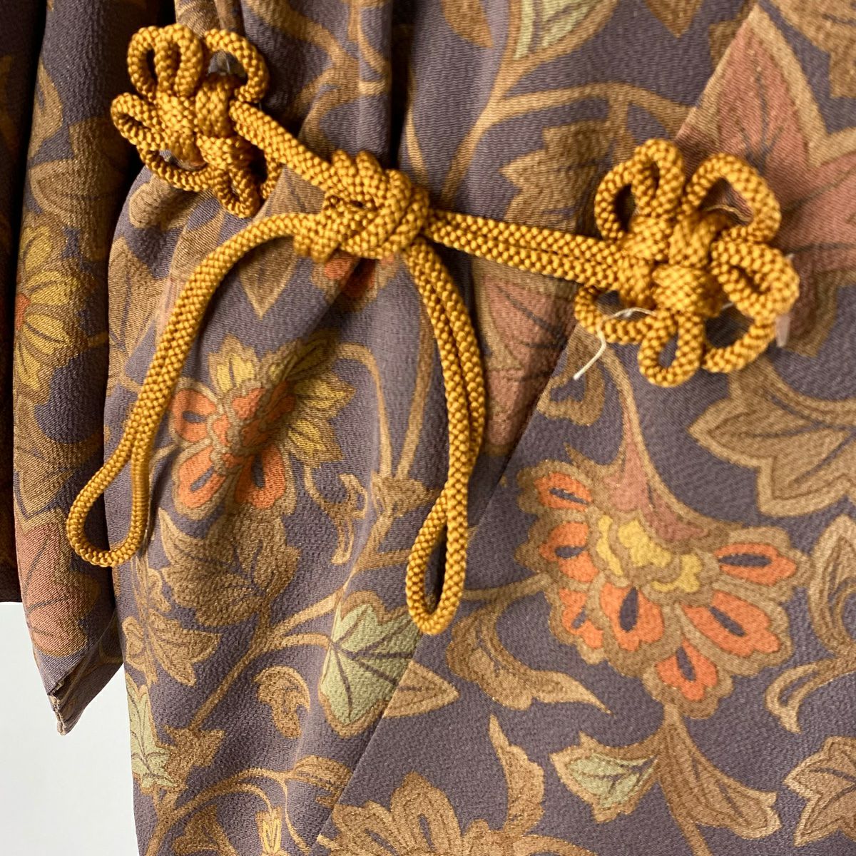 【美品】 道中着 身丈109.5cm 裄丈66.5cm M 和装コート 着物衿 幾何学模様 山吹茶色 正絹 逸品