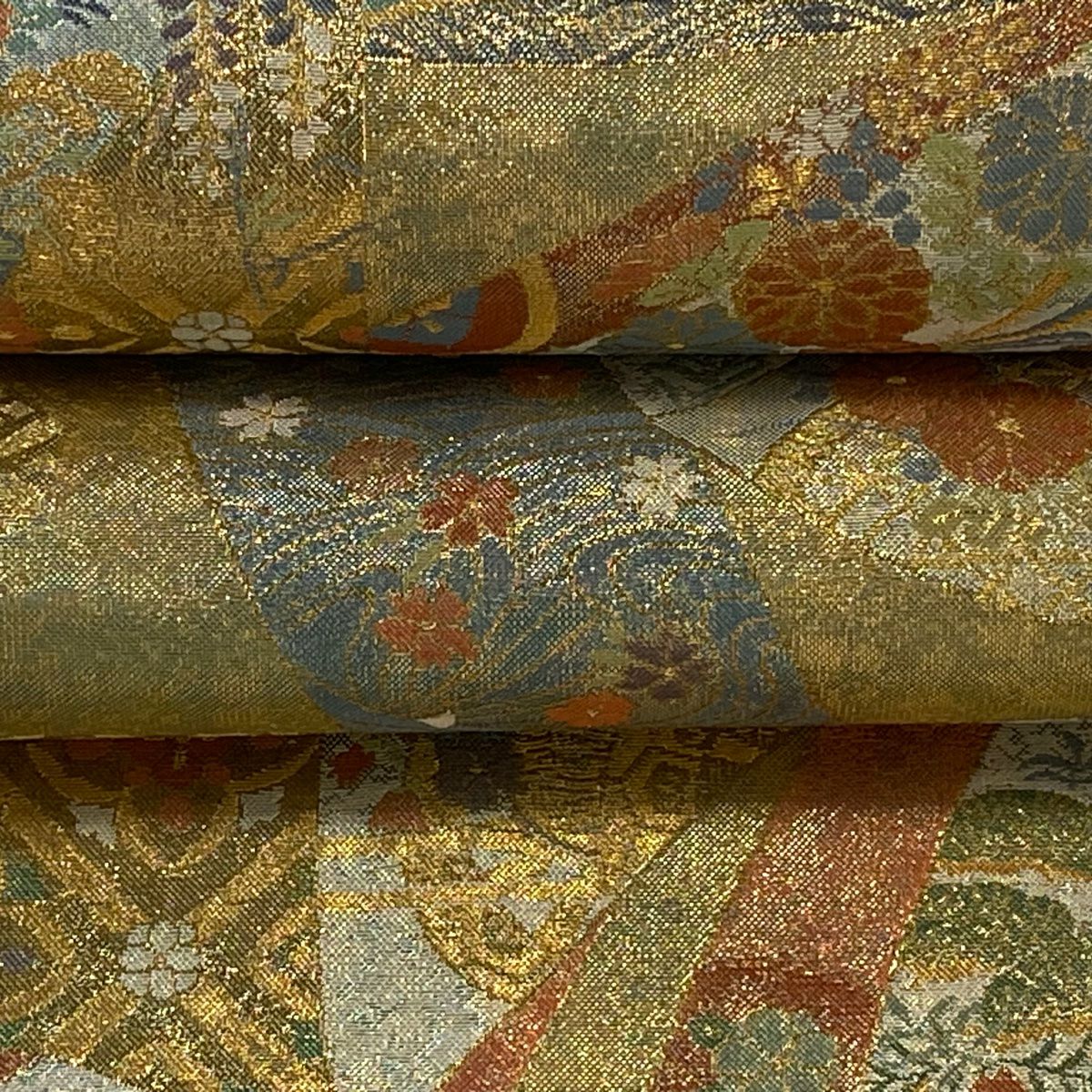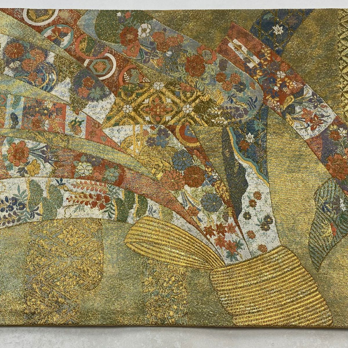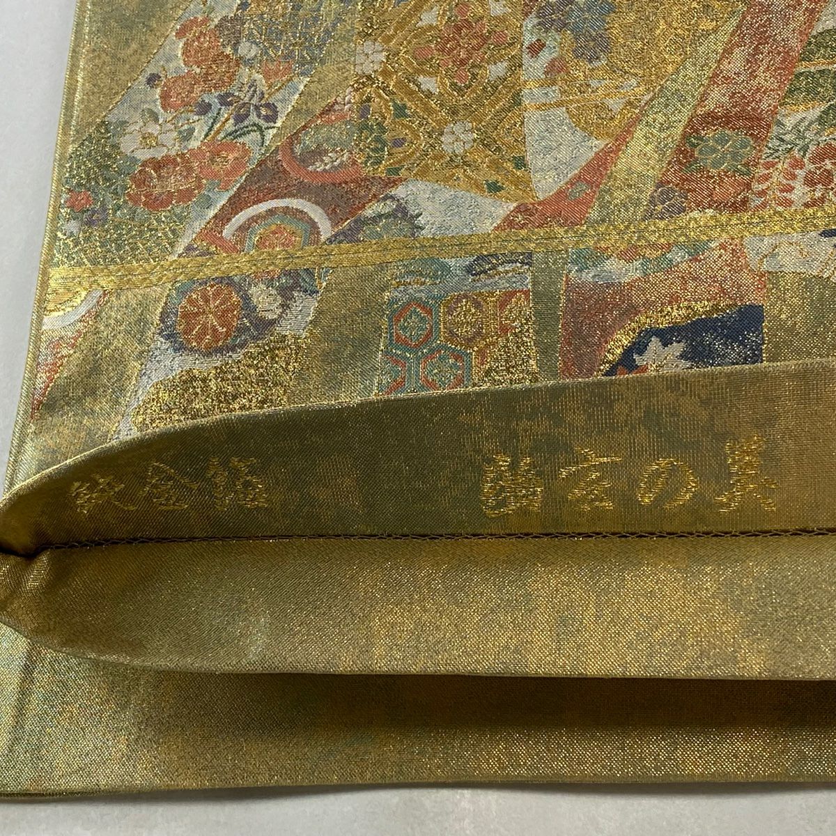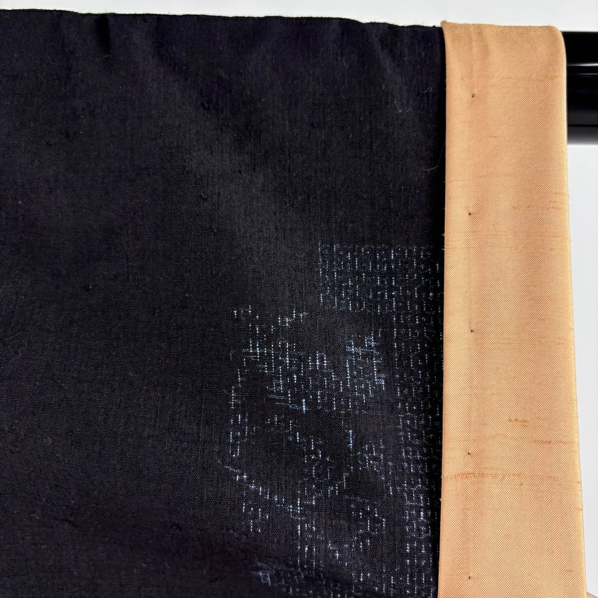 【美品】 道中着 身丈109.5cm 裄丈66.5cm M 和装コート 着物衿 幾何学模様 山吹茶色 正絹 逸品