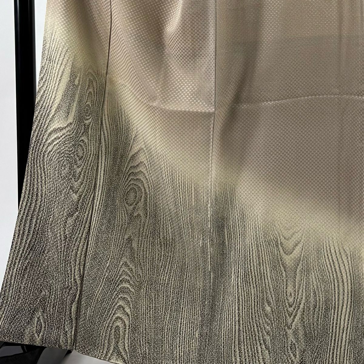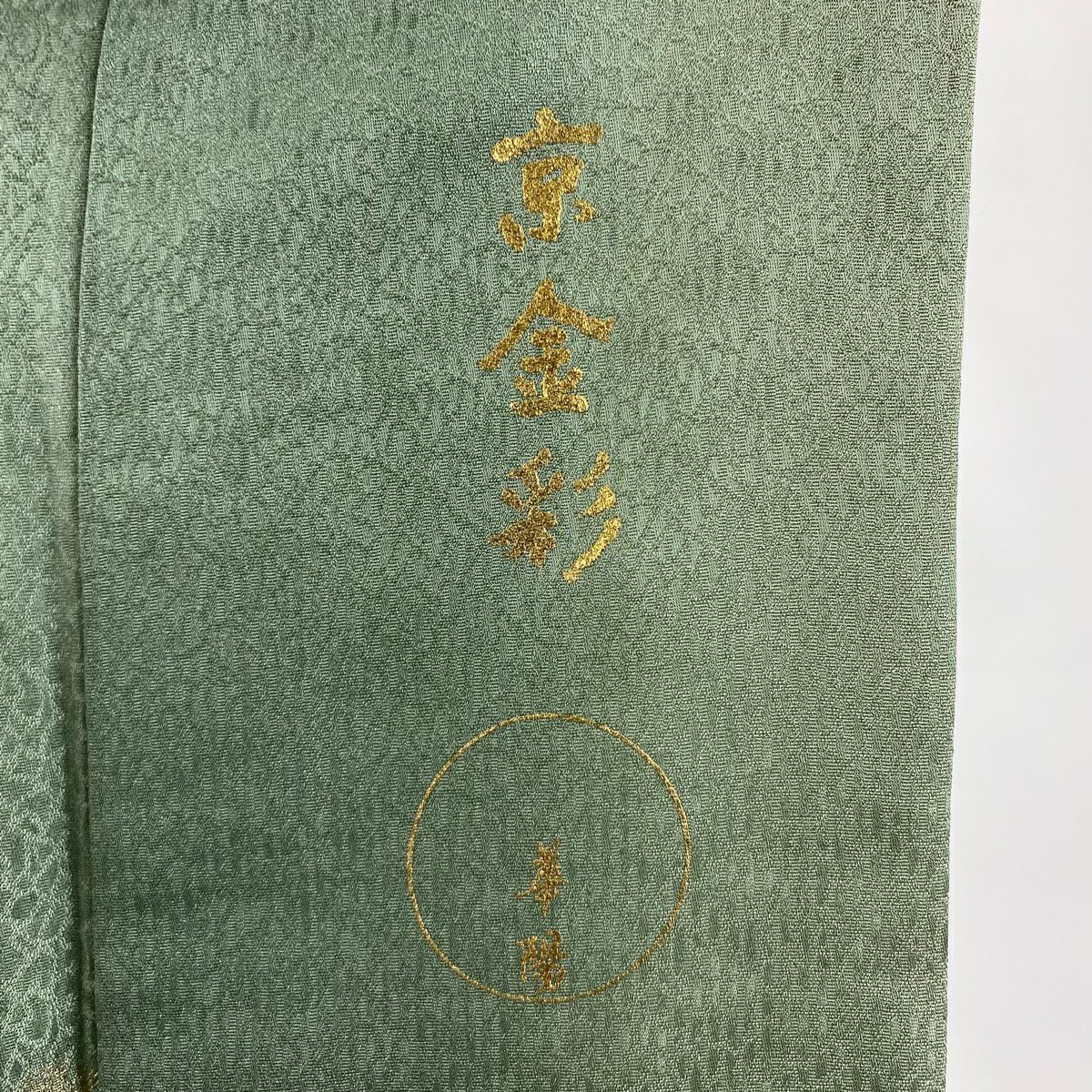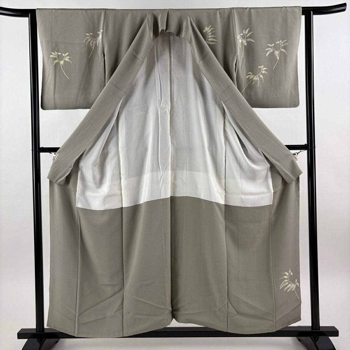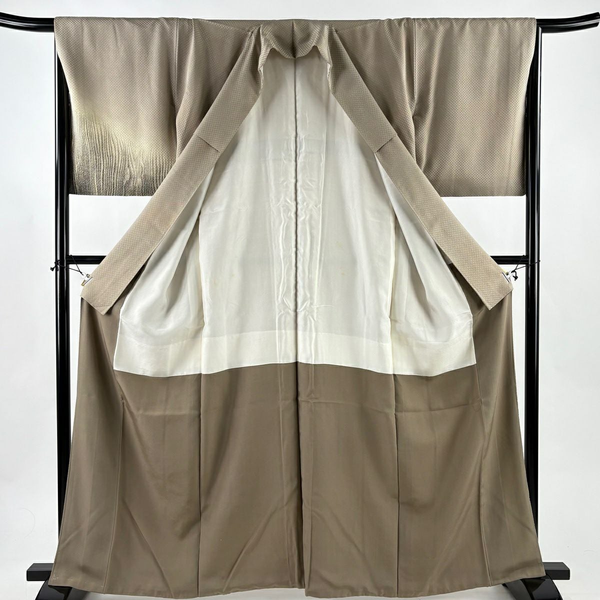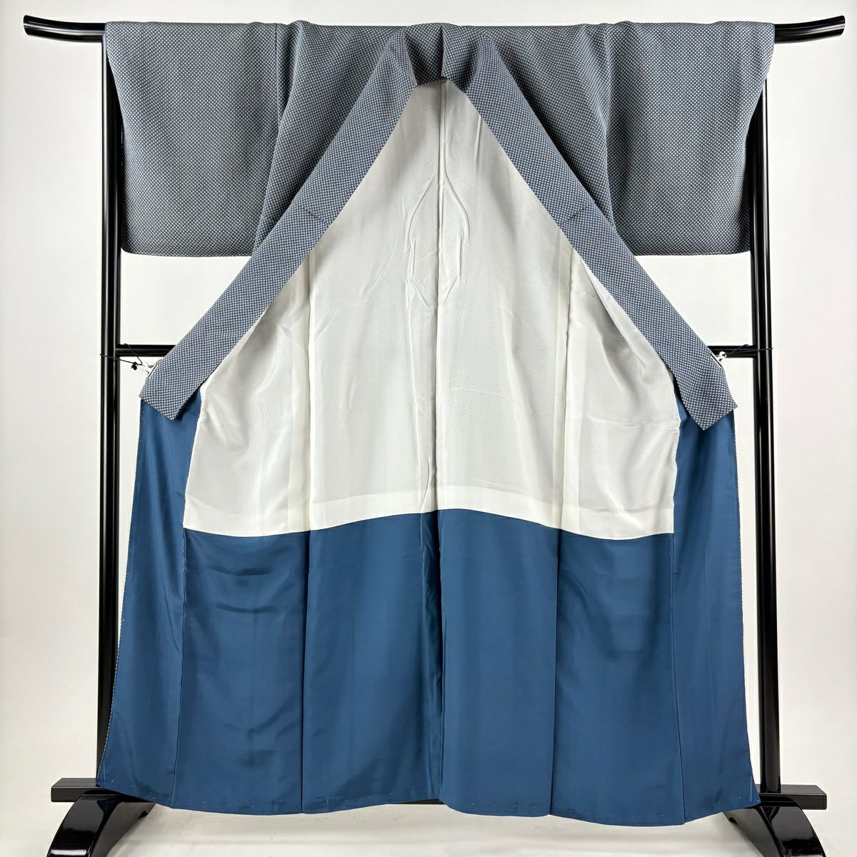 【美品】 訪問着 身丈169.5cm 裄丈69.5cm L 袷 牛首紬地 落款あり 縞 幾何学模様 灰緑 正絹 逸品