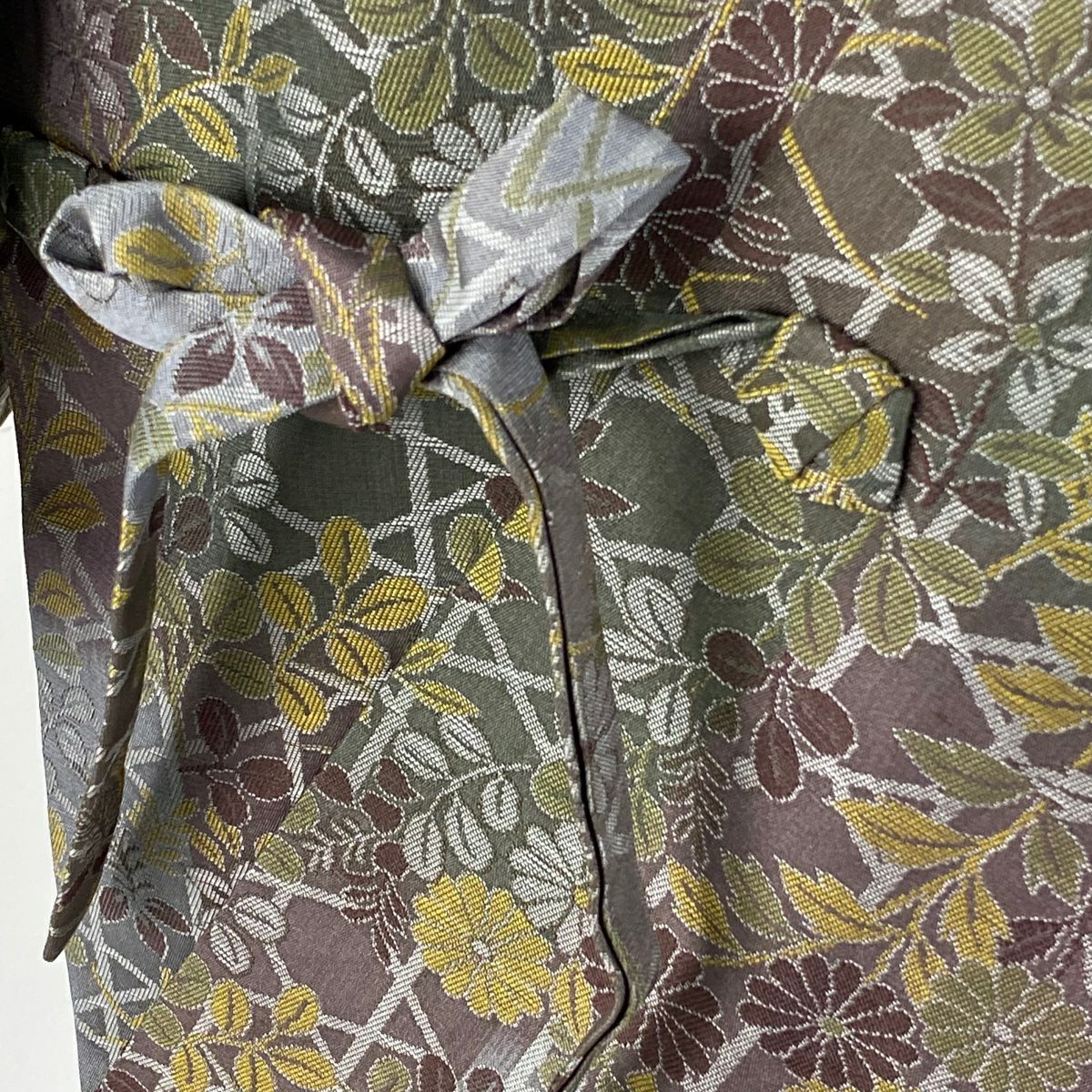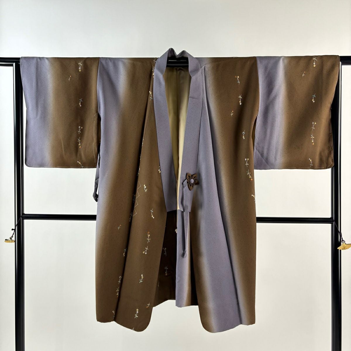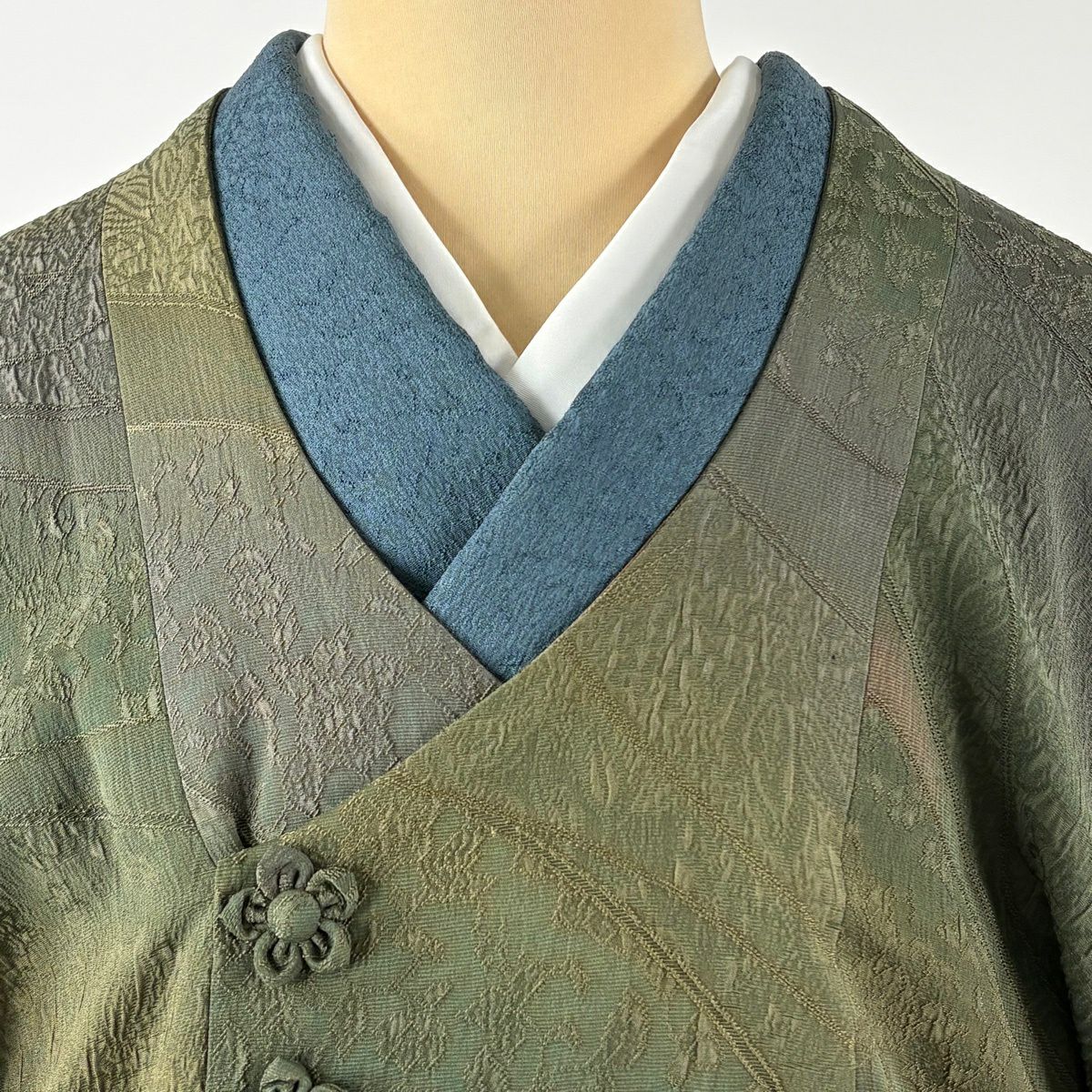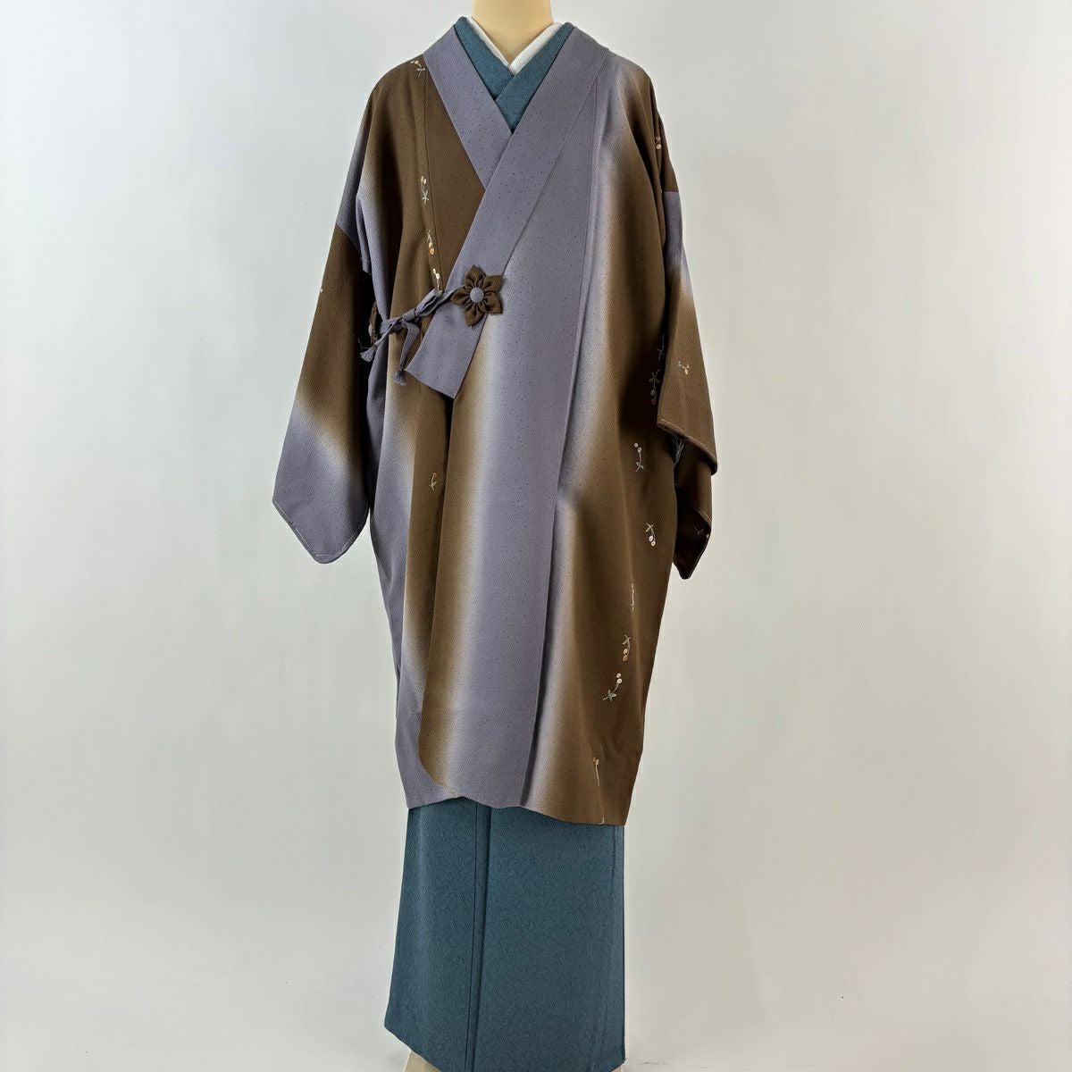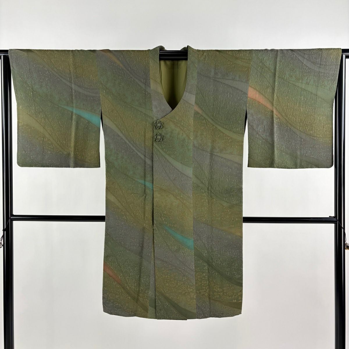【美品】 道行 身丈102.5cm 裄丈66cm M 和装コート 千代田衿 草花 ぼかし 茶緑色 正絹 逸品
