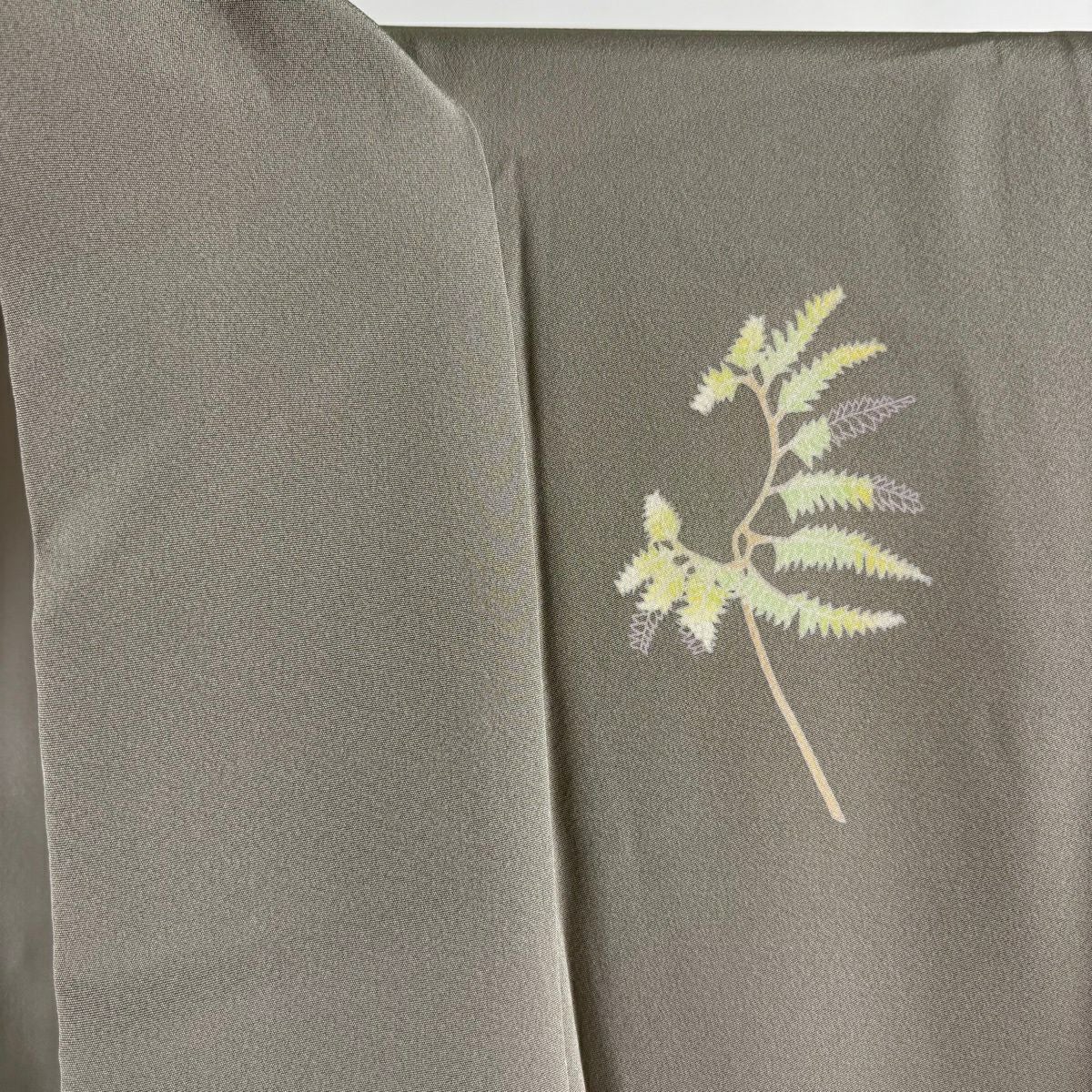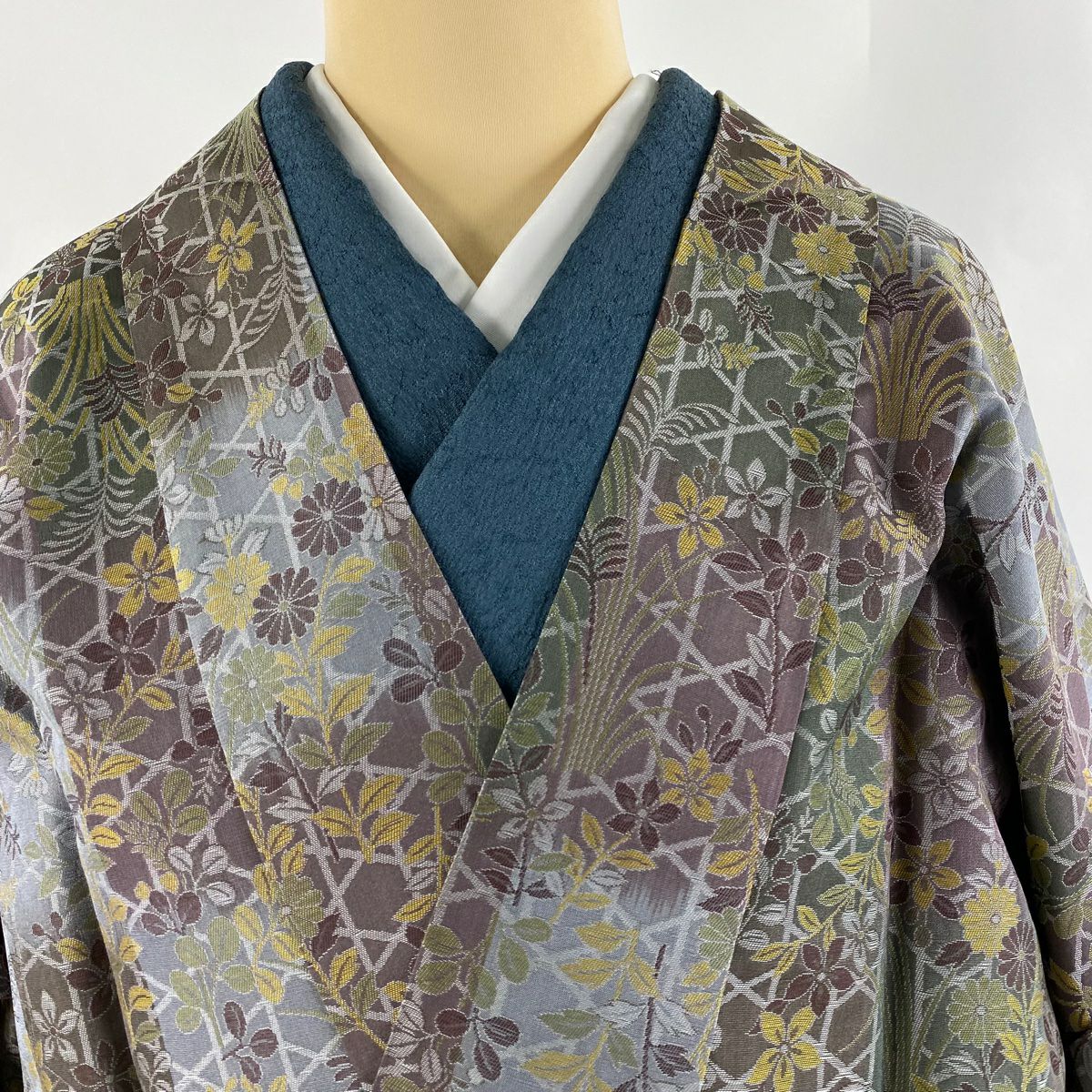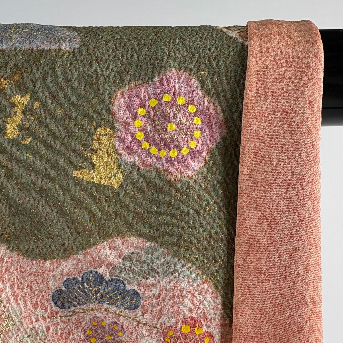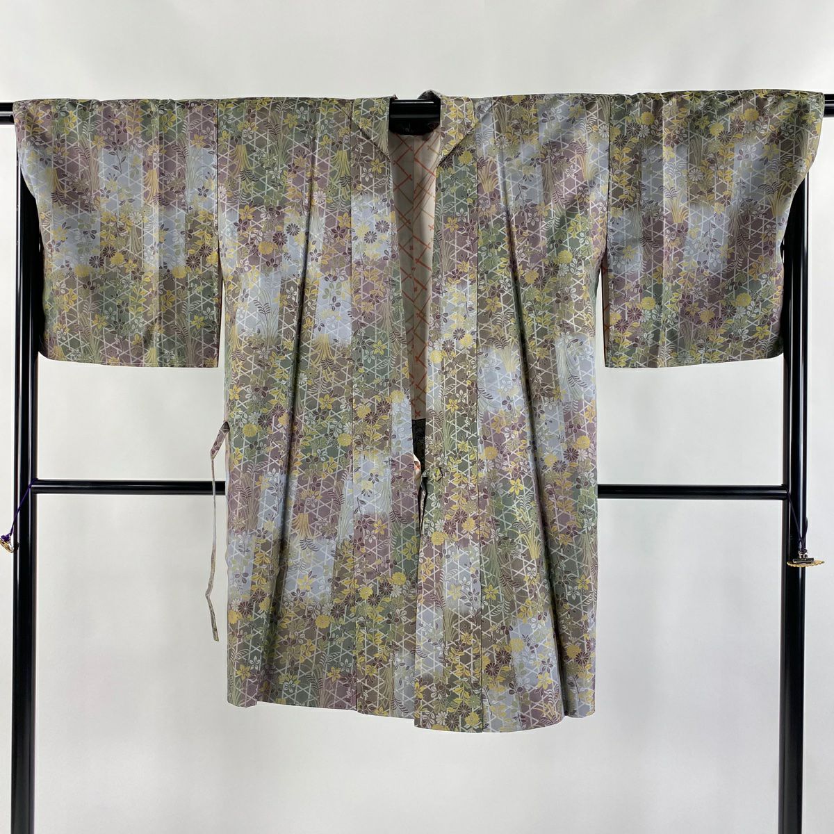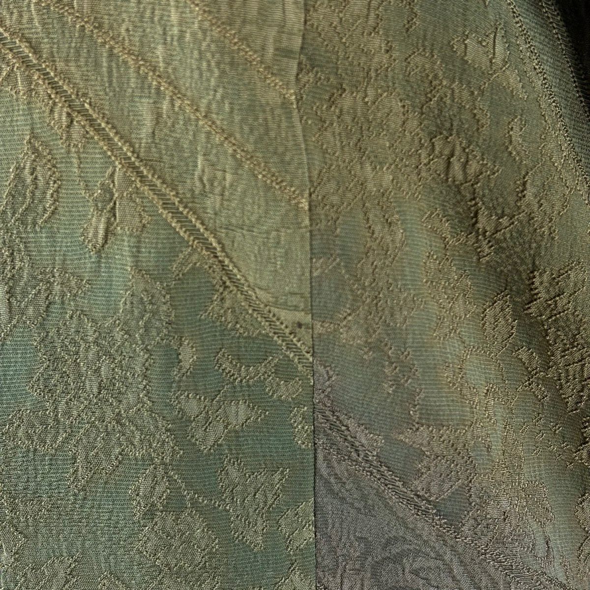 【美品】 道行 身丈102.5cm 裄丈66cm M 和装コート 千代田衿 草花 ぼかし 茶緑色 正絹 逸品