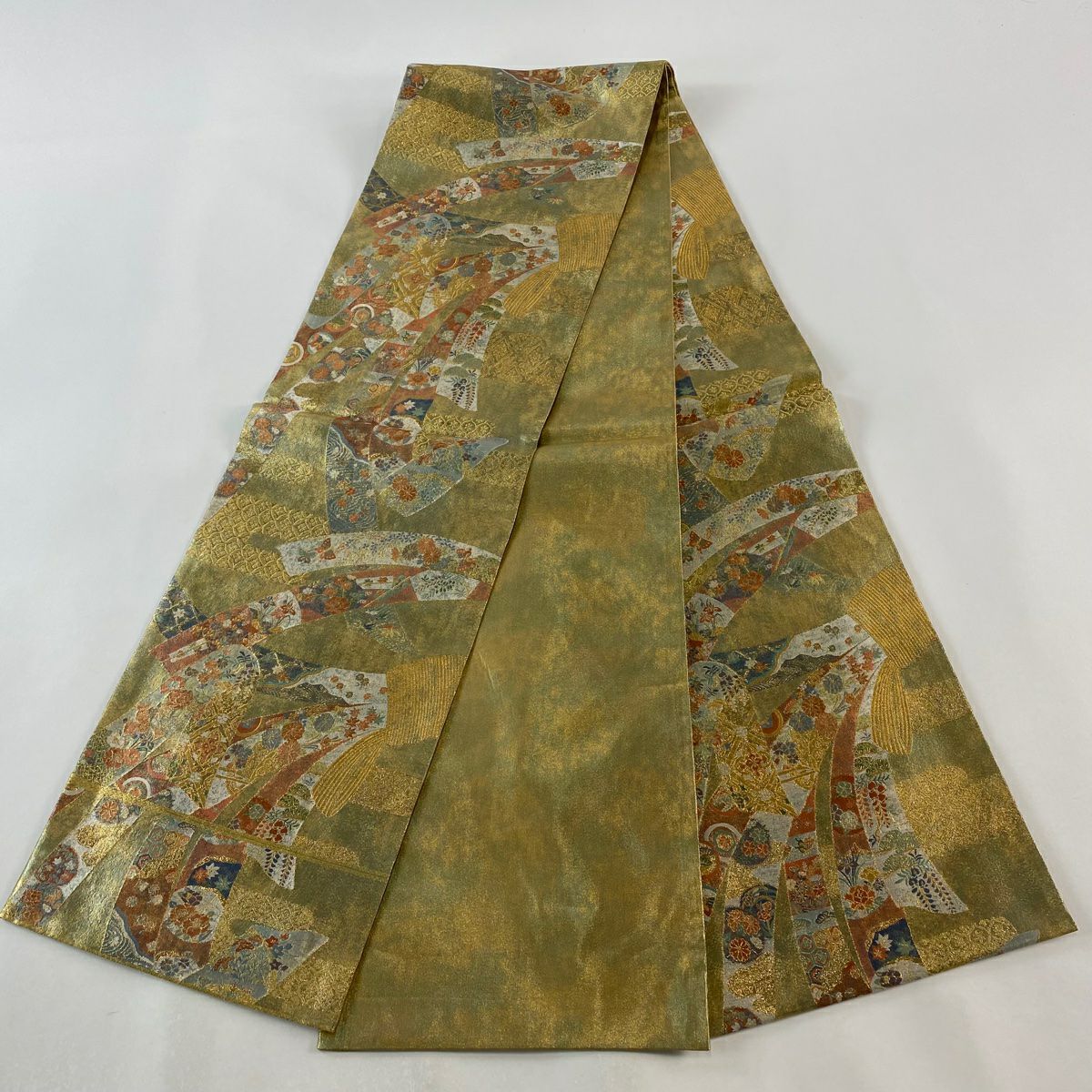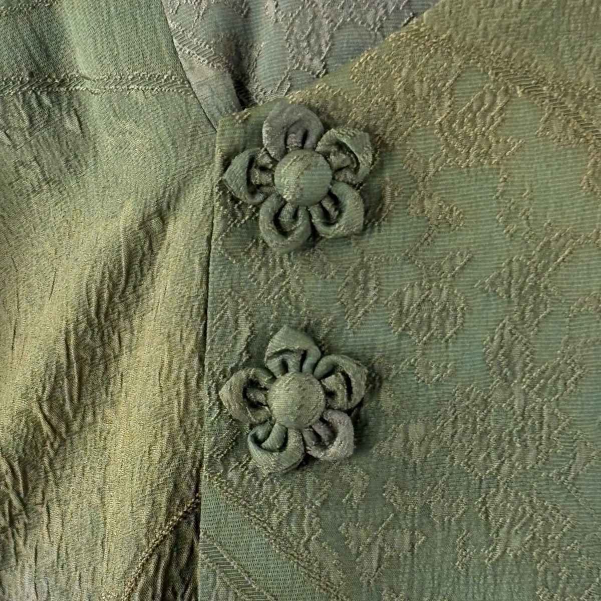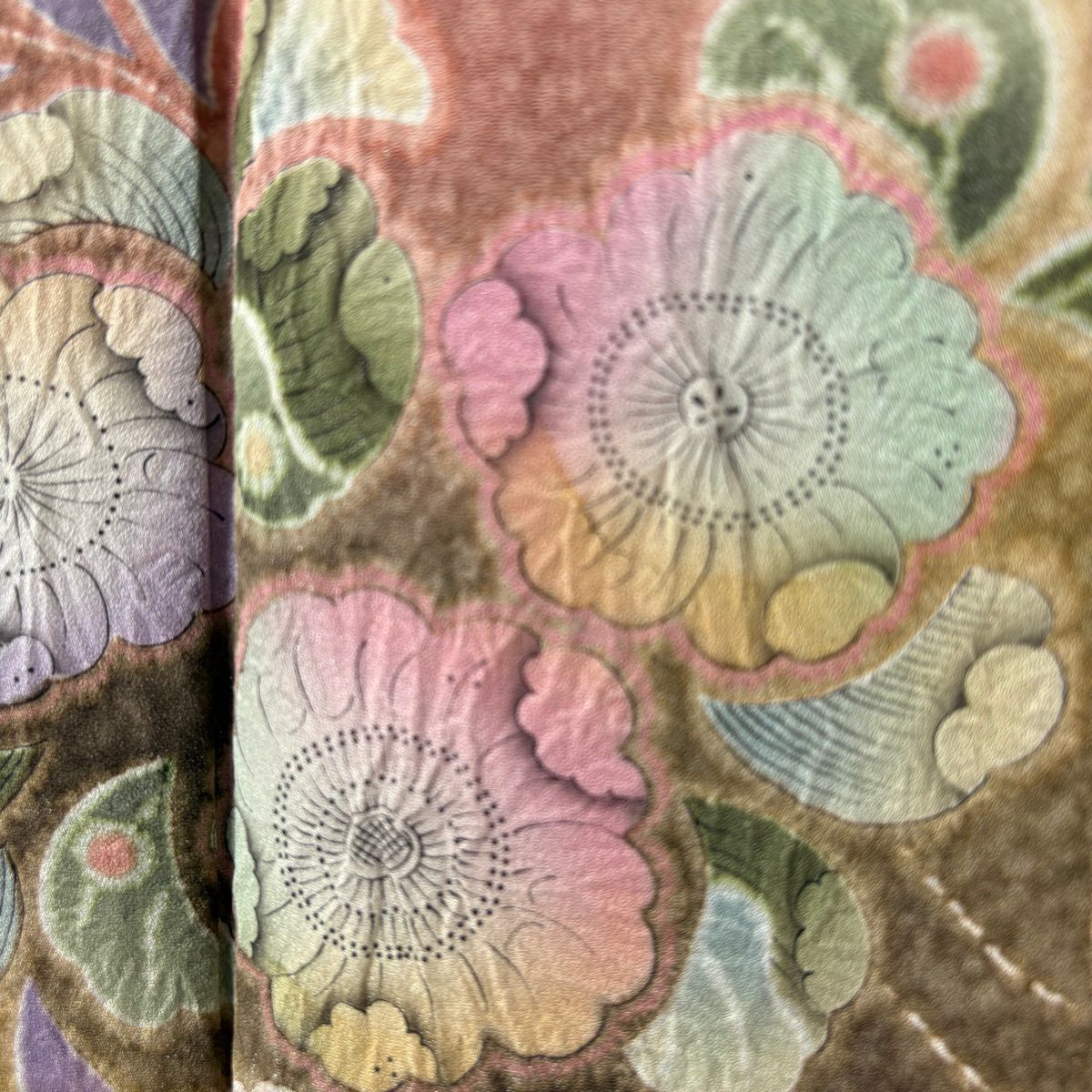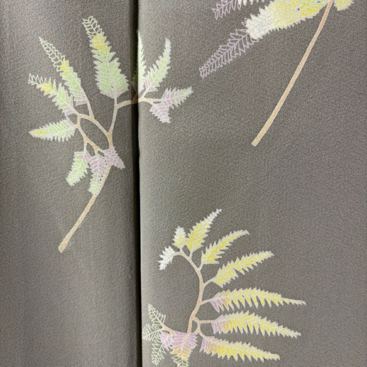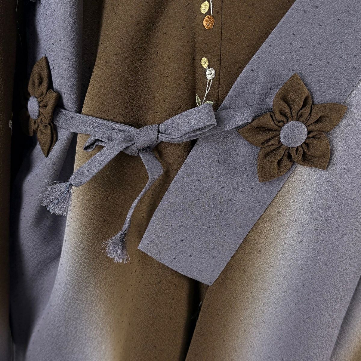 【美品】 道行 身丈102.5cm 裄丈66cm M 和装コート 千代田衿 草花 ぼかし 茶緑色 正絹 逸品