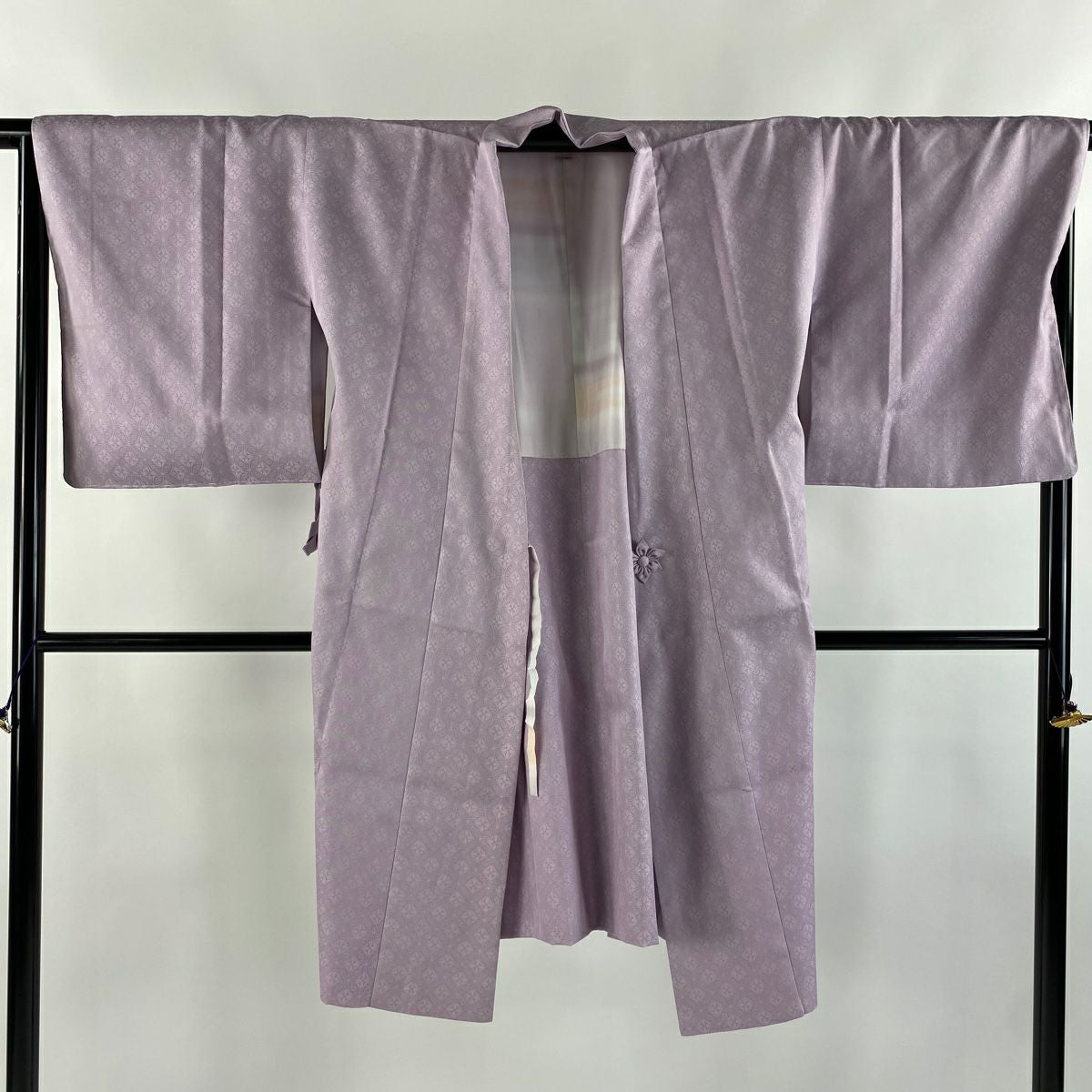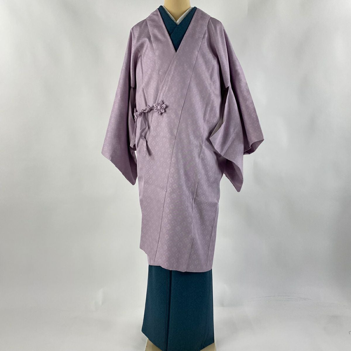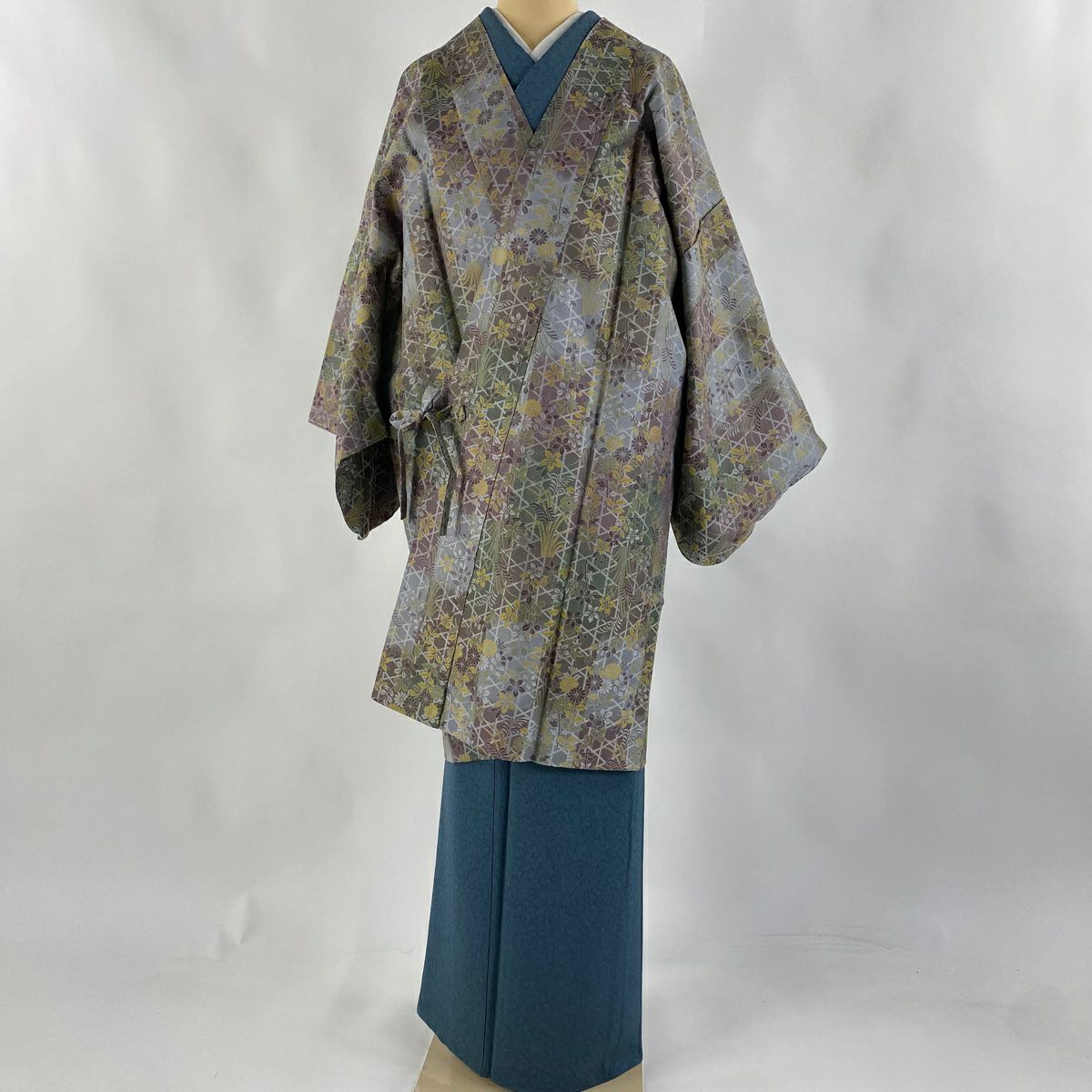 【美品】 道中着 身丈106.5cm 裄丈65.5cm M 和装コート 花 幾何学模様 ぼかし 青紫 正絹 逸品