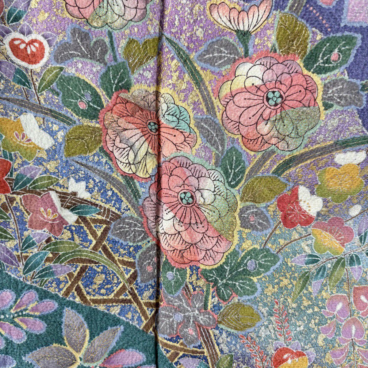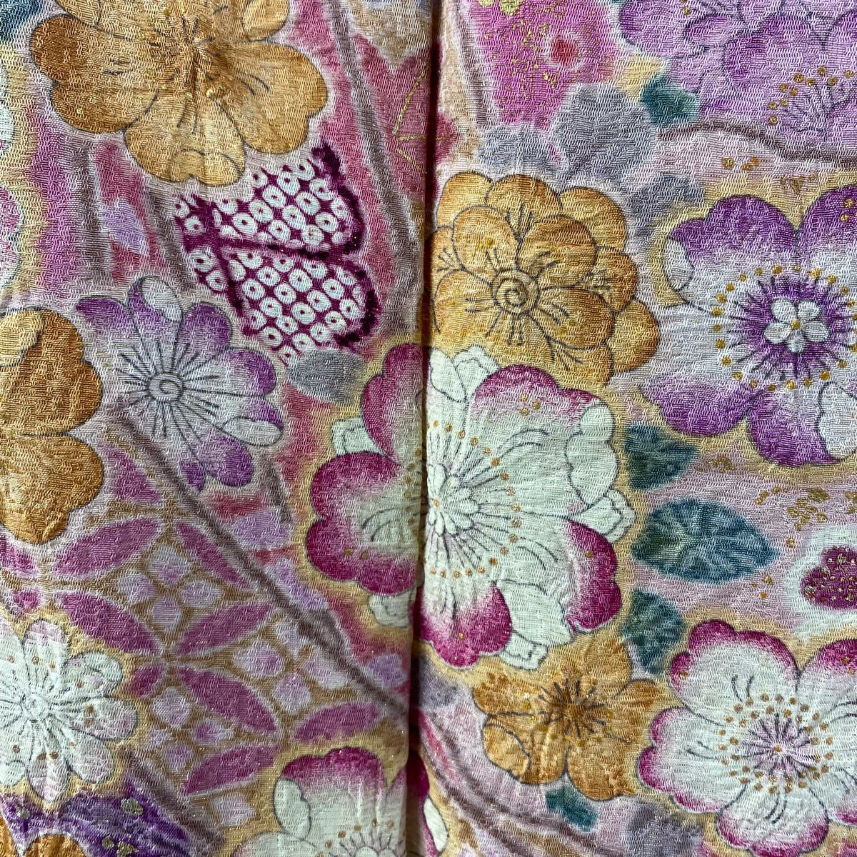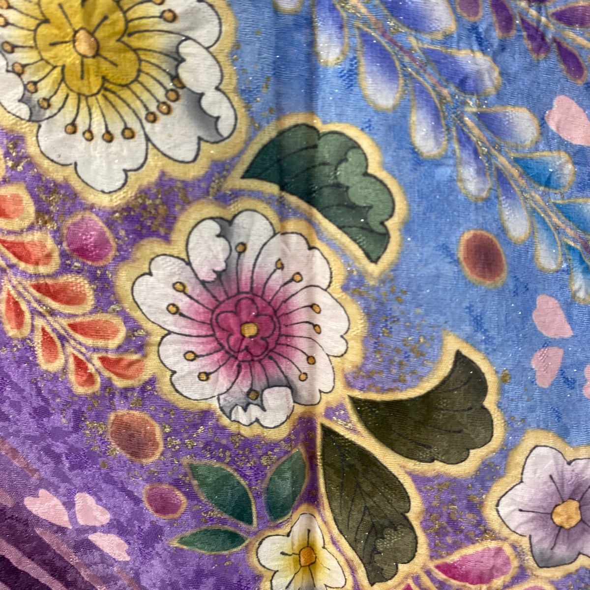 【美品】 道中着 身丈106.5cm 裄丈65.5cm M 和装コート 花 幾何学模様 ぼかし 青紫 正絹 逸品