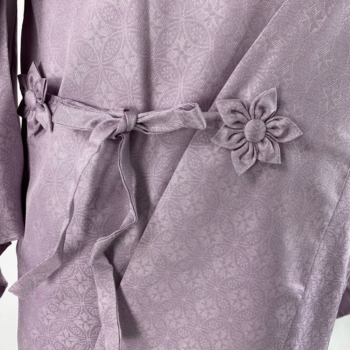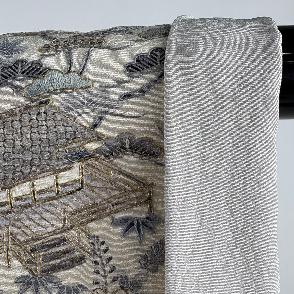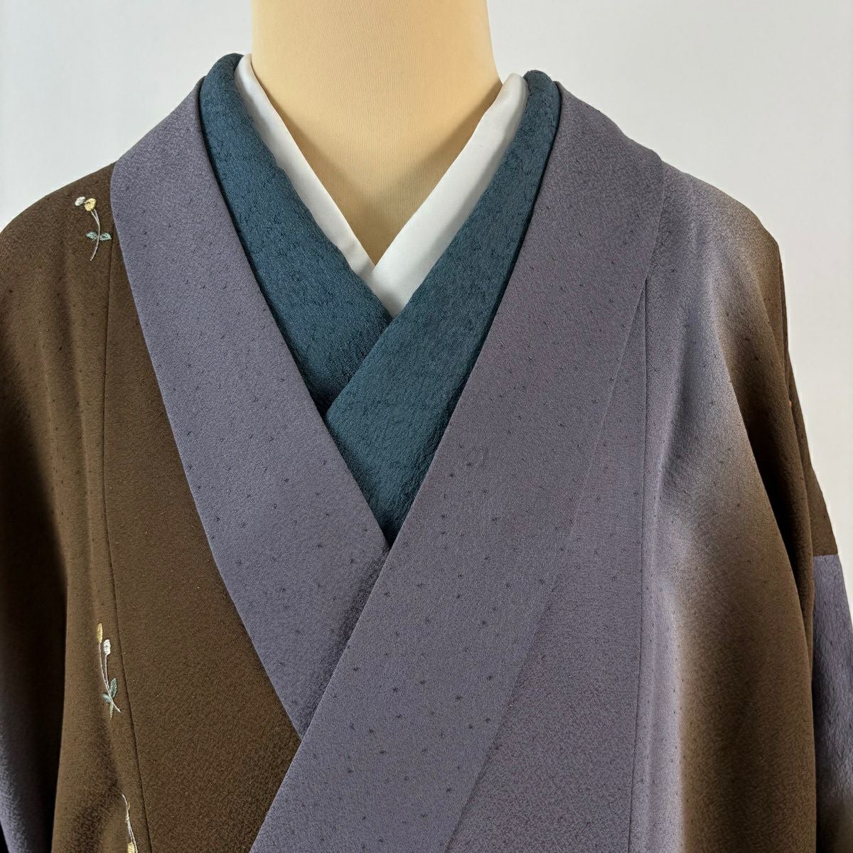 【美品】 道中着 身丈106cm 裄丈65cm M 和装コート 着物衿 葉と実 刺繍 金糸 灰紫 正絹 逸品