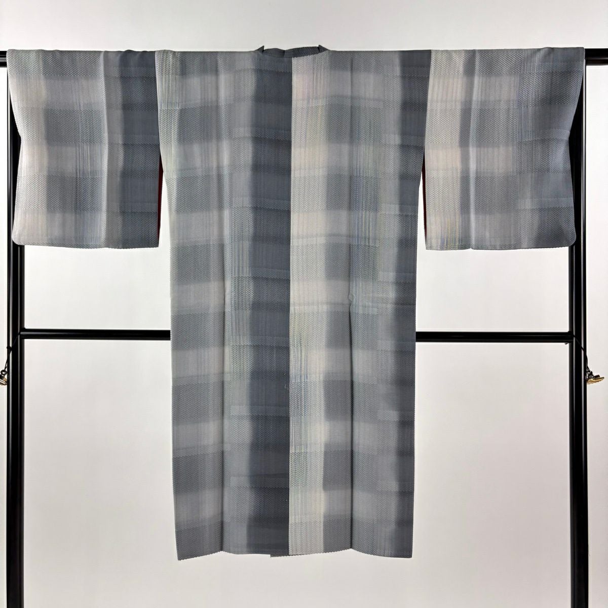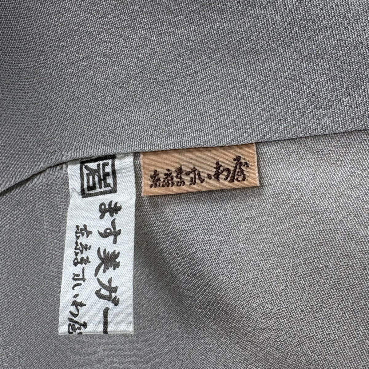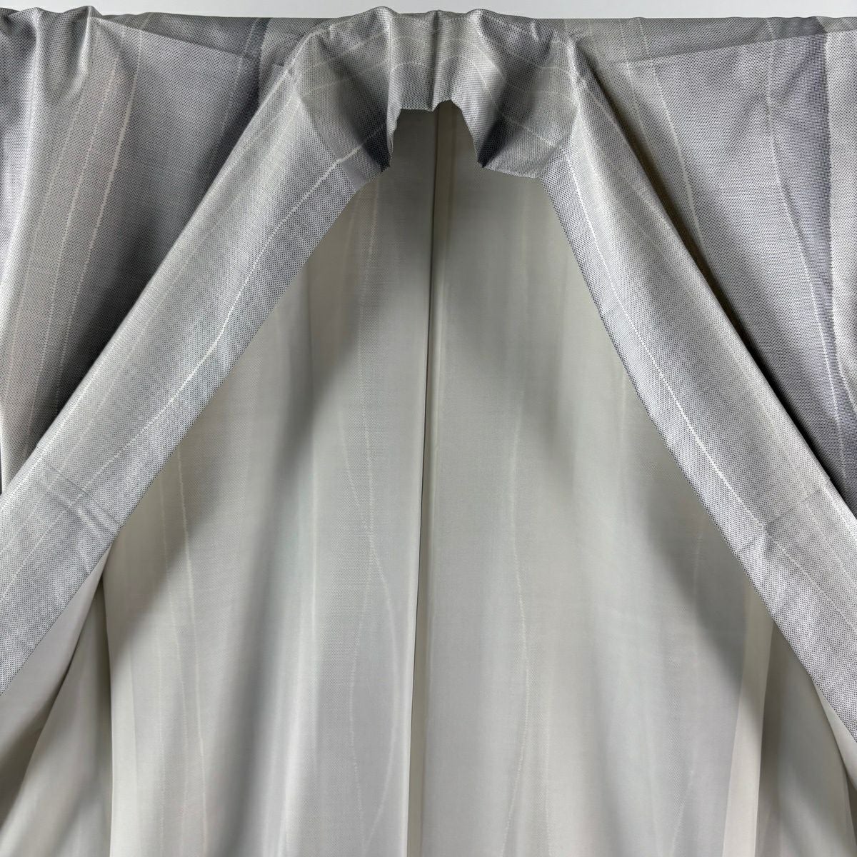 道行 身丈117cm 裄丈67cm M 岩浅公展 和装コート 角衿 落款あり 縞模様 ぼかし 灰色 正絹 逸品