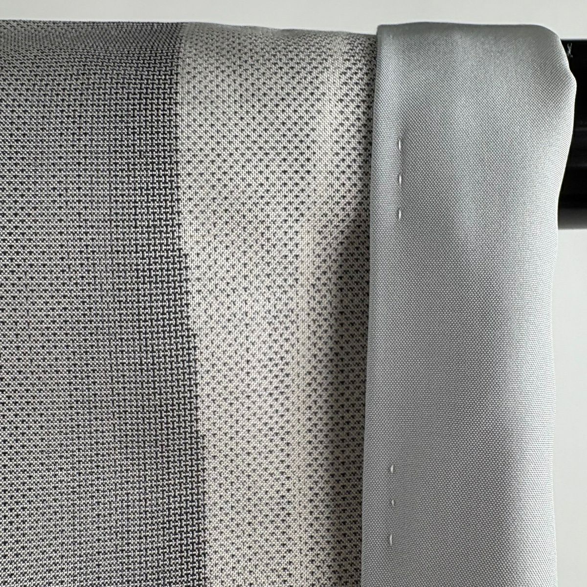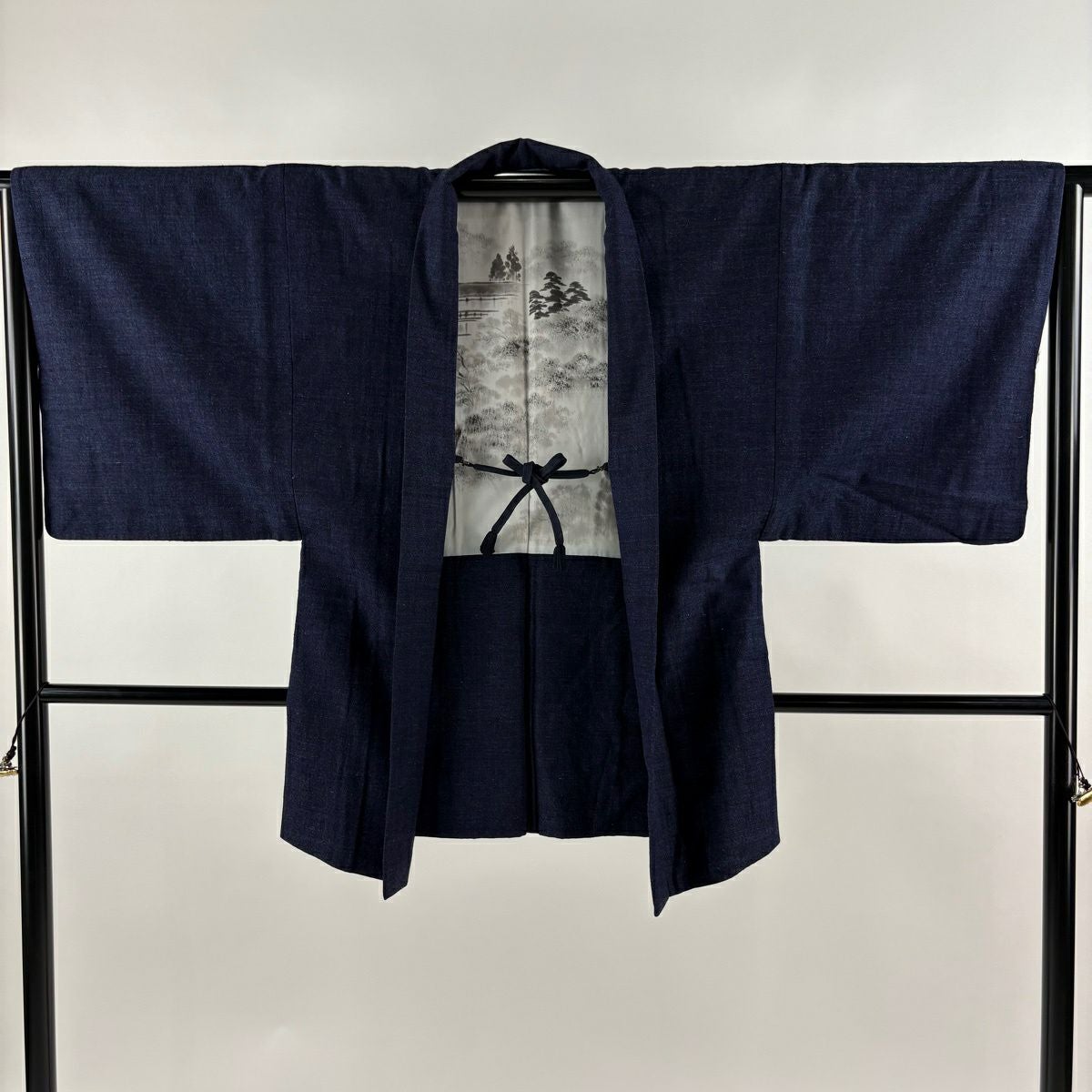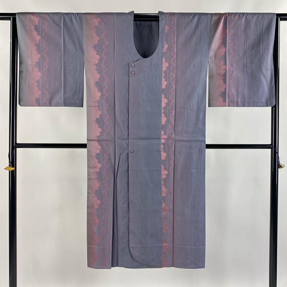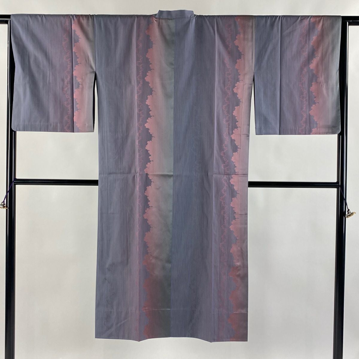 道行 身丈117cm 裄丈67cm M 岩浅公展 和装コート 角衿 落款あり 縞模様 ぼかし 灰色 正絹 逸品