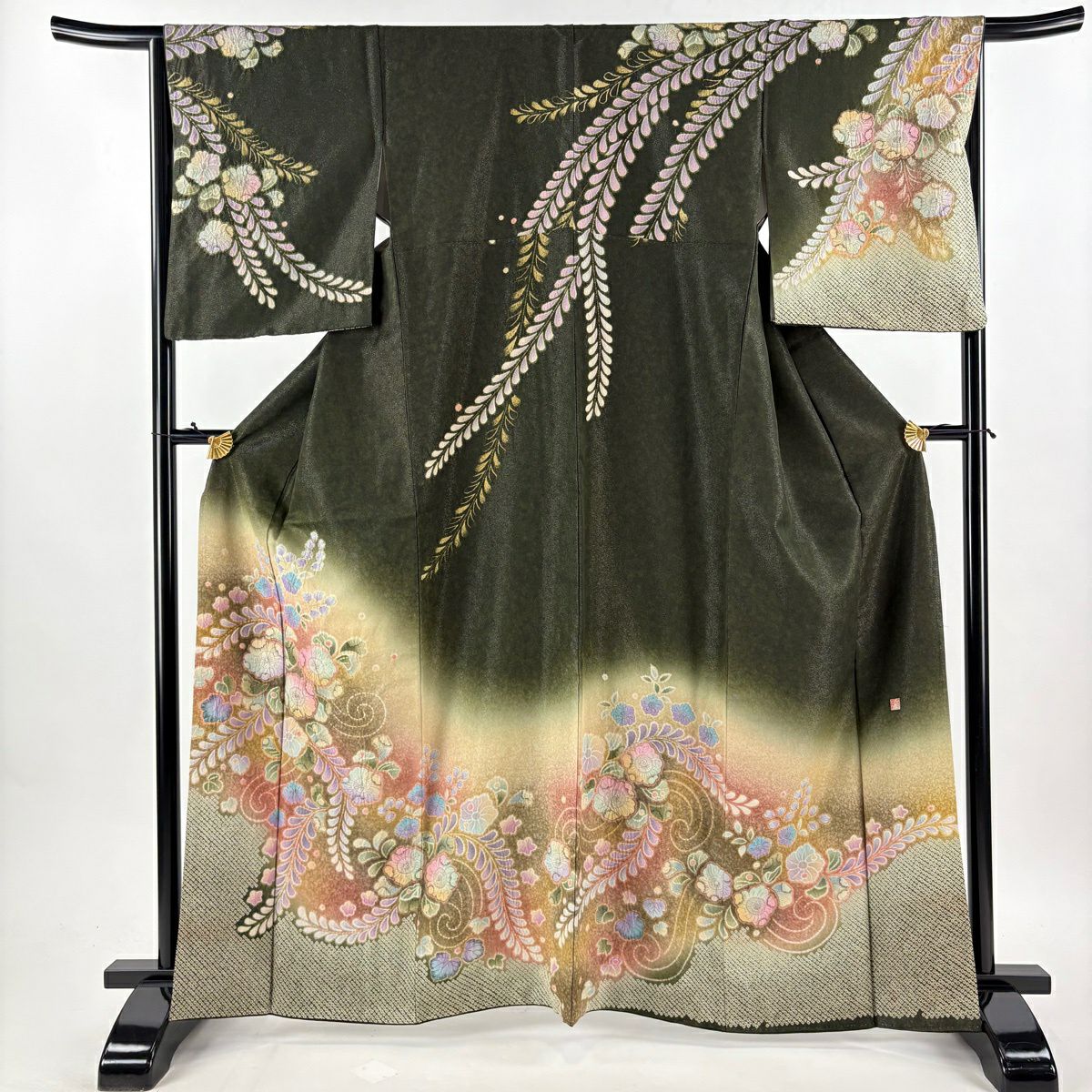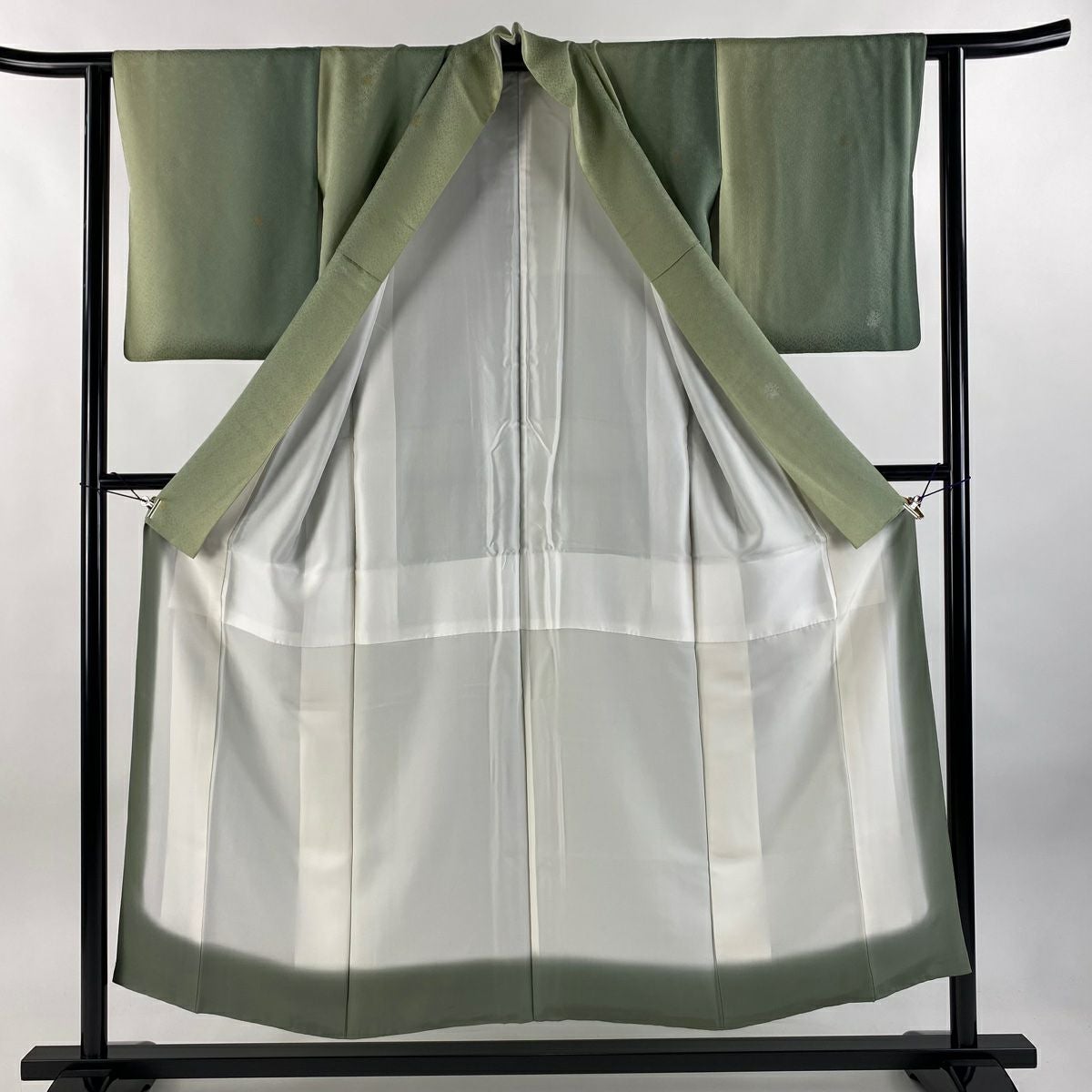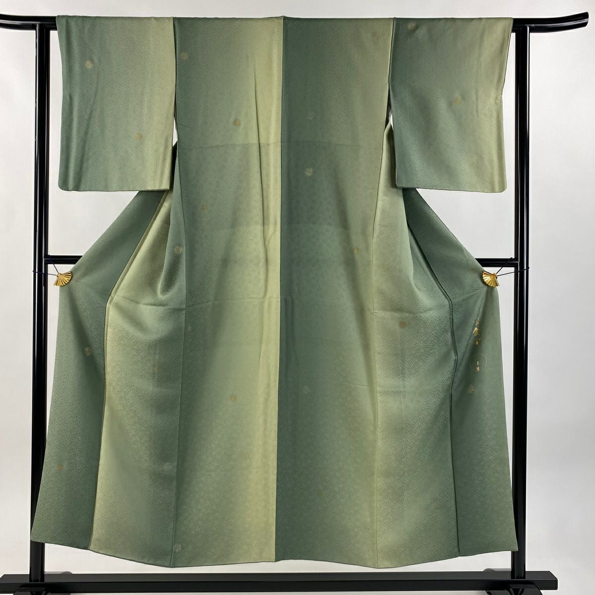 【美品】 訪問着 身丈165cm 裄丈65.5cm M 袷 落款あり 辻が花 銀通し ぼかし 深緑 正絹 逸品