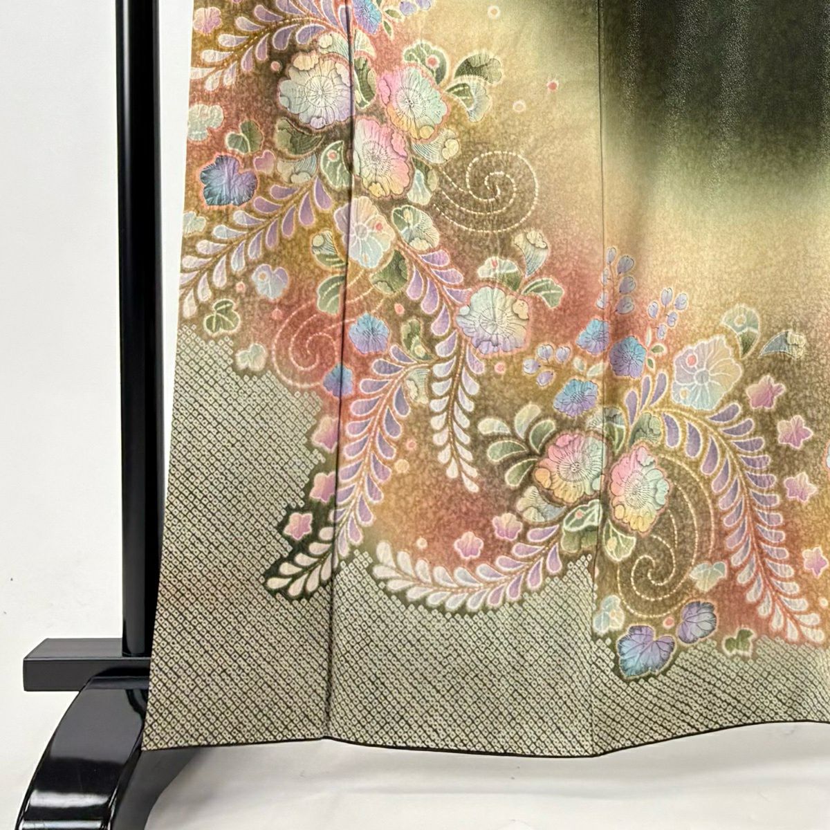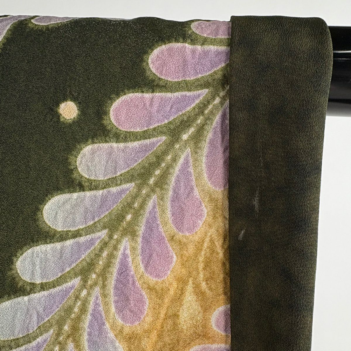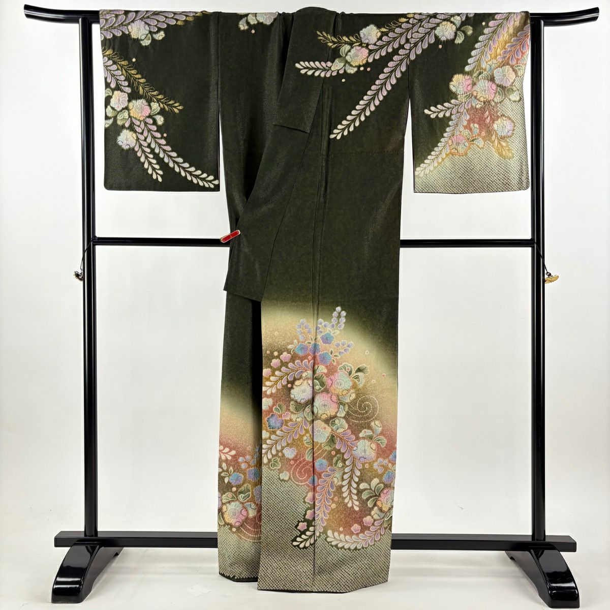 【美品】 訪問着 身丈165cm 裄丈65.5cm M 袷 落款あり 辻が花 銀通し ぼかし 深緑 正絹 逸品