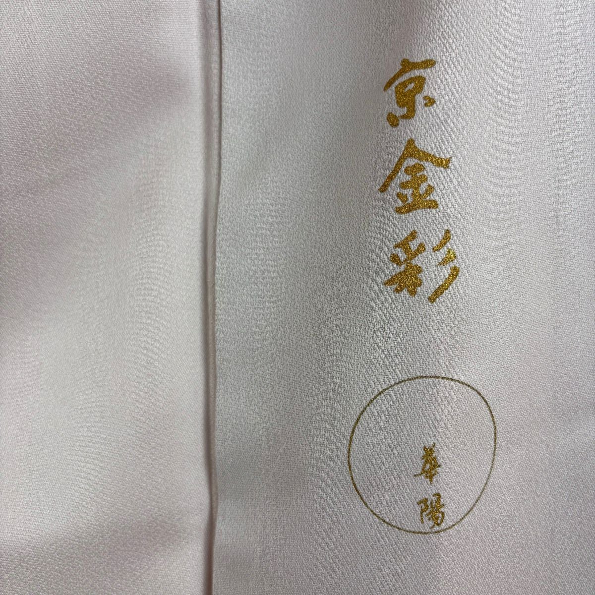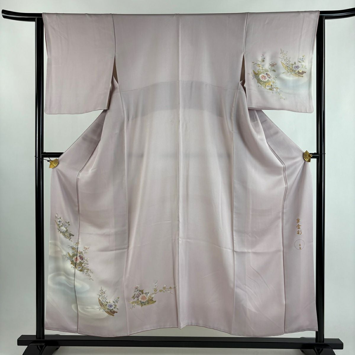 付下げ 身丈154cm 裄丈63cm S 袷 鈴乃屋 落款あり 舟 草花 ラメ 金彩 薄ピンク 正絹 逸品