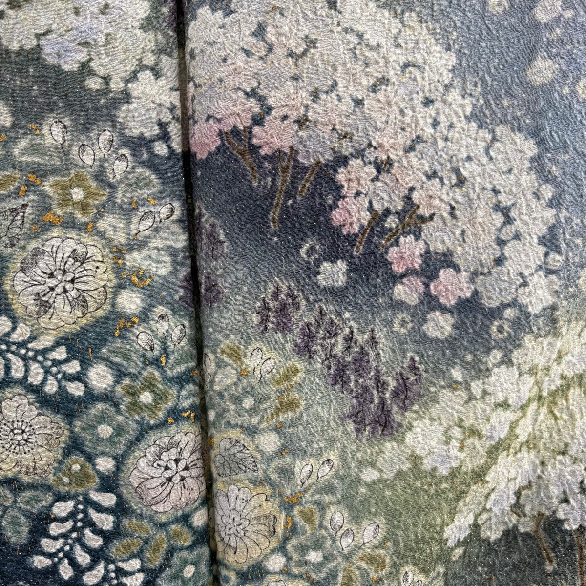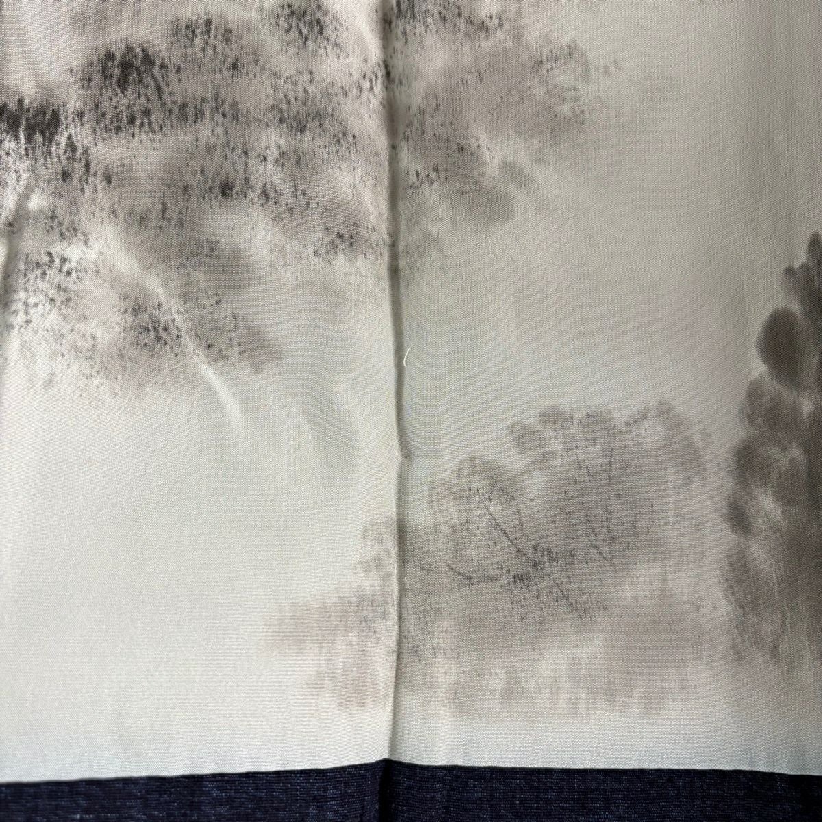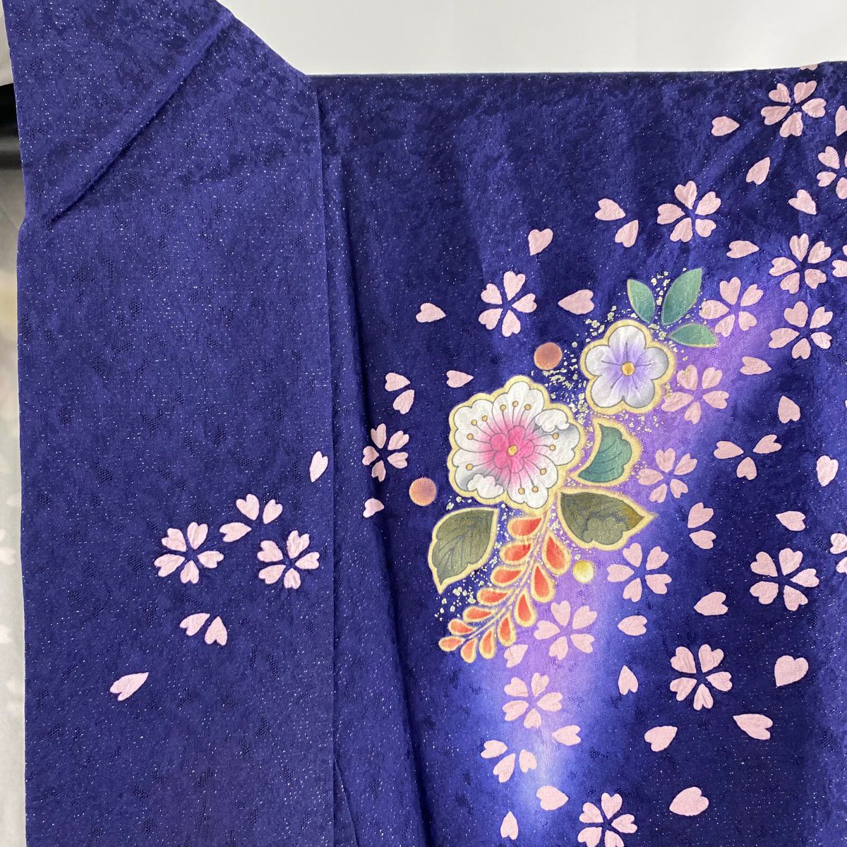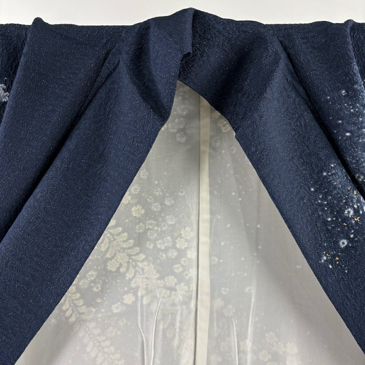 訪問着 身丈160cm 裄丈69cm L 袷 吉乃一廉 落款あり 辻が花 桜 銀通し 金彩 紺色 正絹 逸品