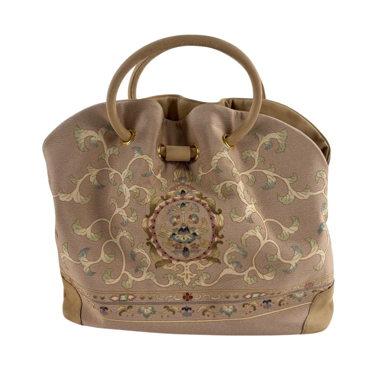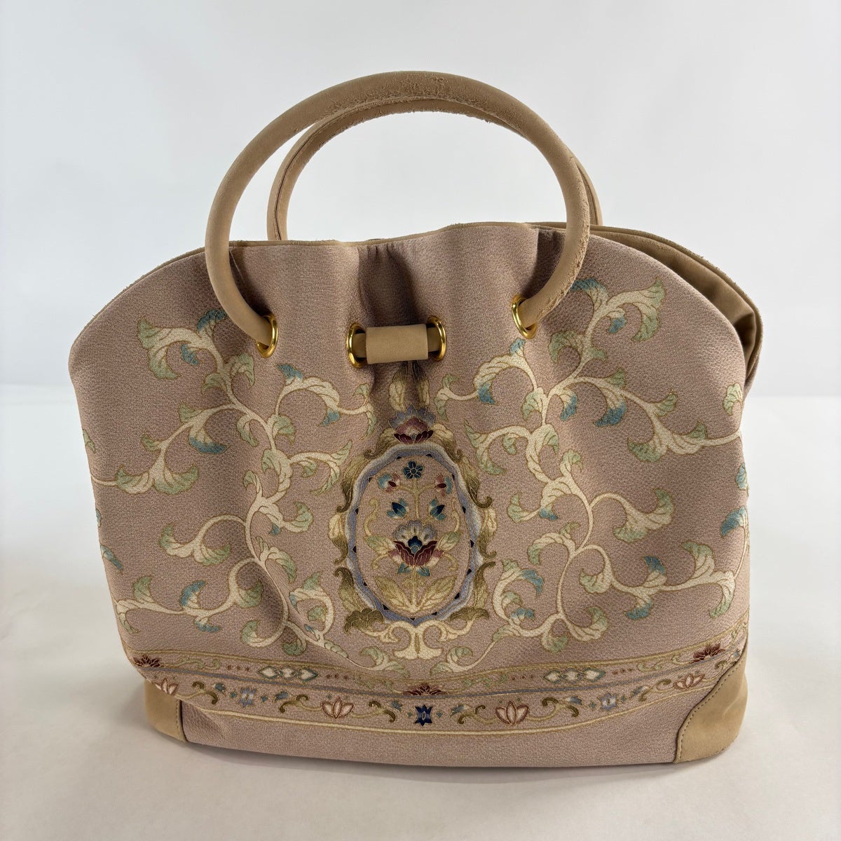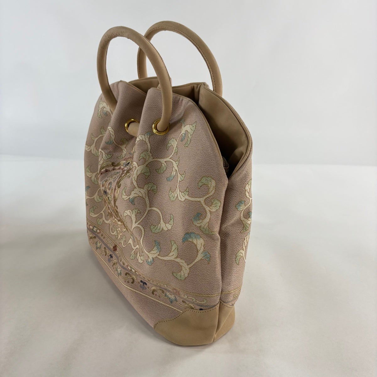 【美品】 袋帯 逸品 羽田登喜男監修 落款あり 鴛鴦 松竹梅 輪奈織 金銀糸 ベージュ お太鼓柄 正絹