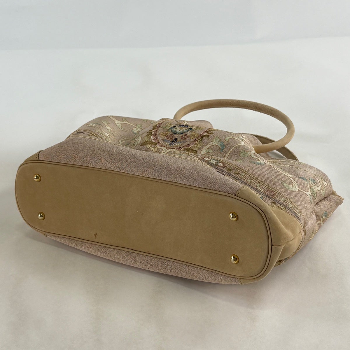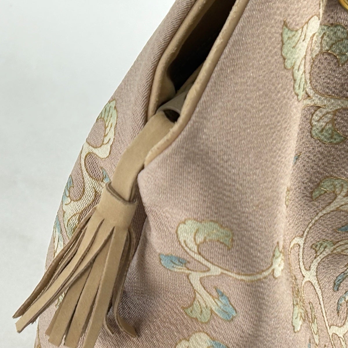 【美品】 名古屋帯 逸品 証紙あり 南風原花織 手織工房おおしろ 幾何学 段縞 ピンクベージュ 正絹