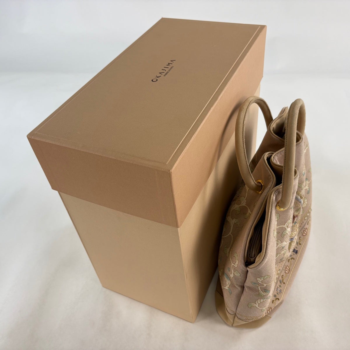 【美品】 袋帯 逸品 百貫華峰 落款あり 関西仕立て 共箱付き 孔雀 草花 刺繍 箔 クリーム 六通 正絹