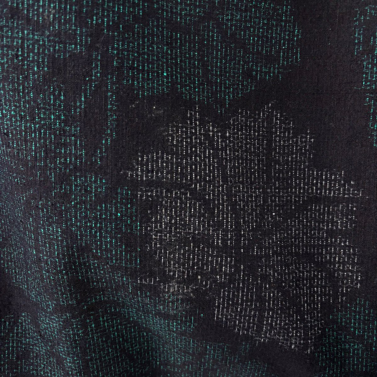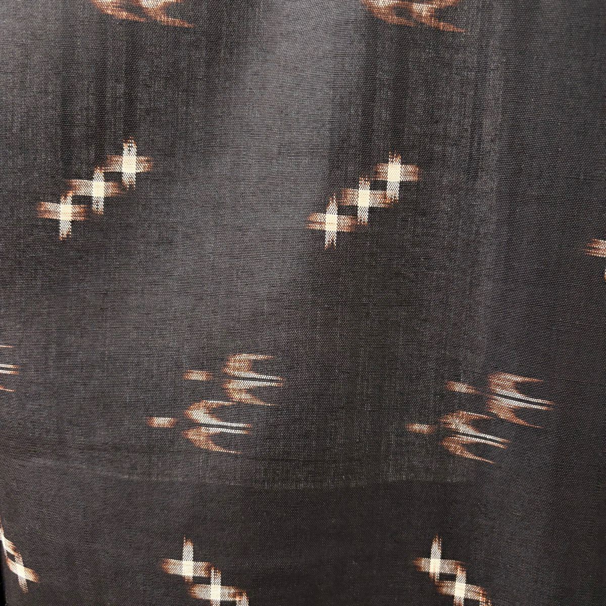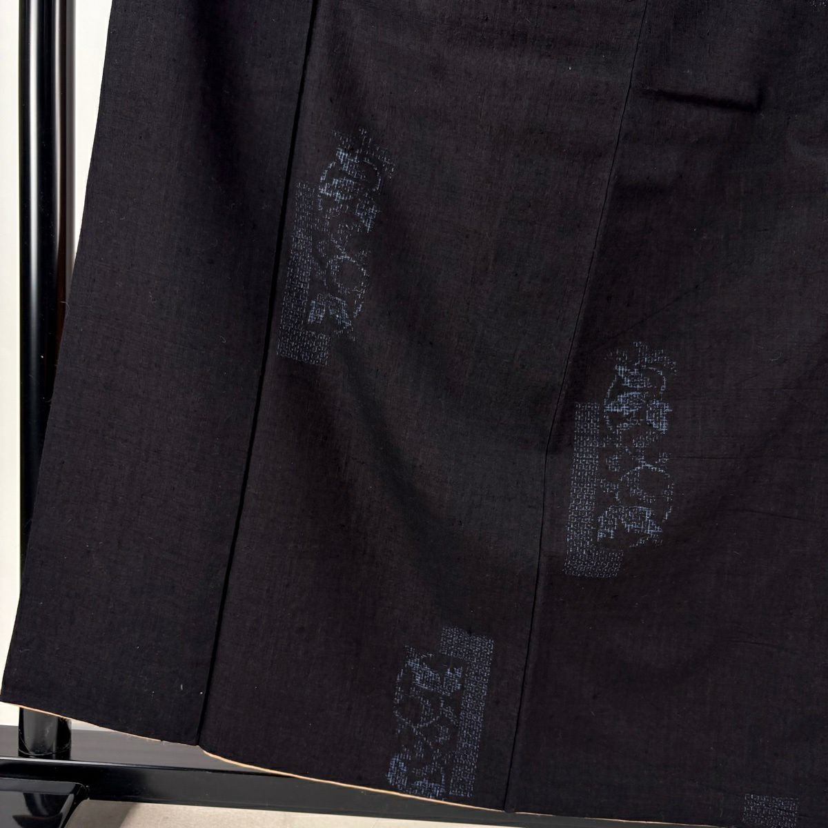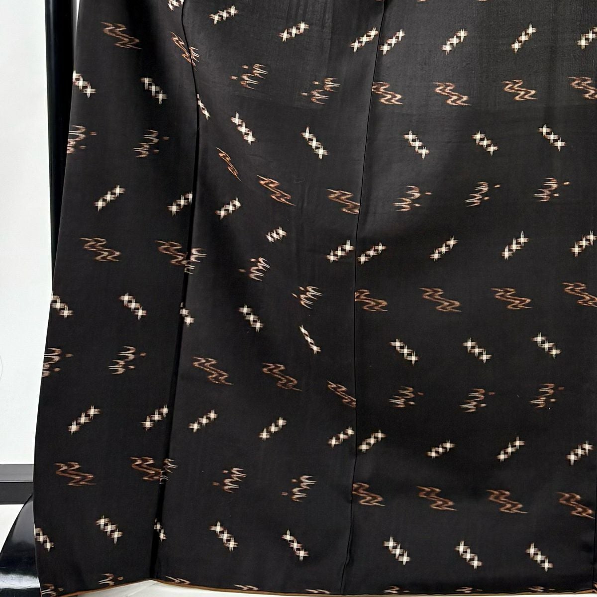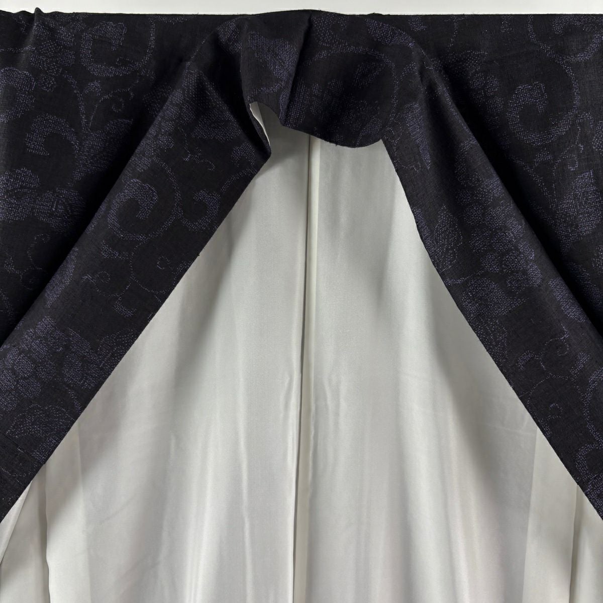 結城紬 身丈162.5cm 裄丈67cm M 袷 本場結城紬 バチ衿 証紙あり 草花 亀甲絣 黒灰 正絹 逸品