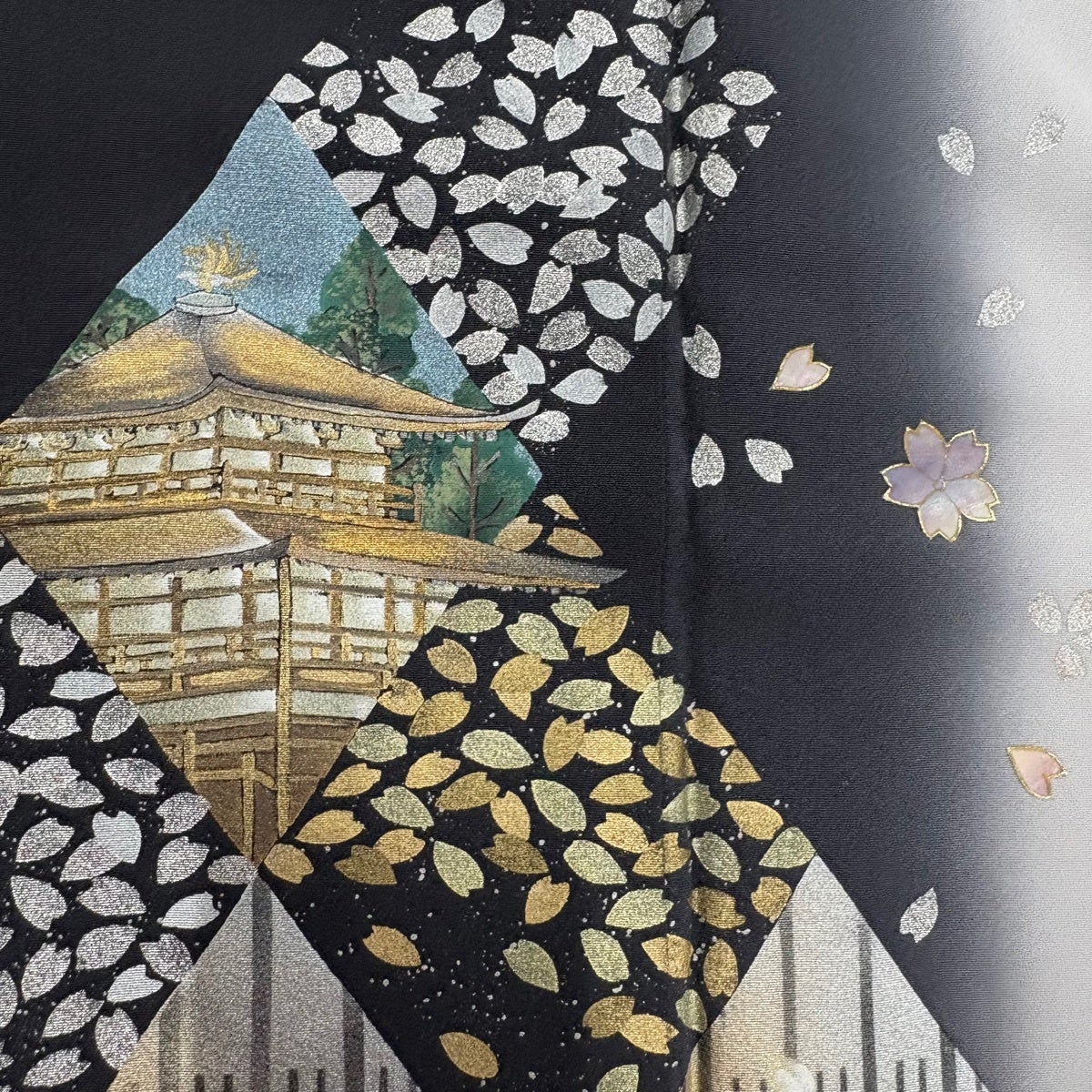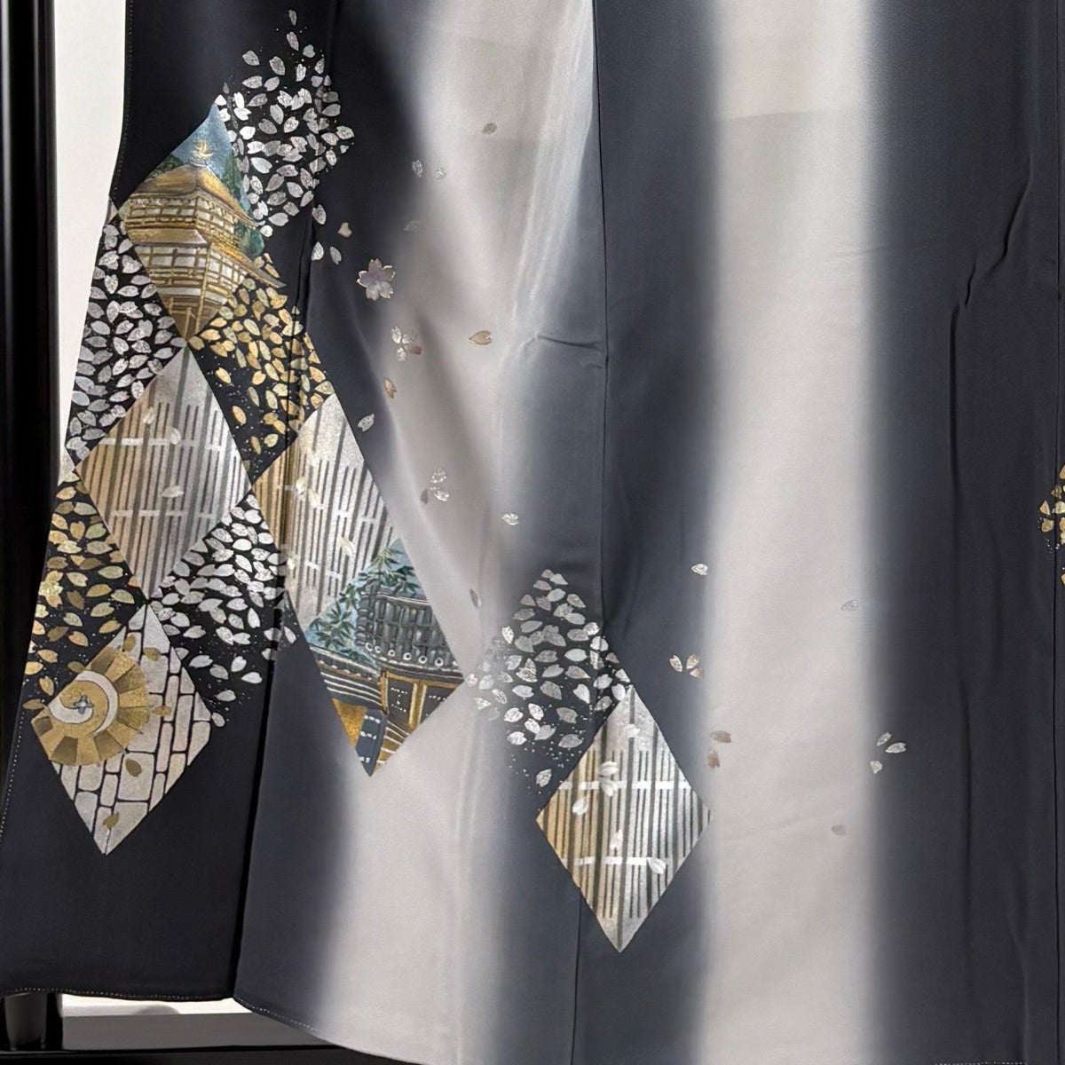 黒留袖 身丈163cm 裄丈66cm M 袷 百貫華峰 落款あり 鳥 松竹梅 染め分け ぼかし 黒 正絹 逸品