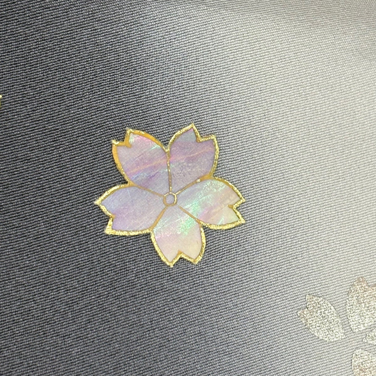 【美品】 大島紬 身丈162cm 裄丈64.5cm M 袷 都喜ヱ門 証紙あり 色紙 華文 灰紫 正絹 逸品