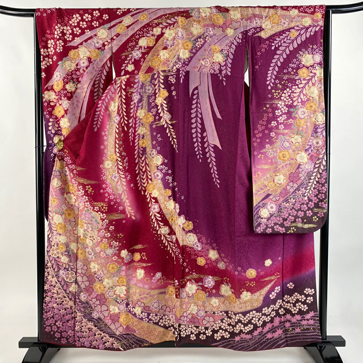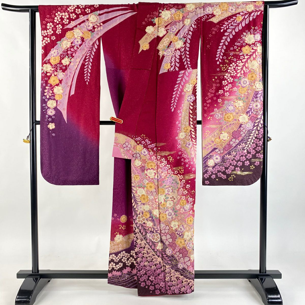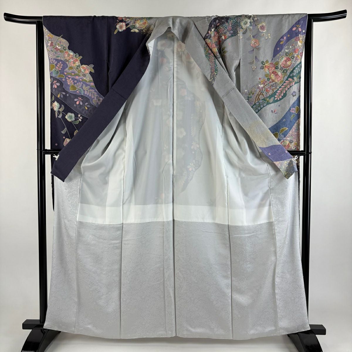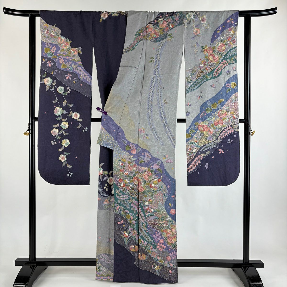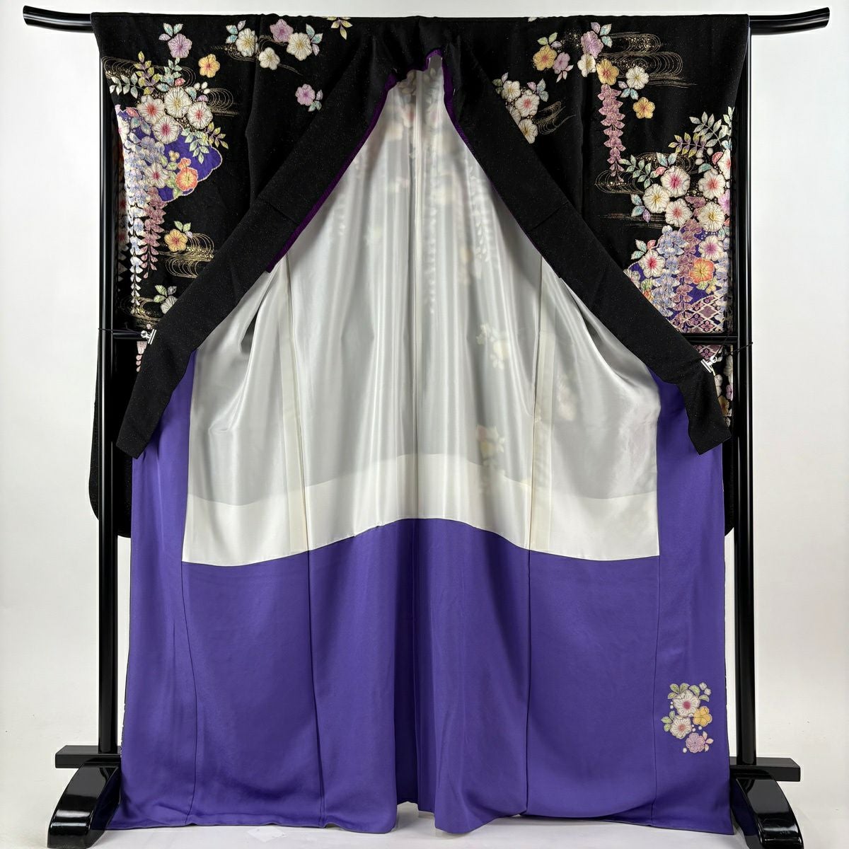 振袖 身丈171.5cm 裄丈68cm L 袷 徳永憲峯 落款あり 辻が花 流水 金通し 金彩 黒 正絹 逸品