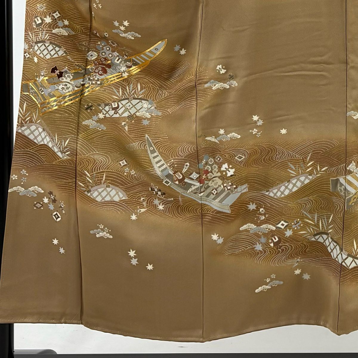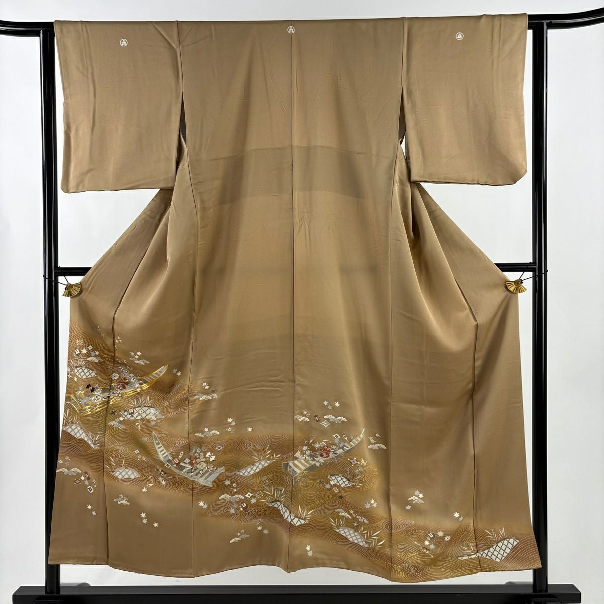 色留袖 身丈153.5cm 裄丈62.5cm S 袷 千總 宝尽くし 舟 金糸 金銀彩 薄茶色 正絹 逸品 五つ紋