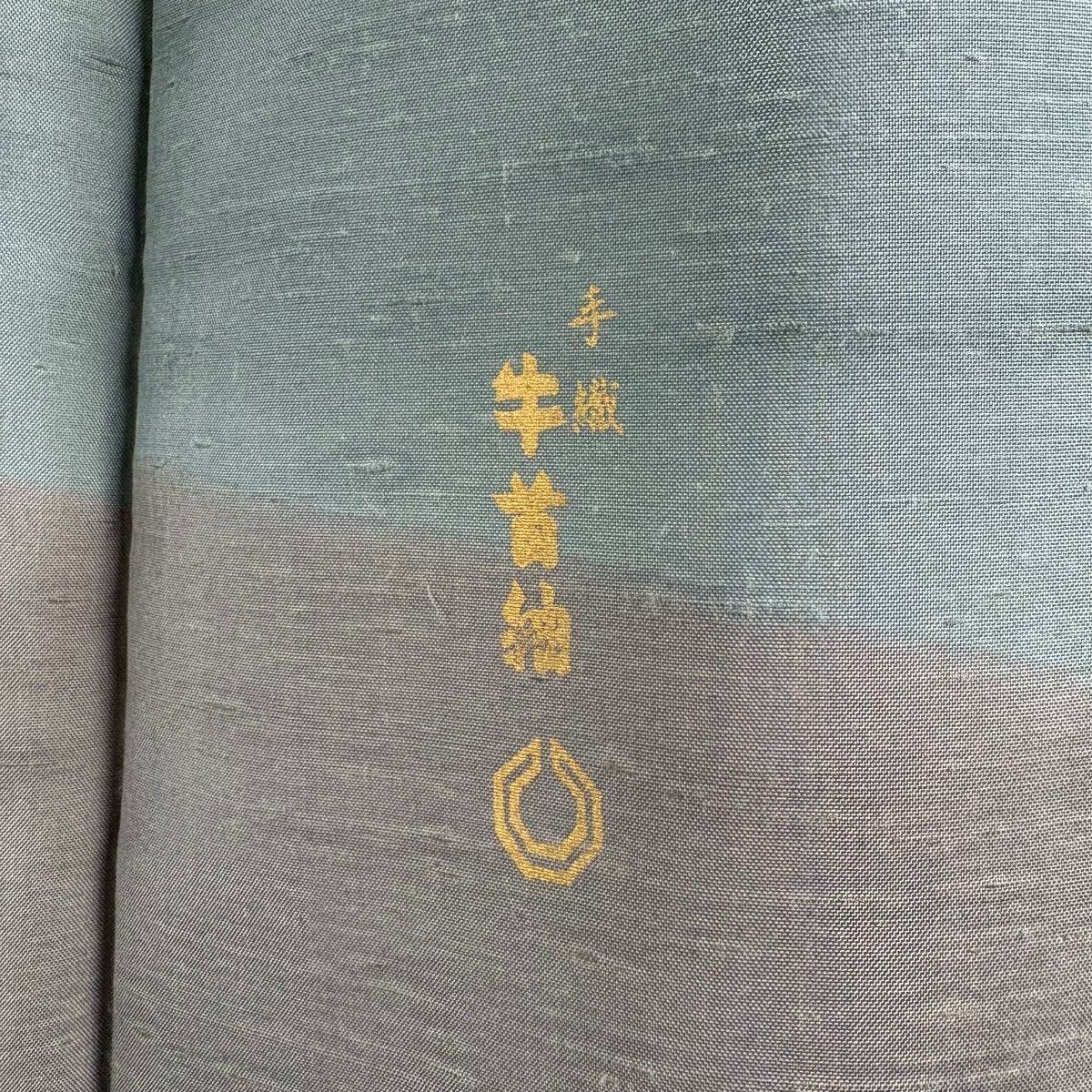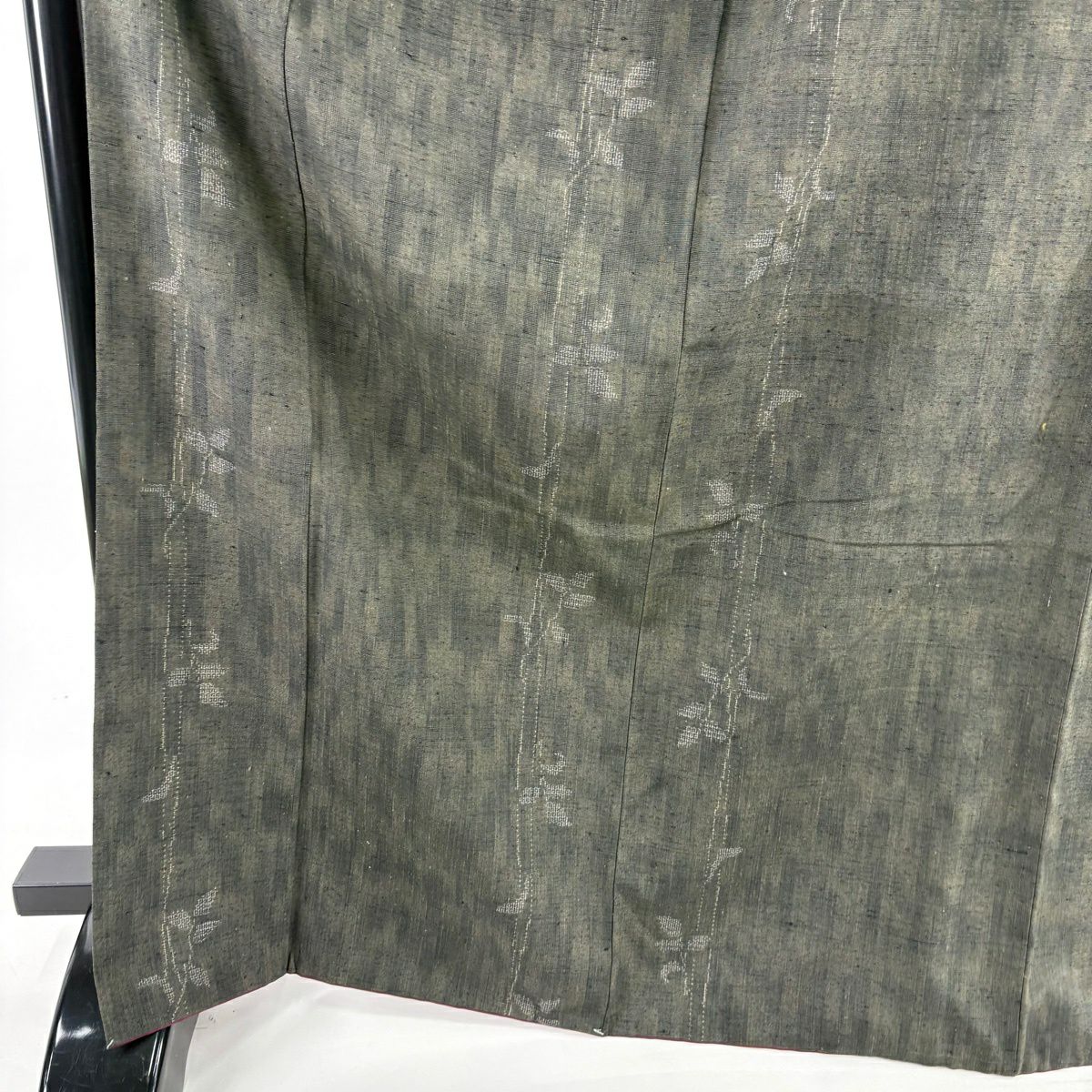 結城紬 身丈171.5cm 裄丈70cm L 袷 はたおり娘 やまと 証紙あり 葉 亀甲絣 灰緑 正絹 逸品