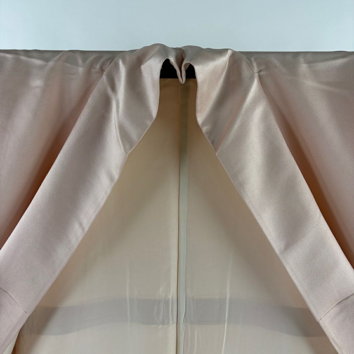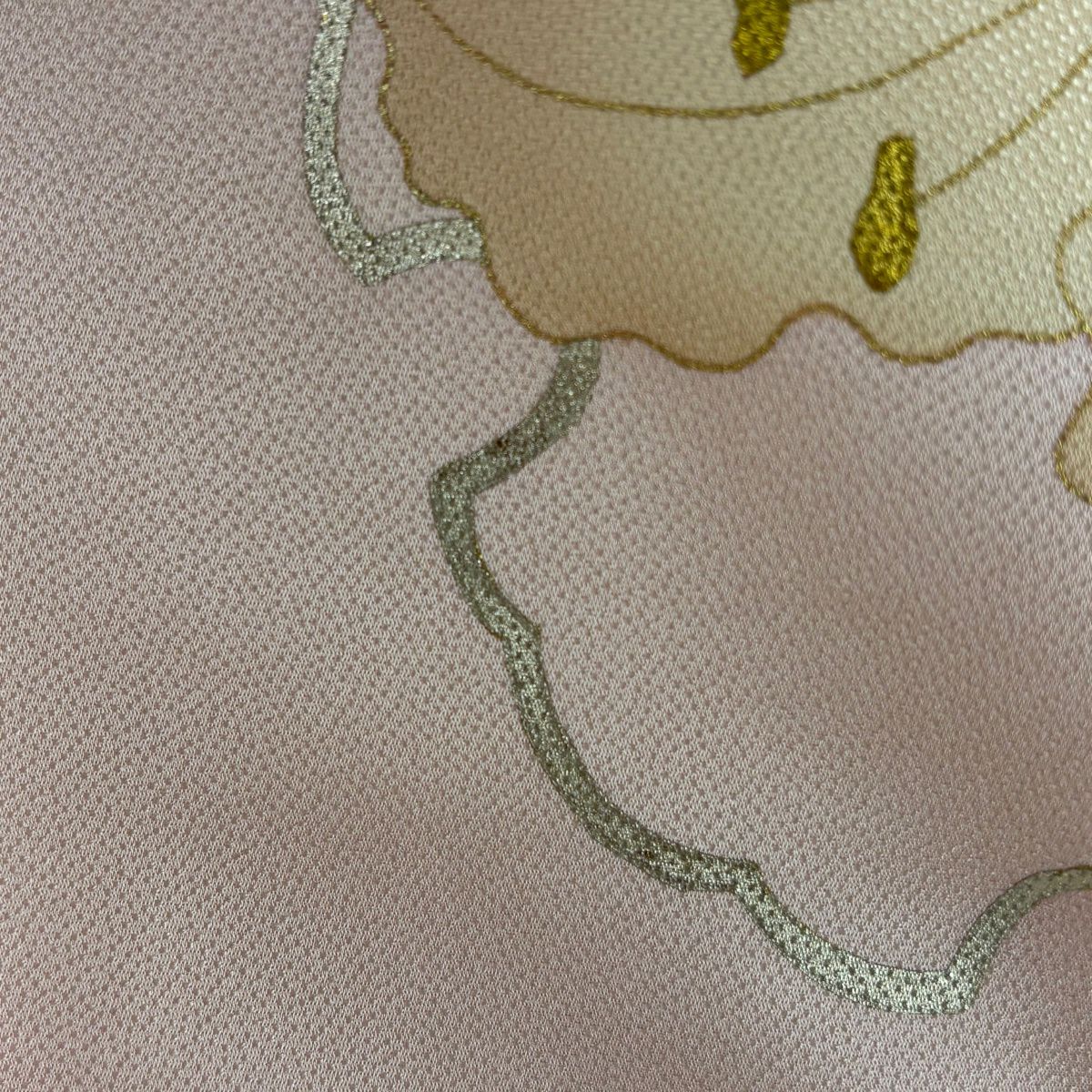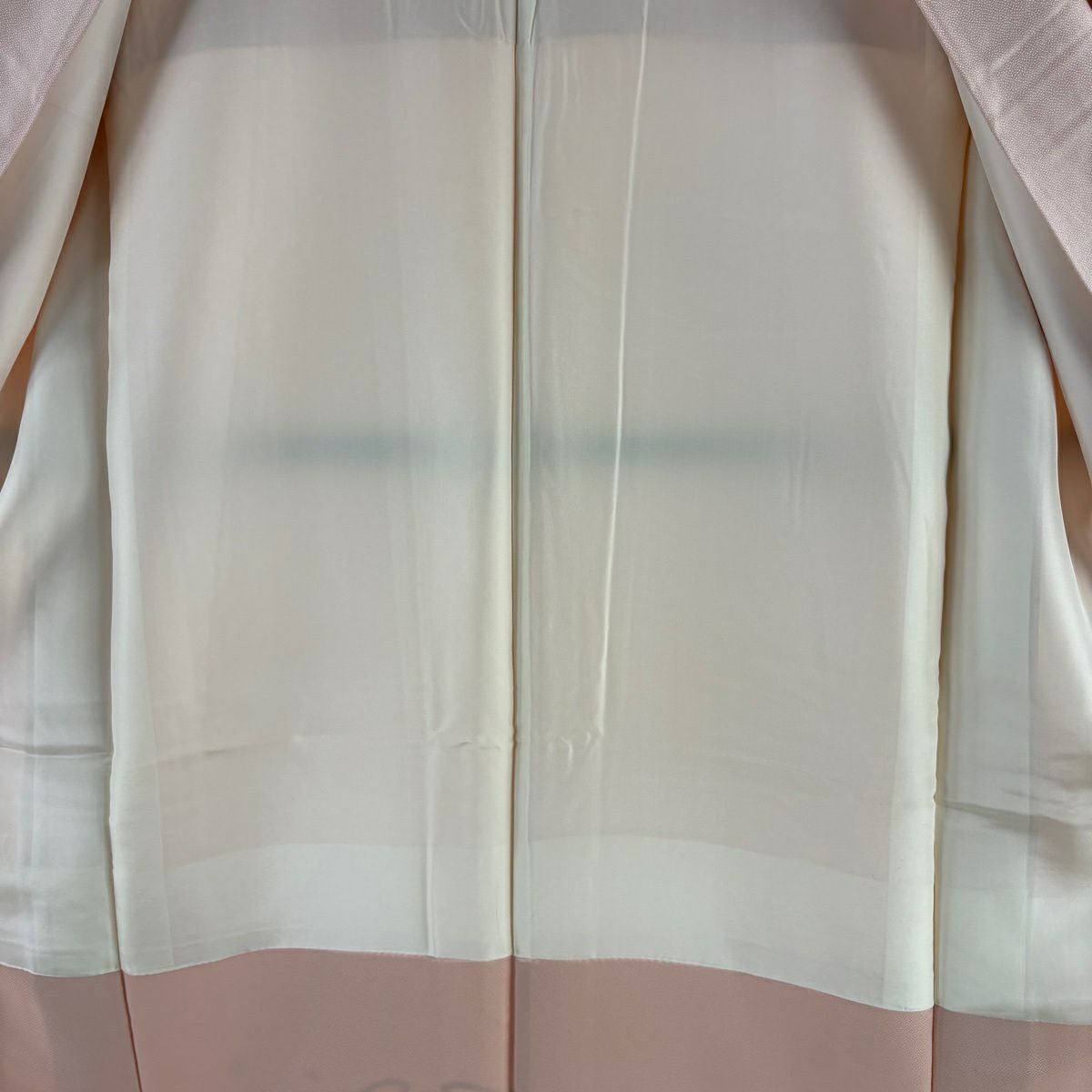 付下げ 身丈169cm 裄丈67cm M 袷 渡辺雪三郎 落款あり 百合 雪輪 金彩 薄ピンク 正絹 逸品