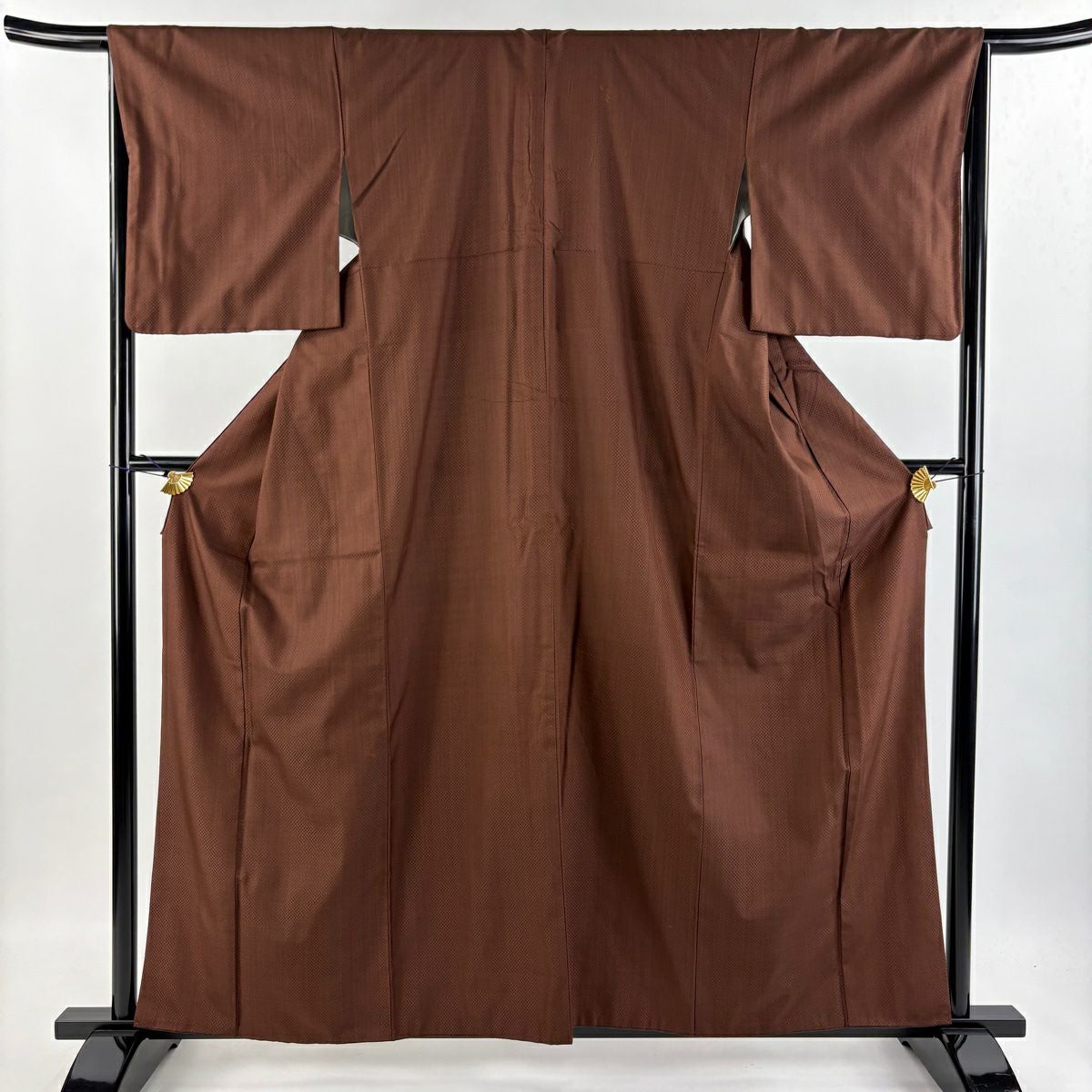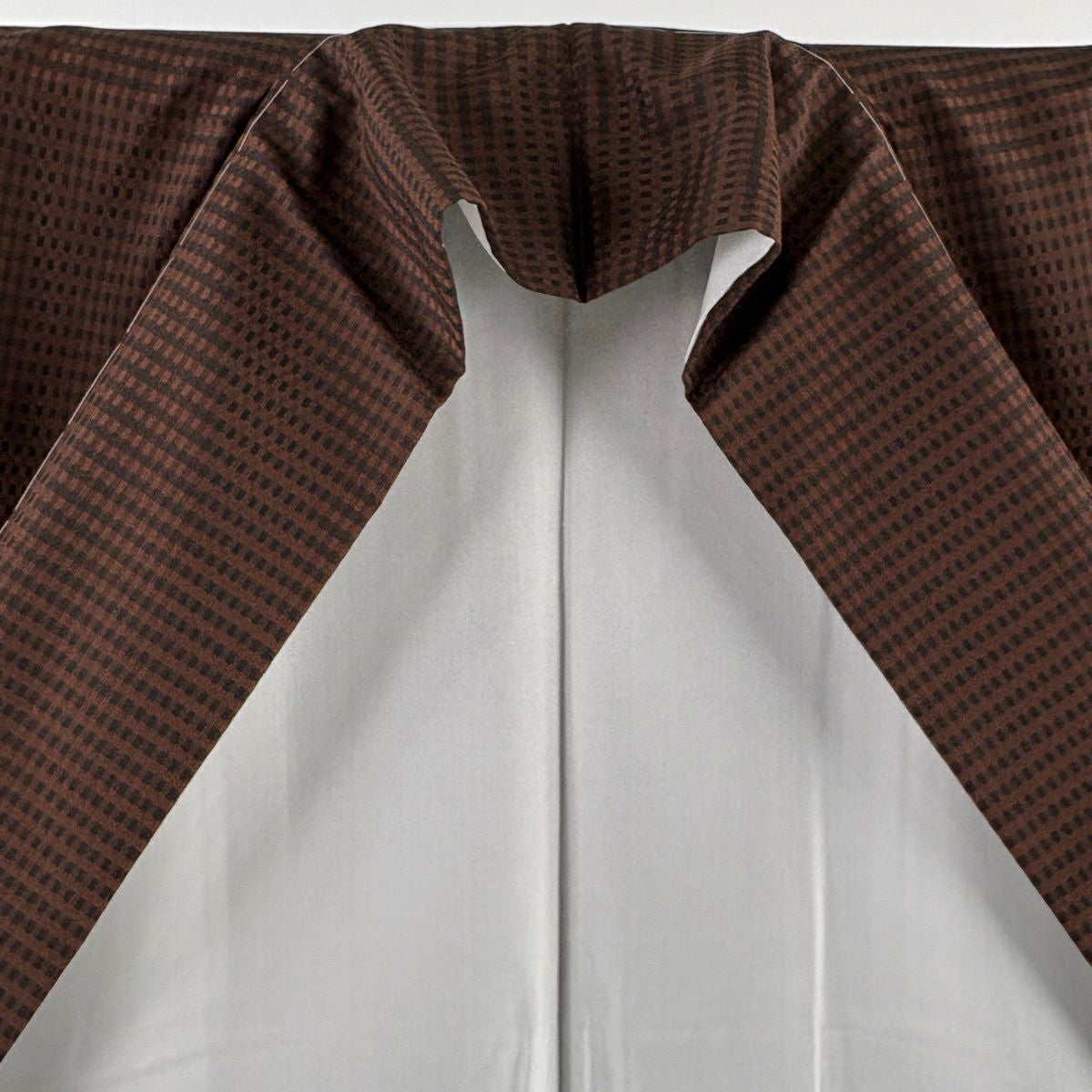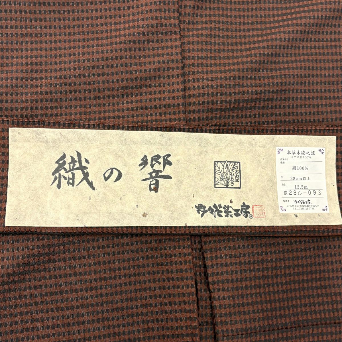 紬 身丈168.5cm 裄丈66.5cm M 袷 野々花染工房 置賜紬 落款あり 証紙あり 格子 茶色 正絹 逸品