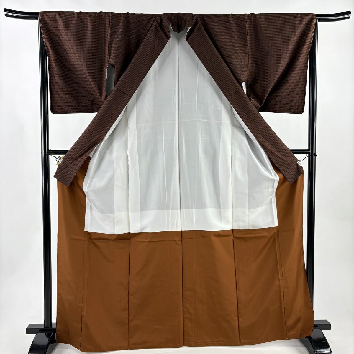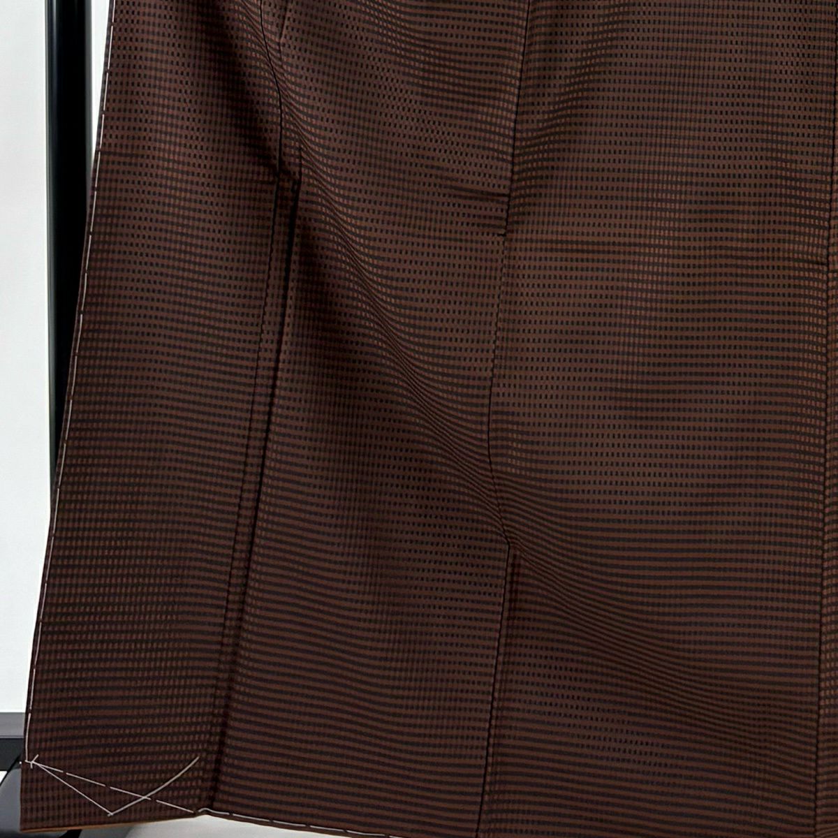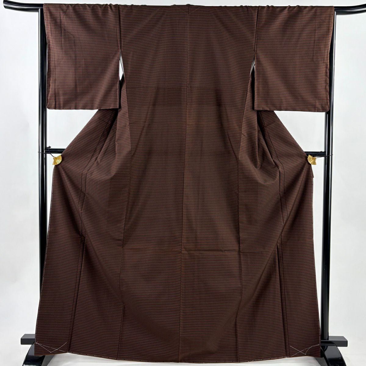 紬 身丈168.5cm 裄丈66.5cm M 袷 野々花染工房 置賜紬 落款あり 証紙あり 格子 茶色 正絹 逸品