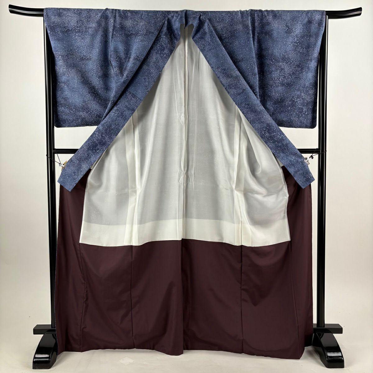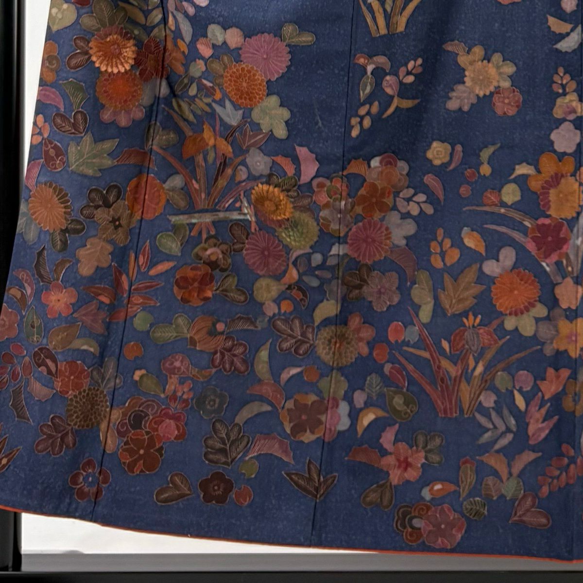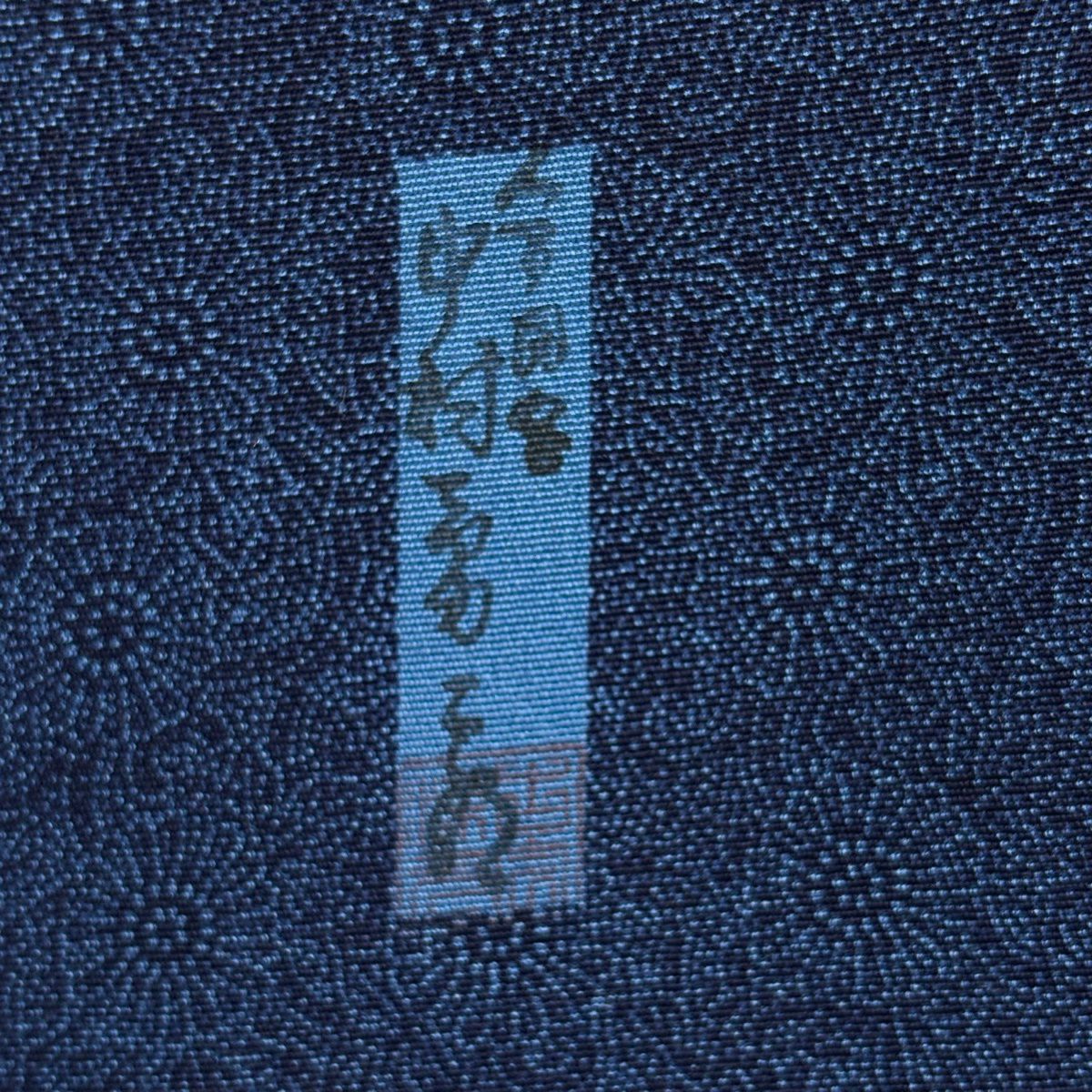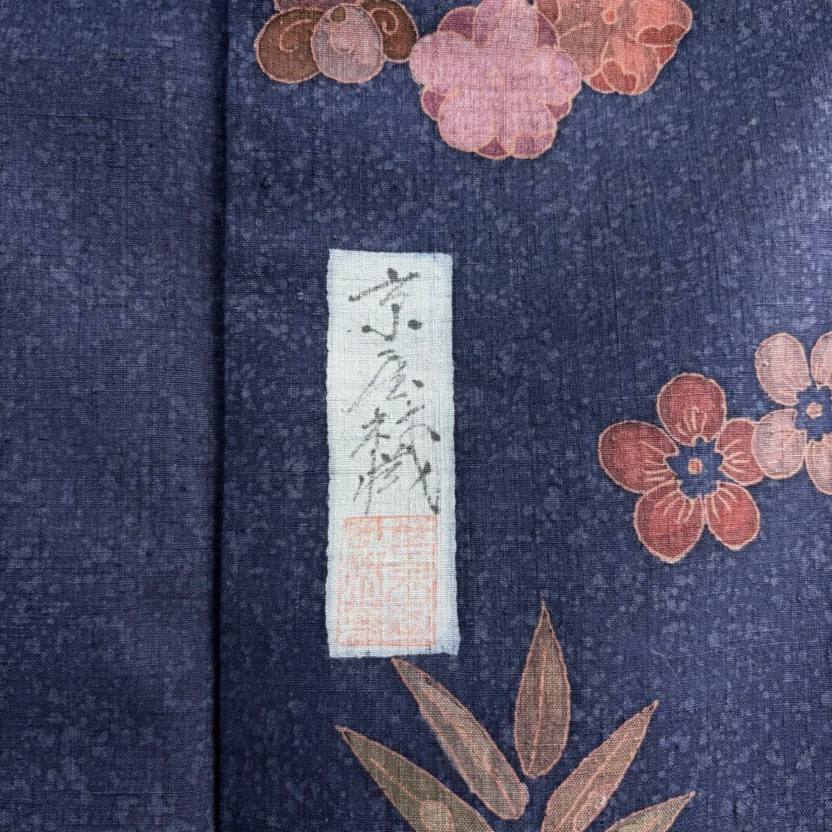 訪問着 身丈155.5cm 裄丈63.5cm S 袷 京屋林蔵 紬地 落款あり 草花 菊 刺繍 紺色 正絹 逸品