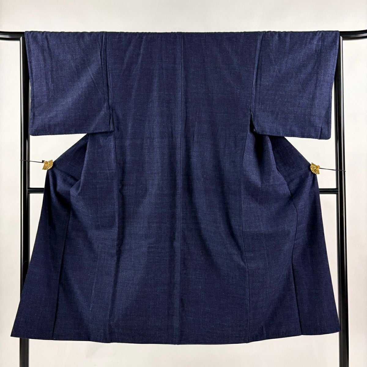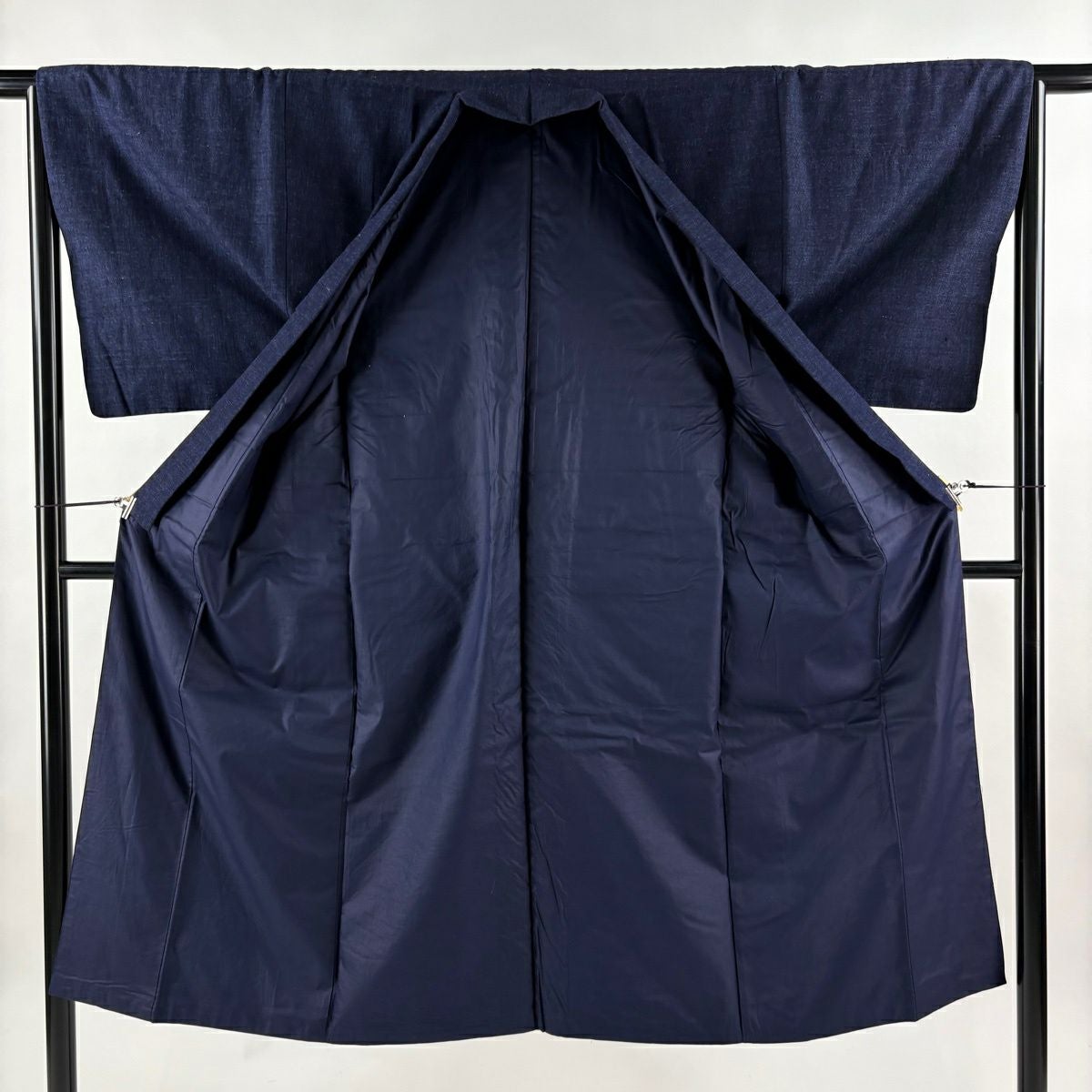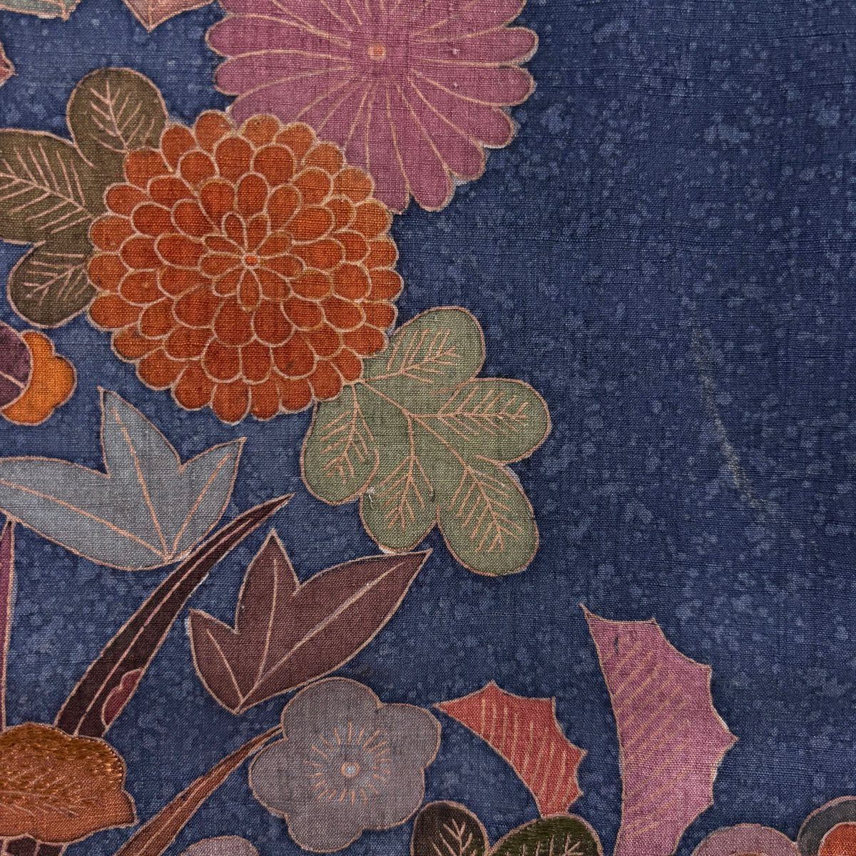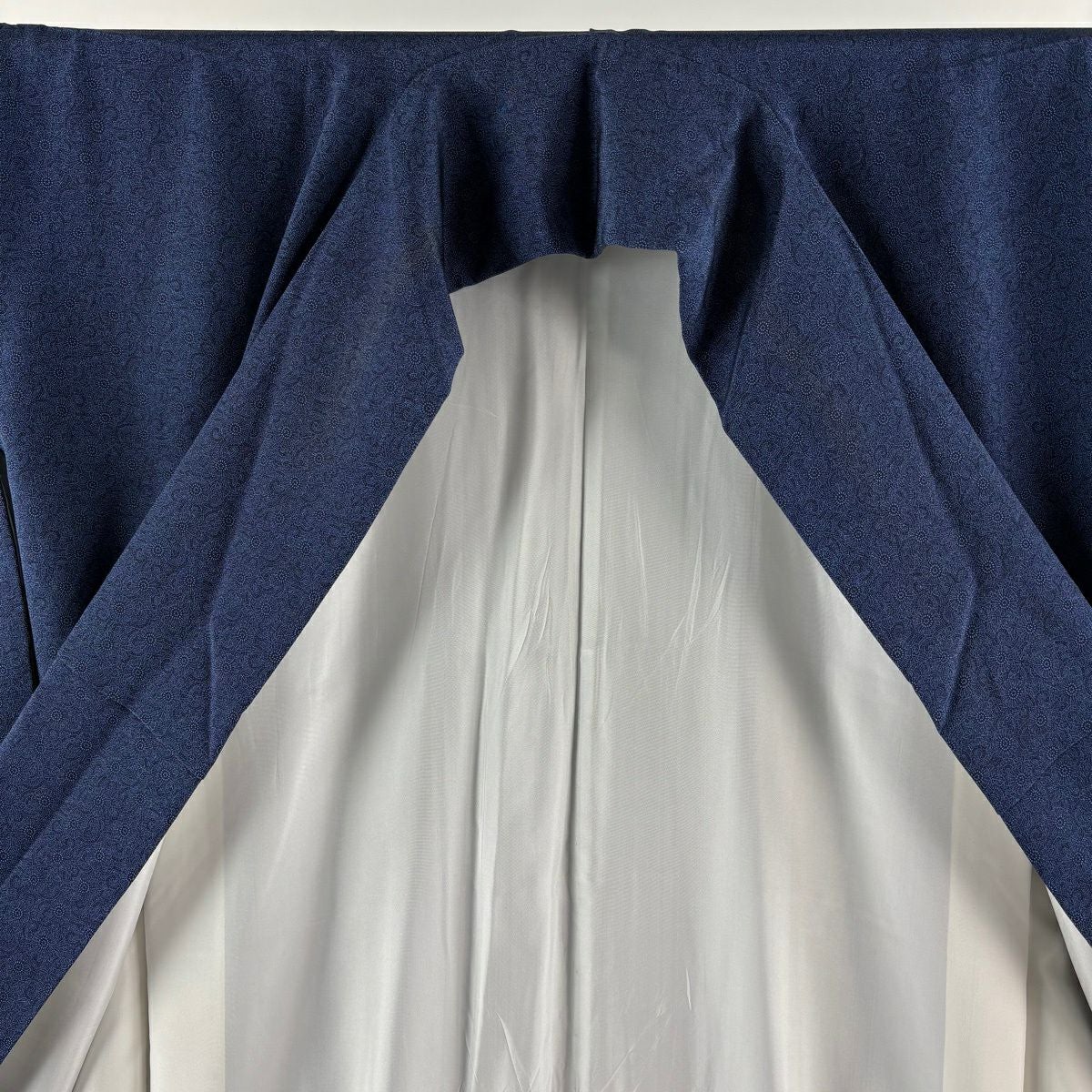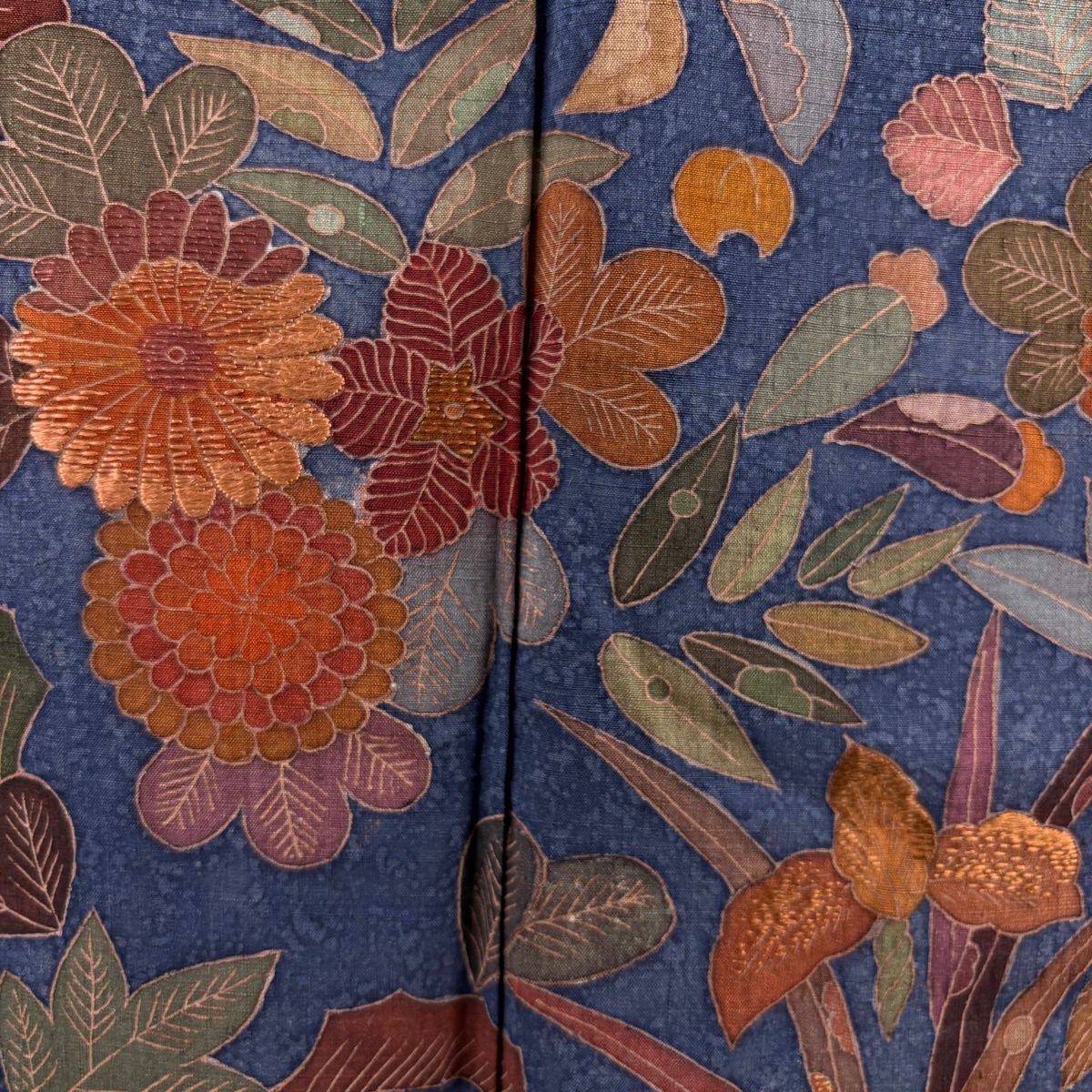 訪問着 身丈155.5cm 裄丈63.5cm S 袷 京屋林蔵 紬地 落款あり 草花 菊 刺繍 紺色 正絹 逸品